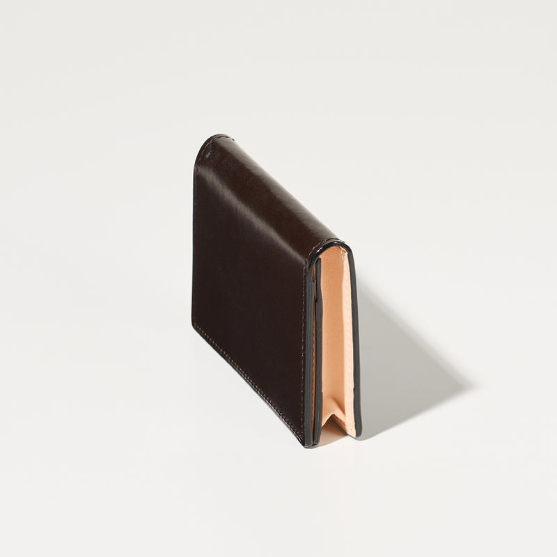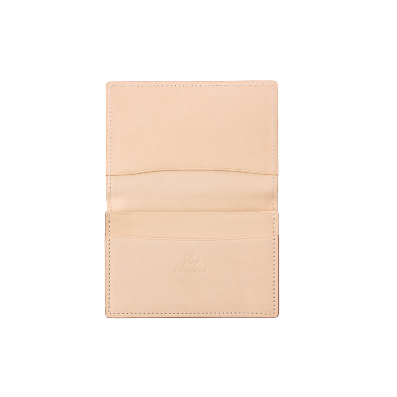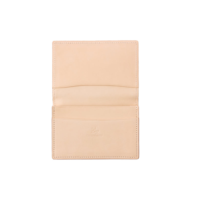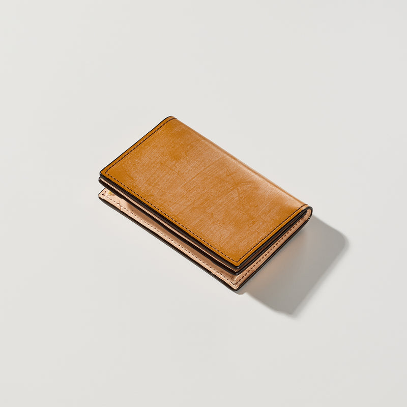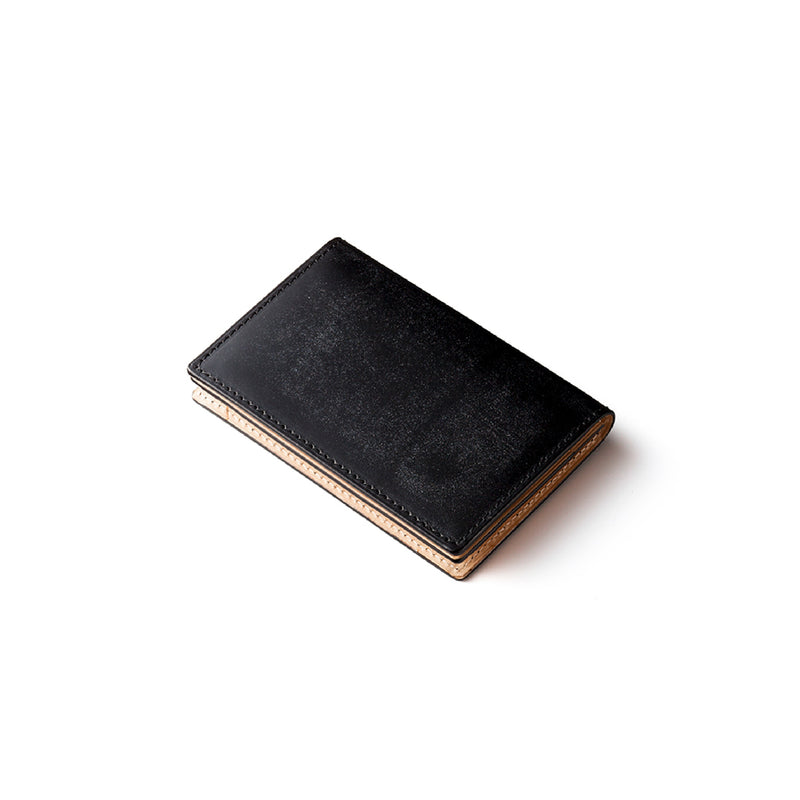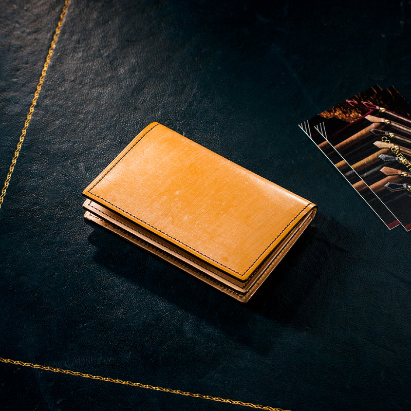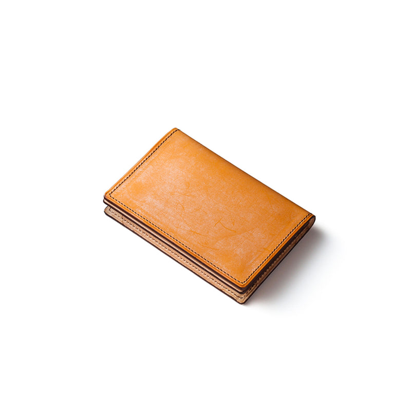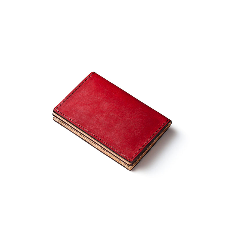 ココマイスターで一番売れ続けている「ブライドル&ヌメ革」シリーズ。英国馬具革ブライドルレザーと欧州ヌメ革のコンビネーションは、高級感溢れるブライドルの良さと、素朴で温かみあるヌメ革の魅力を同時に味わえます。シンプルでクラシカルな名刺入れです。通しマチと呼ばれる製法により製作、革を重ねた様なデザインがクラシカルで人気です。| 外寸 | 縦7.5cm×横11cm×厚さ1.5cm |