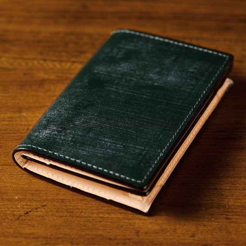 表面に浮かぶロウが、英国馬具革ならではの重厚な表情を描き出します。