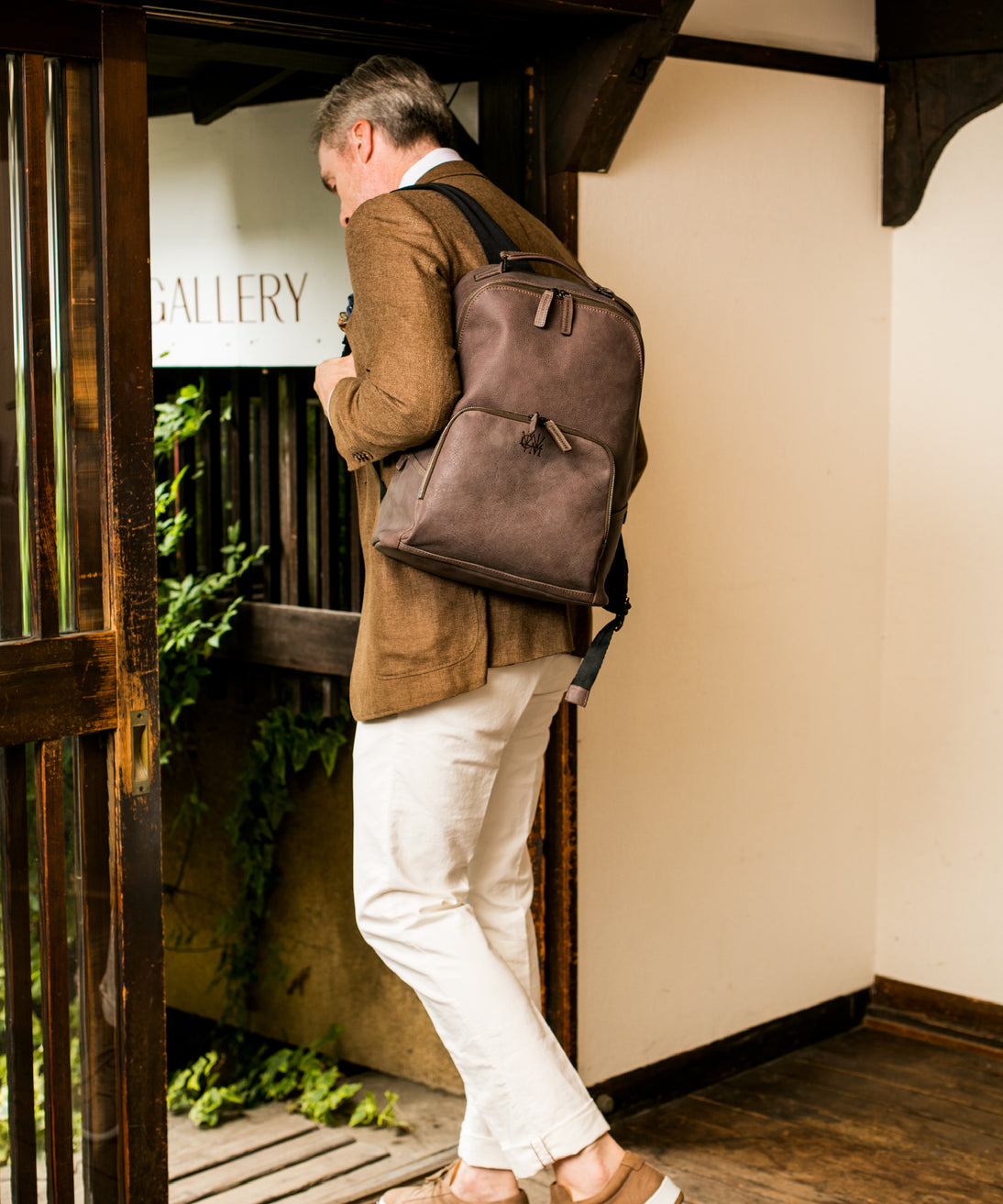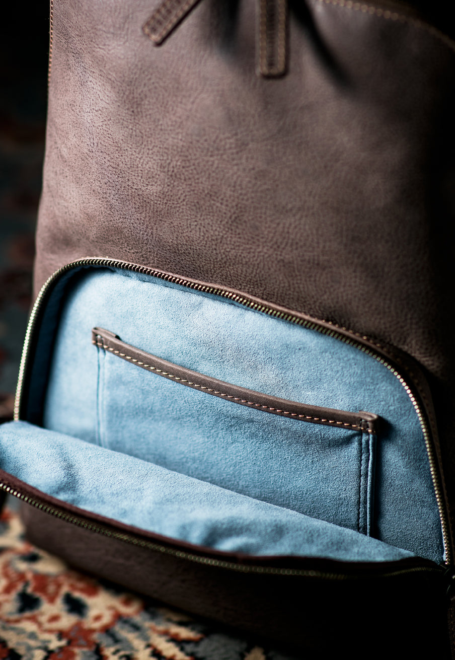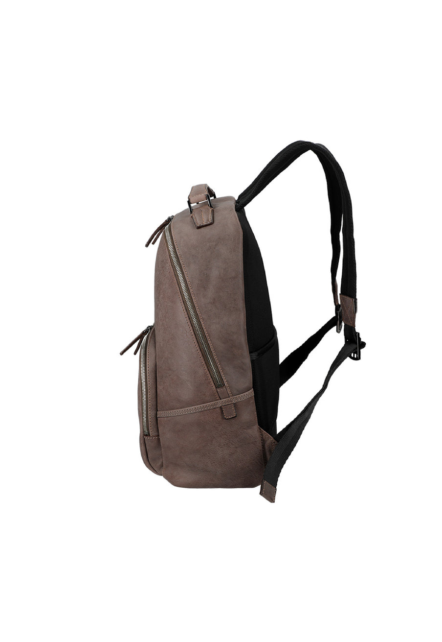 イタリア本場のレザーを楽しめる、スモーキーな加工を施した霧がかかった様な風合いが魅力のカルドミラージュコレクション。上品でいて自然の風合いを生かしたタフさが、革を楽しみながらお洒落さを醸し出します。オーソドックスなバックパックは使い勝手が良く、ビジネスから旅行先で荷物を運搬する為と、幅広く活躍できます。| 外寸 | 縦43cm×横34cm×底厚み17cm (ファスナーポケット)縦19cm×横23.5cm (ファスナー内のフリーポケット)縦13cm×横15cm |