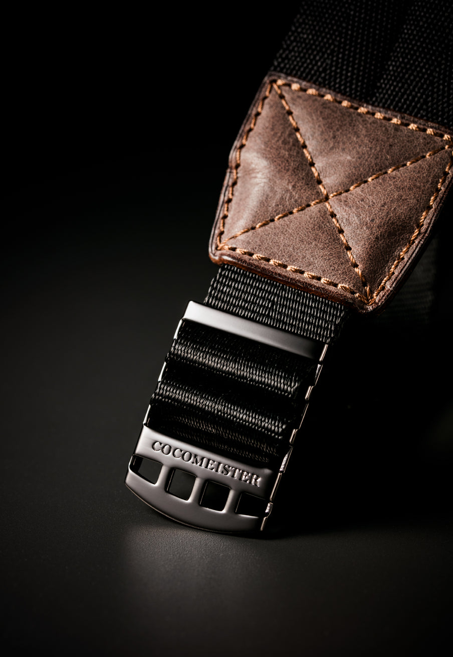 背面はナイロンを使用しており、サラリと汗が染み込まない素材を採用しています。デザイン的には黒色でシックにしており、ビジネスシーンでも使える引き締まったデザインです。