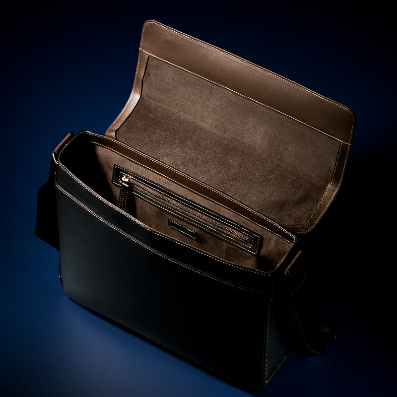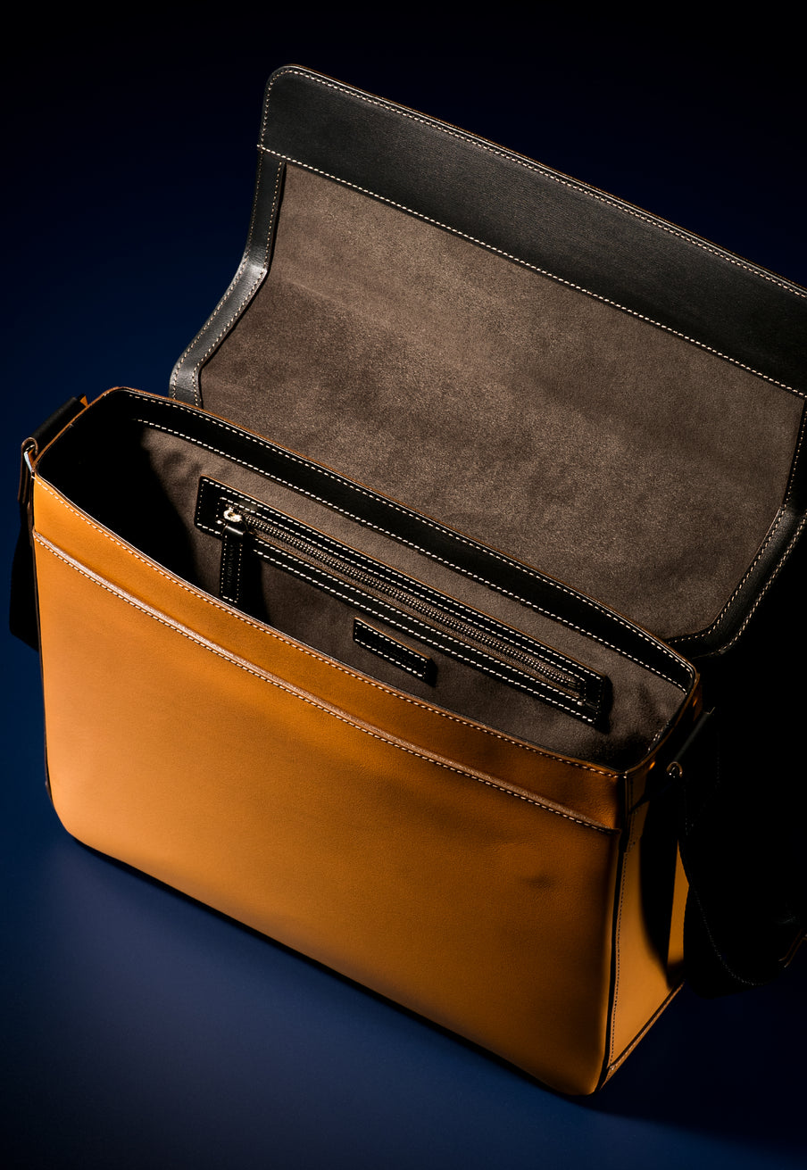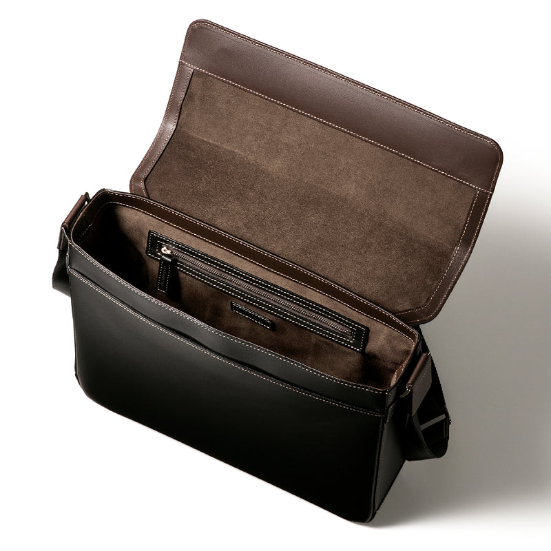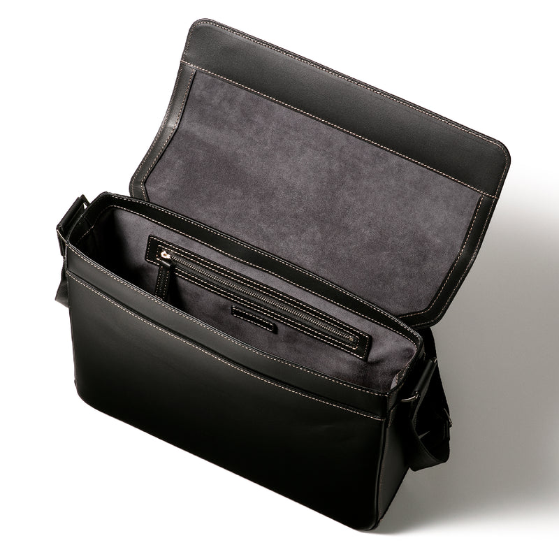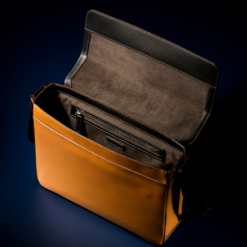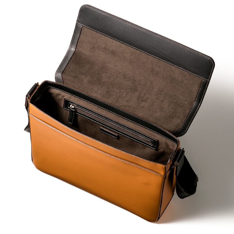 工場夜景をイメージしたシティライトコレクション。大人の男が琥珀色のライトに照らされる、そんな瞬間を演出するコレクションです。フランス産のボックスカーフをシンプルに使い、上質なショルダーバッグを仕立てました。容量も大きめなショルダーで、持ち歩きたい荷物が多い場合も余裕を持って入れることが出来るのが嬉しい。| 外寸 | 縦26cm×横33cm×底厚み8.5cm (ファスナーポケット)縦20cm×横27cm |