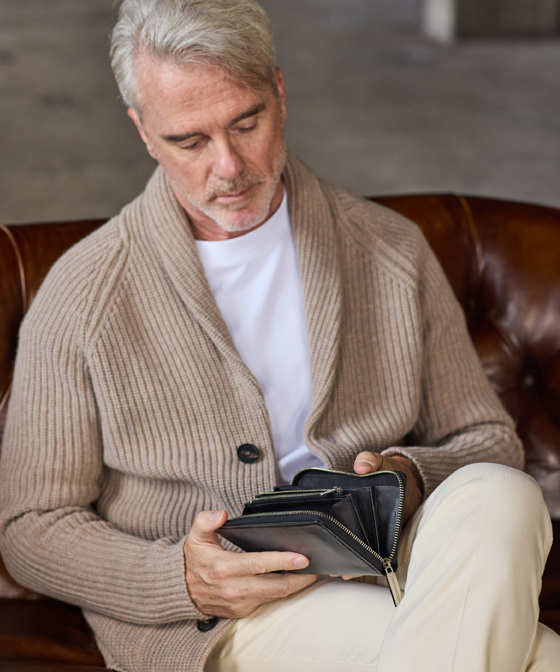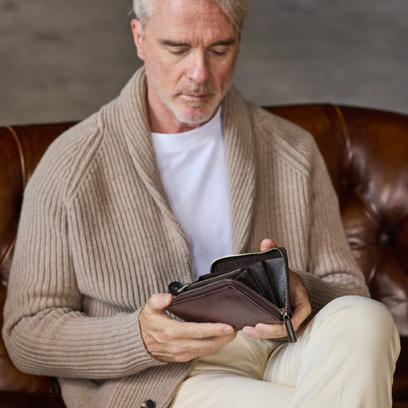 小銭入れの内側まで英国純正オイルレザーで仕立てました。革の上質さと、柔らかさが機能性を高めています。