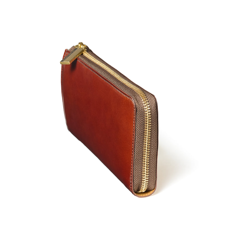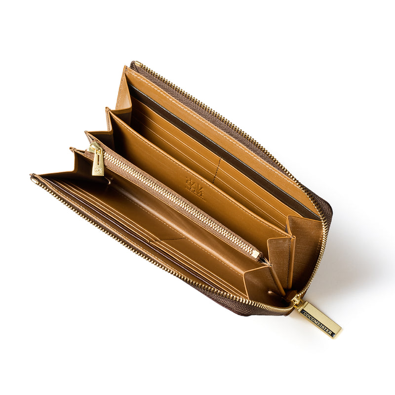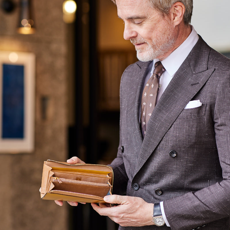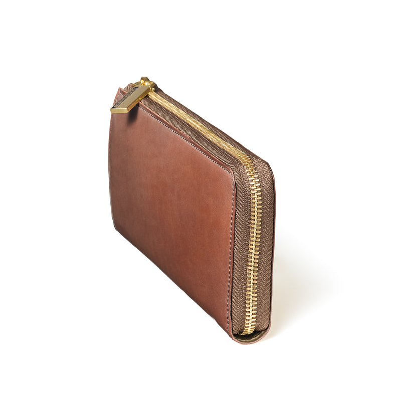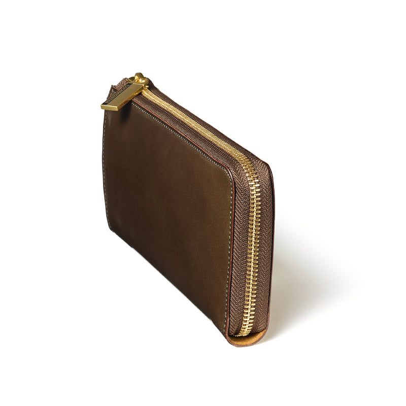L字型のラウンドジップファスナーは、開け閉めが簡単で、使い勝手が良いのが特徴です。紳士物に特化したL字形で本格派な作りにデザインしています。