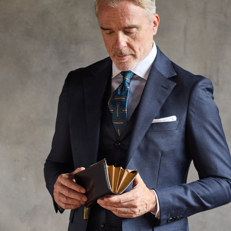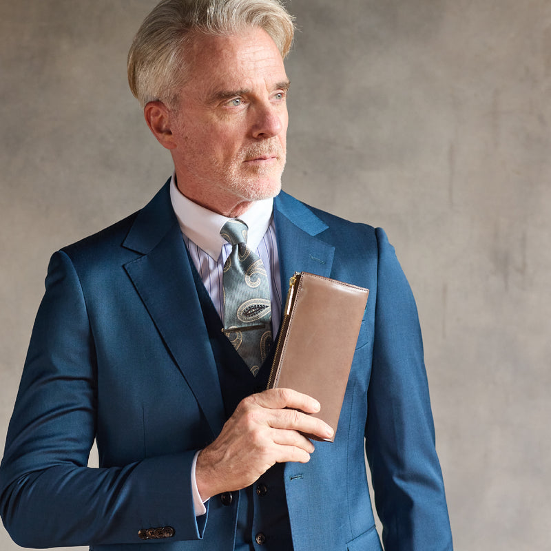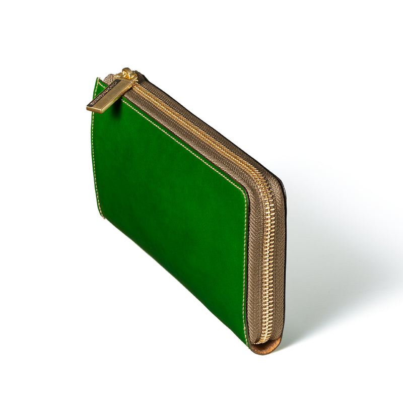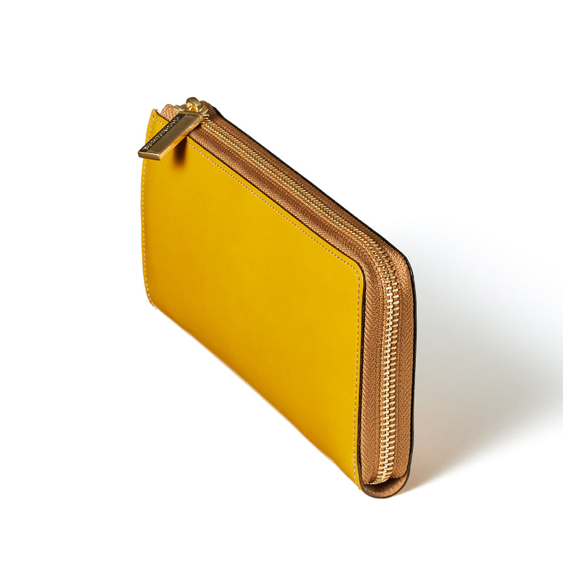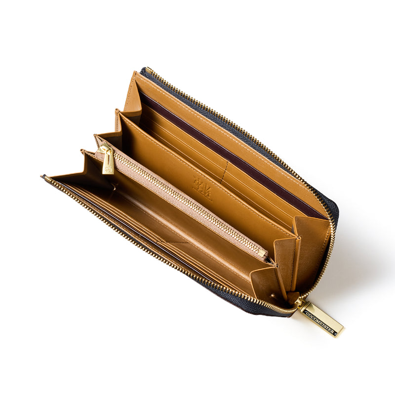 L字型のラウンドジップファスナーは、開け閉めが簡単で、使い勝手が良いのが特徴です。紳士物に特化したL字形で本格派な作りにデザインしています。