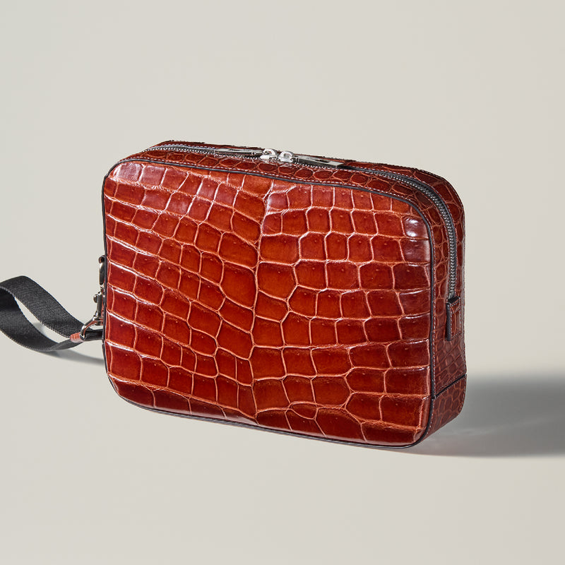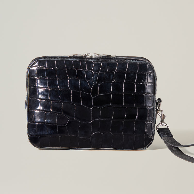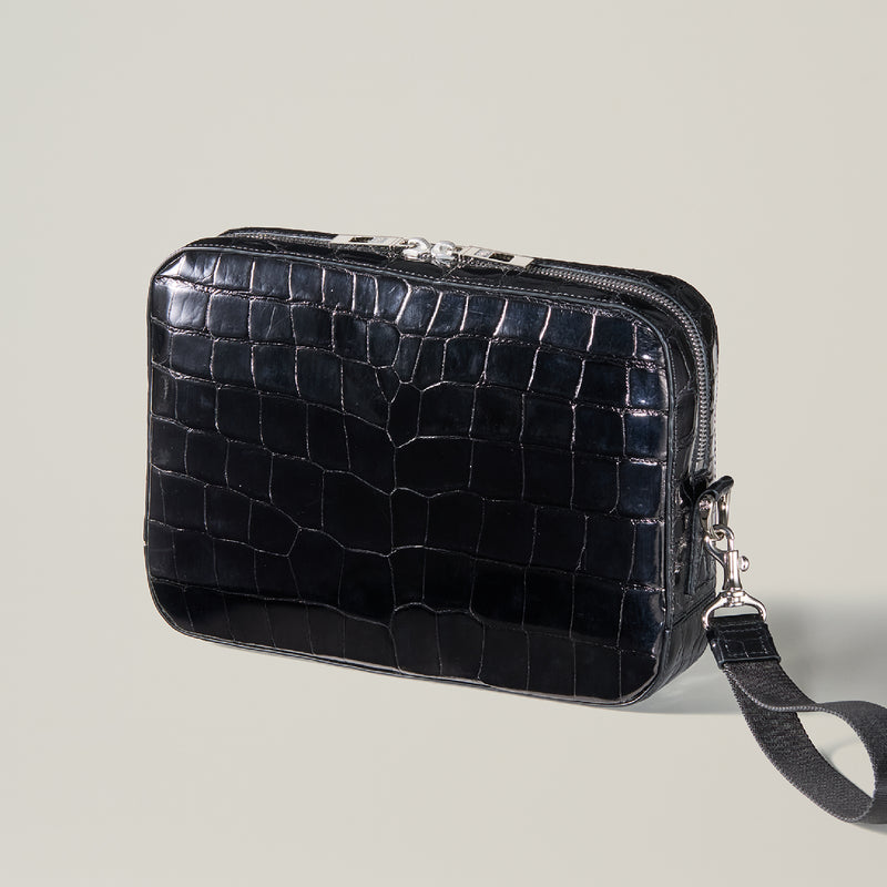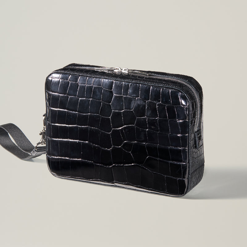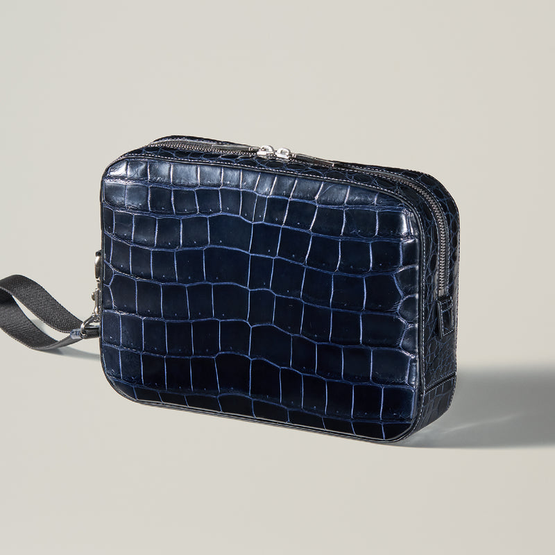 ダイナミックで芸術的な究極クロコダイルコレクション。独自の感性により生まれたフランス産の最高級クロコダイルレザー。現代のライフスタイルに合う様に、日本のクロコダイル熟練工が仕立てます。究極のセカンドバッグとして圧倒的な芸術性を誇るクロコダイル・セカンドバッグ。従来のセカンドバッグ型をベースとし、現代にも似合うデザインに。モダンで使い勝手の良く仕上がりました。| 外寸 | 縦20cm×横26.5cm×底厚み6cm |