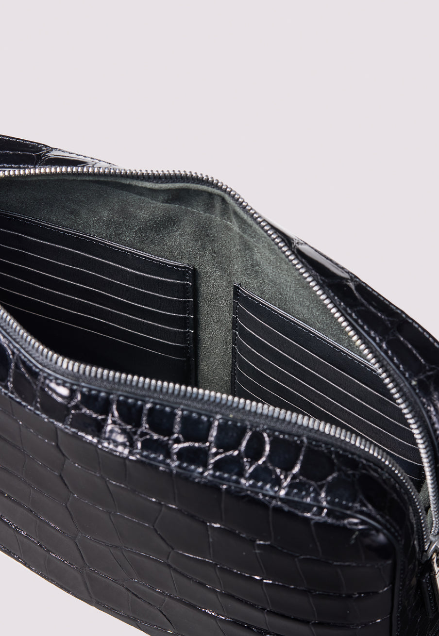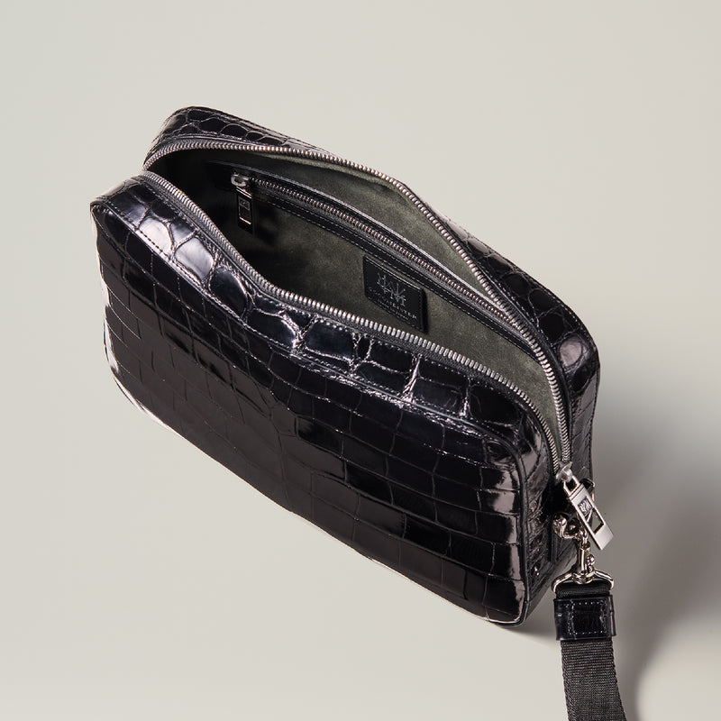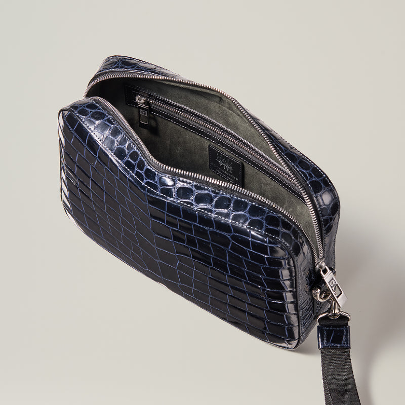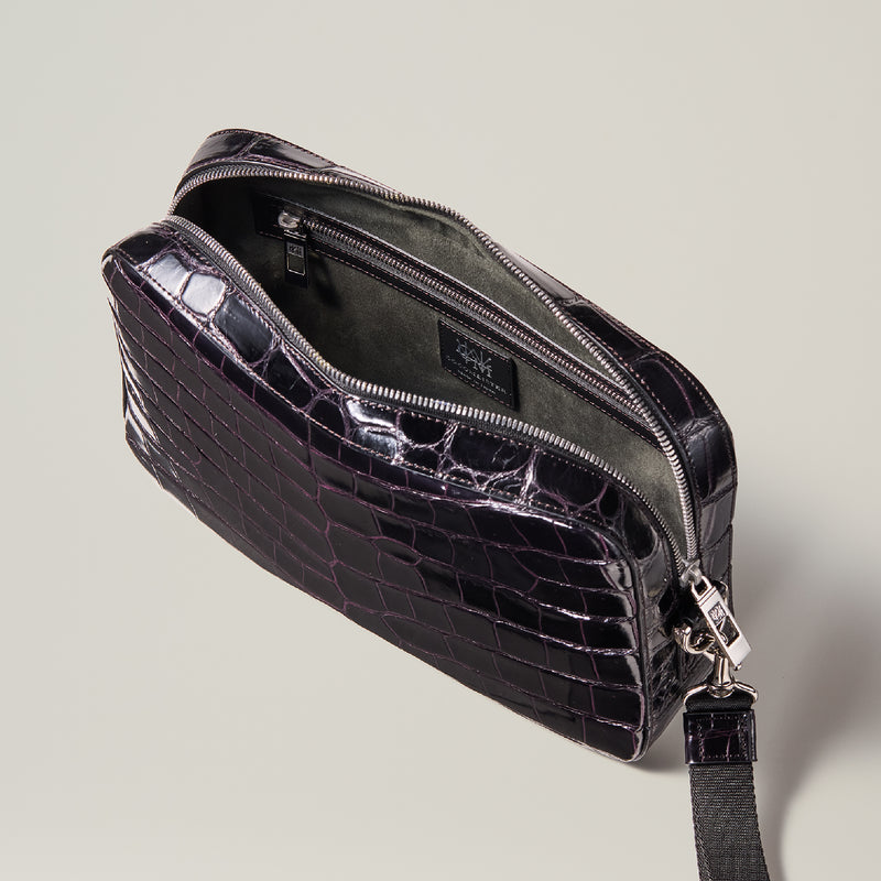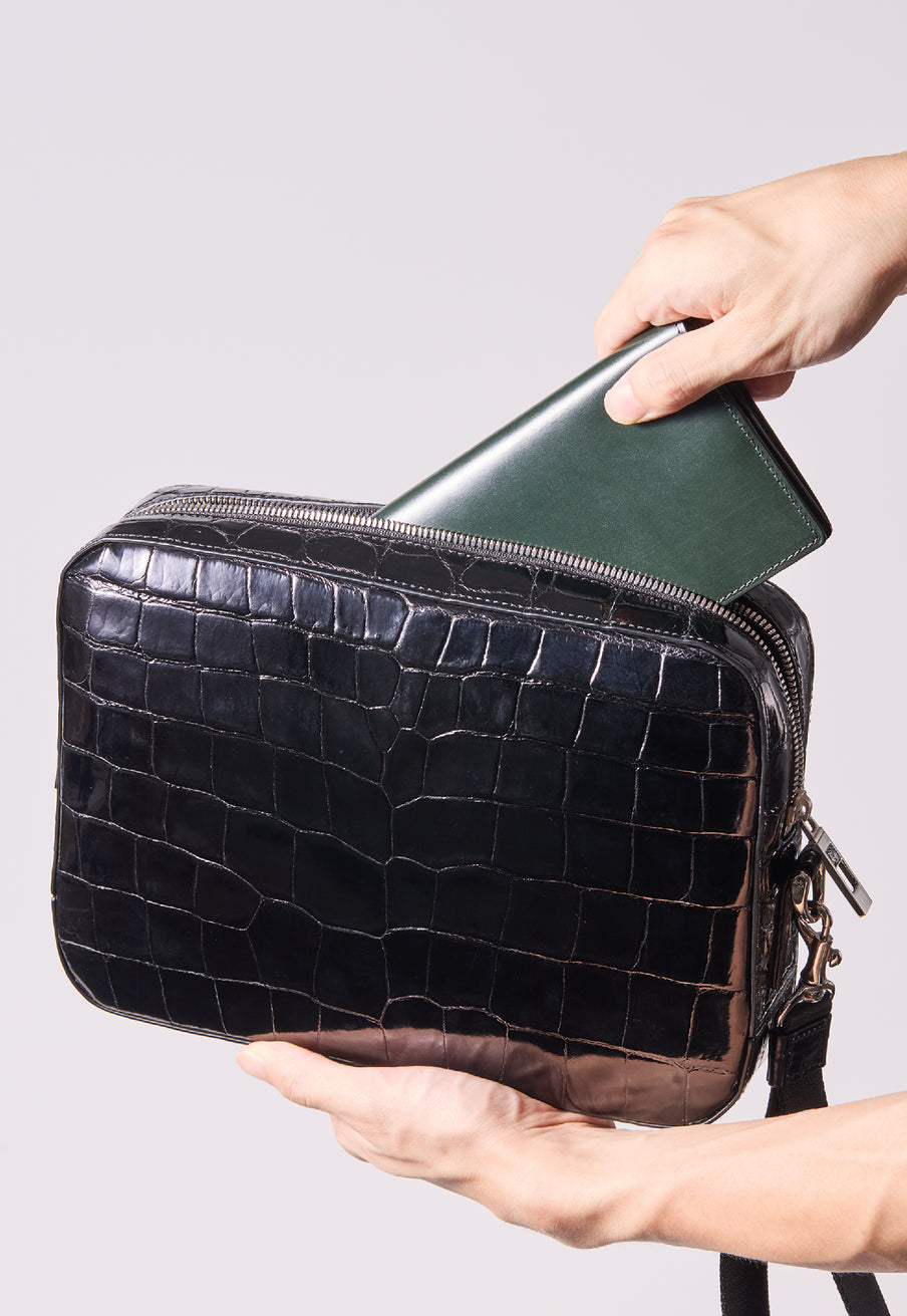 ダイナミックで芸術的な究極クロコダイルコレクション。独自の感性により生まれたフランス産の最高級クロコダイルレザー。現代のライフスタイルに合う様に、日本のクロコダイル熟練工が仕立てます。究極のセカンドバッグとして圧倒的な芸術性を誇るクロコダイル・セカンドバッグ。従来のセカンドバッグ型をベースとし、現代にも似合うデザインに。モダンで使い勝手の良く仕上がりました。| 外寸 | 縦20cm×横26.5cm×底厚み6cm |
