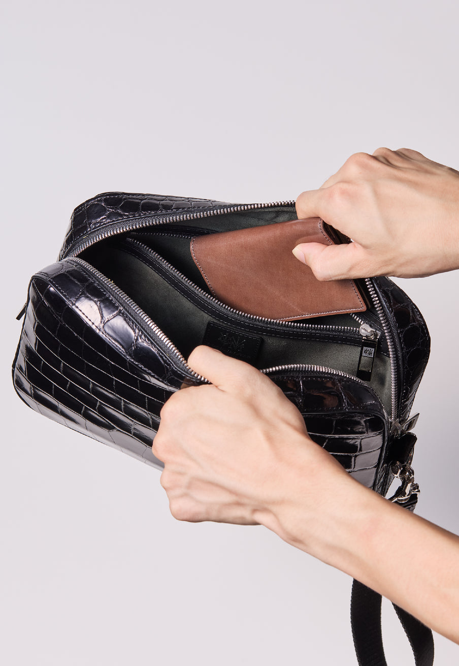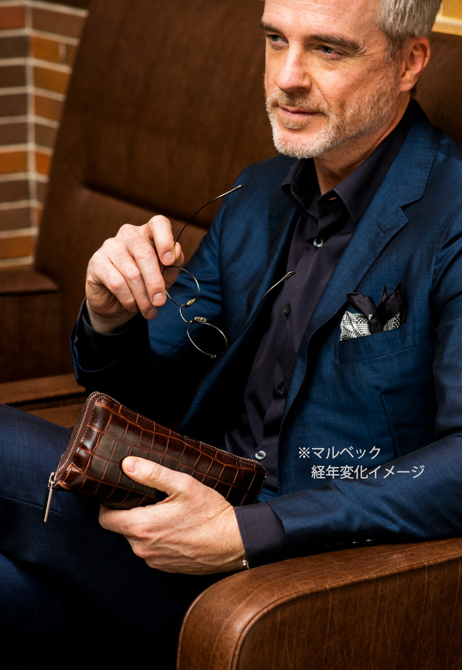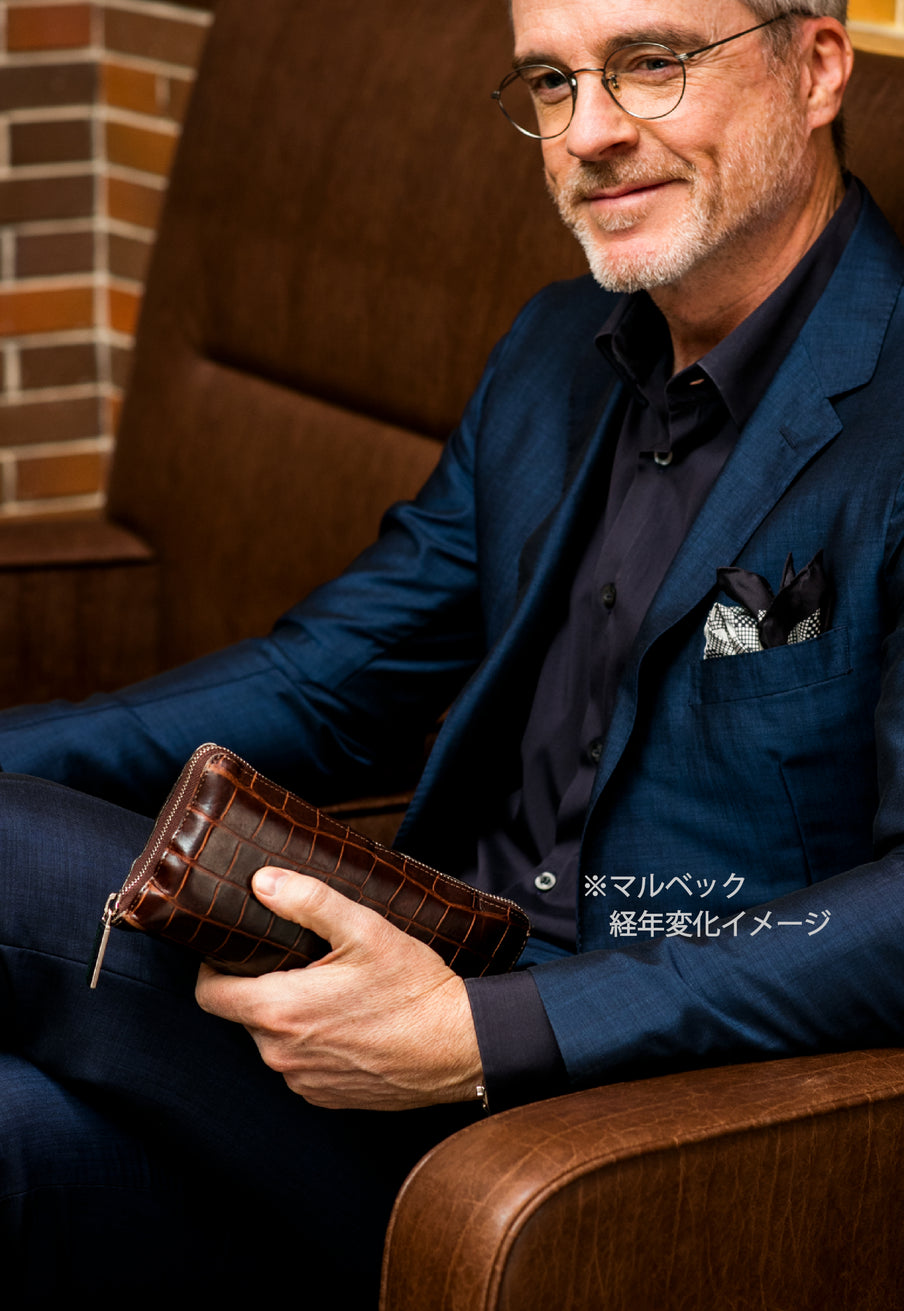 フランス産大判クロコダイルを厳選し、日本の熟練職人が部位を指定して仕立てています。