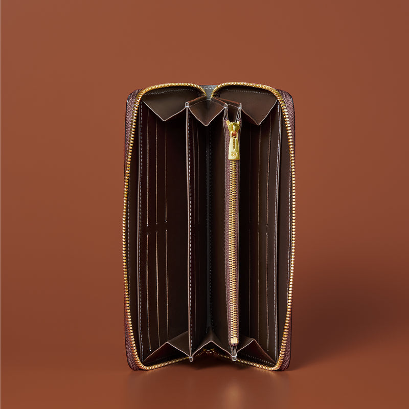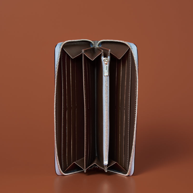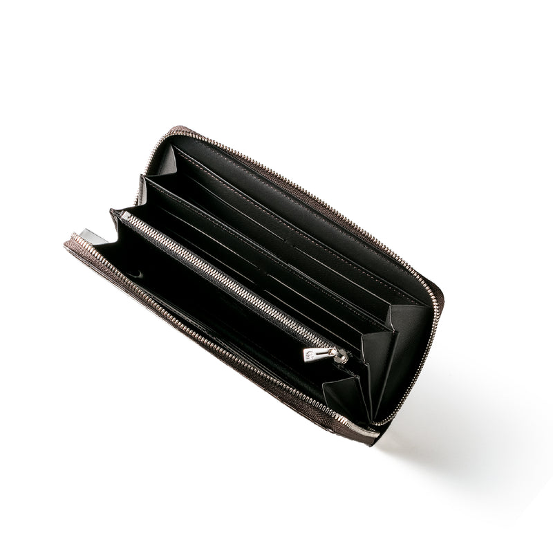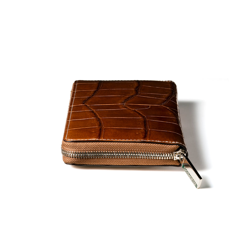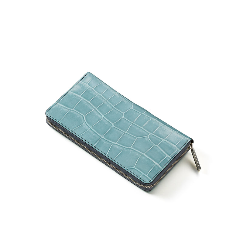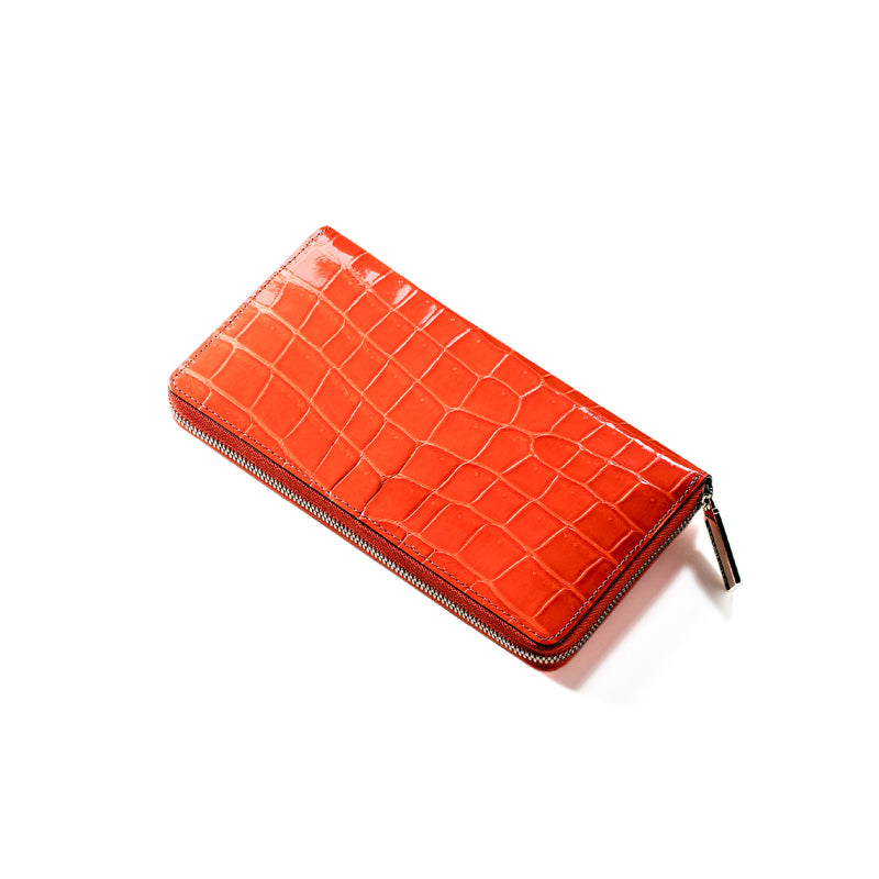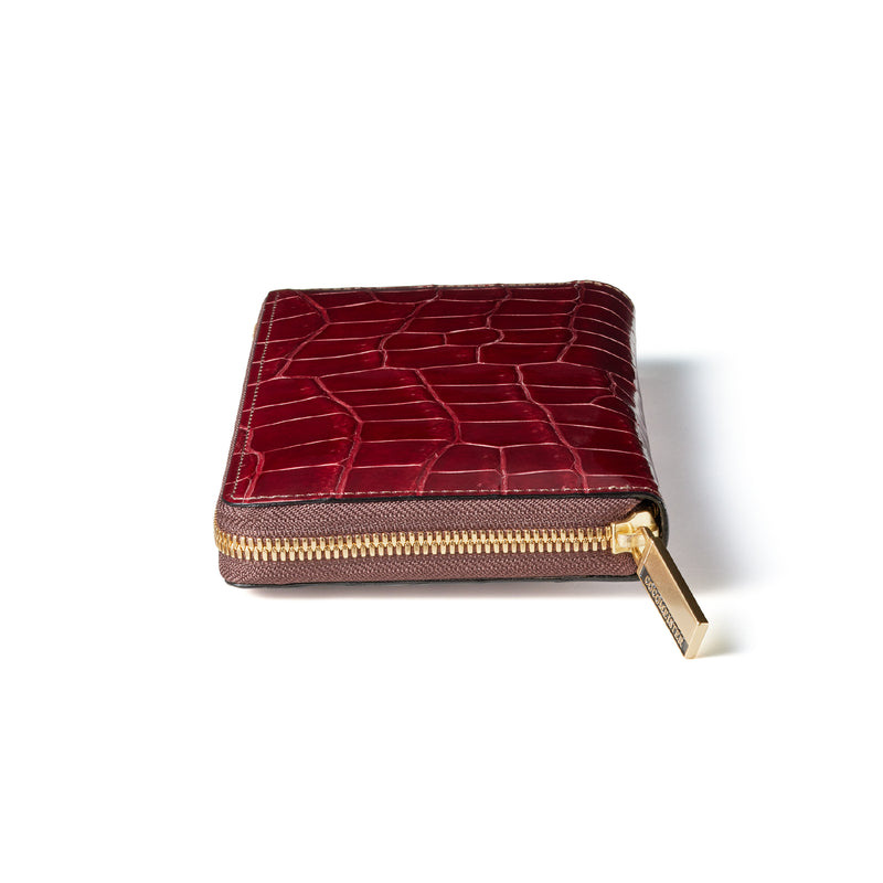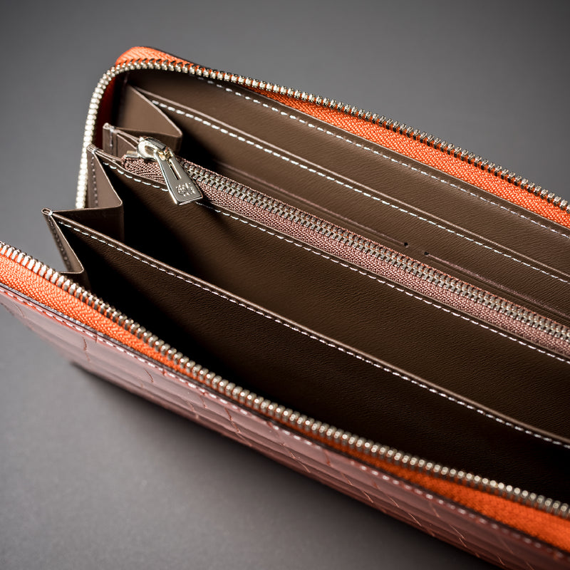 ダイナミックで芸術的な究極クロコダイルコレクション。独自の感性により生まれたフランス産の最高級クロコダイルレザー。現代のライフスタイルに合う様に、日本のクロコダイル熟練工が仕立てます。大きめのラウンドジップ型の長財布で、容量が大きめで使い勝手が良いのが特徴です。中身を落とす心配もなく、重厚感のあるフォルムが格好良くお洒落です。| 外寸 | 縦11.5cm×横21cm×厚み2.3cm |