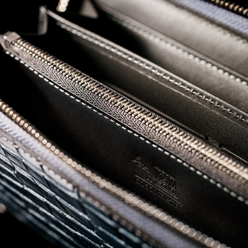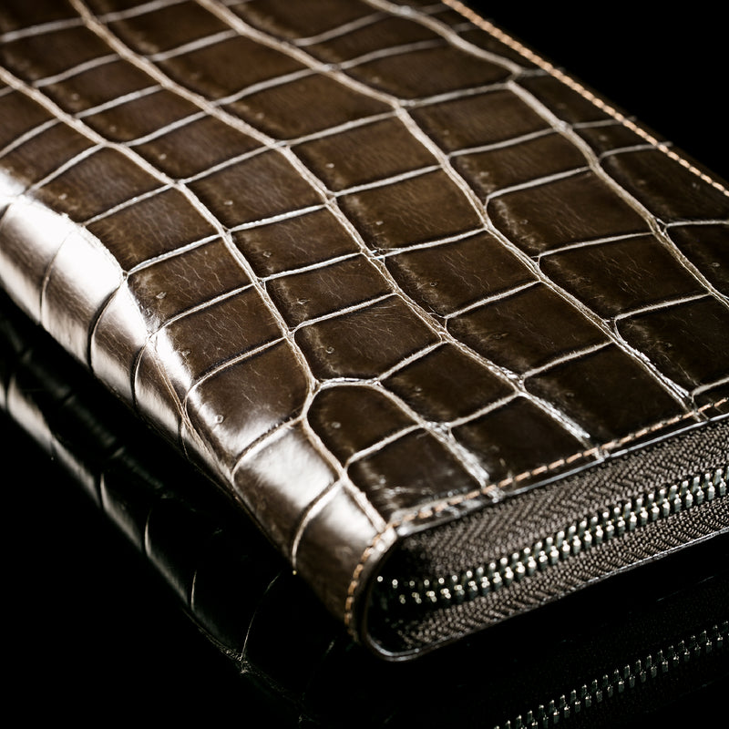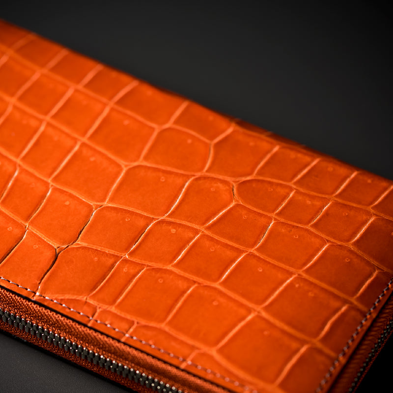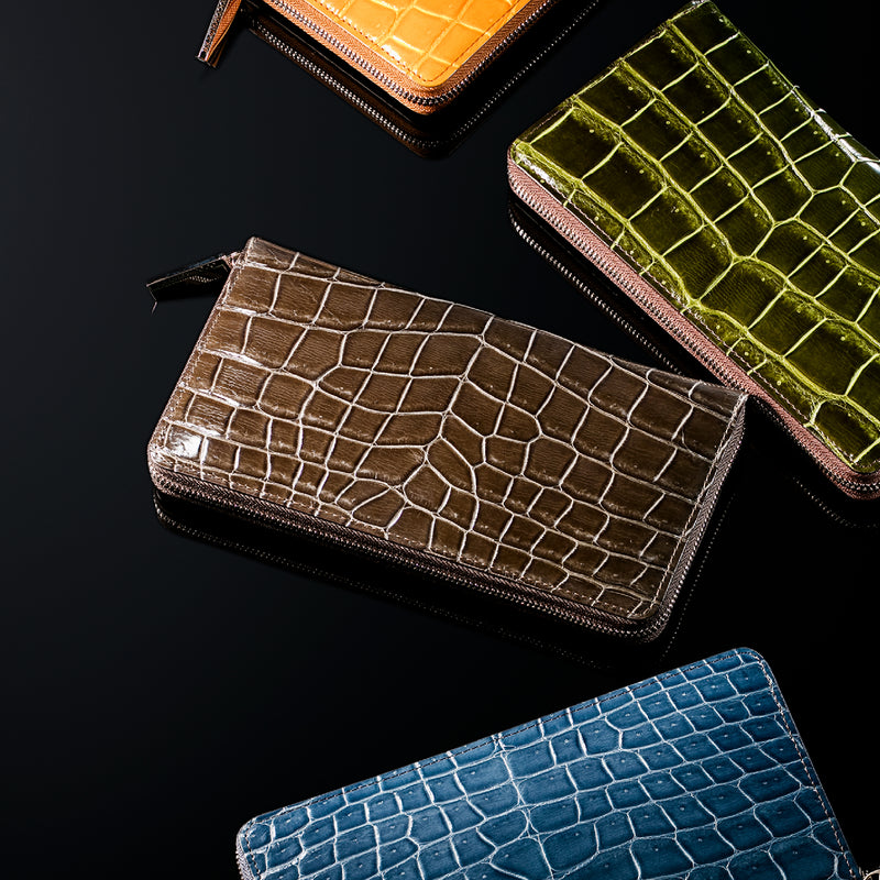 フランス産大判クロコダイルを厳選し、日本の熟練職人が部位を指定して仕立てています。