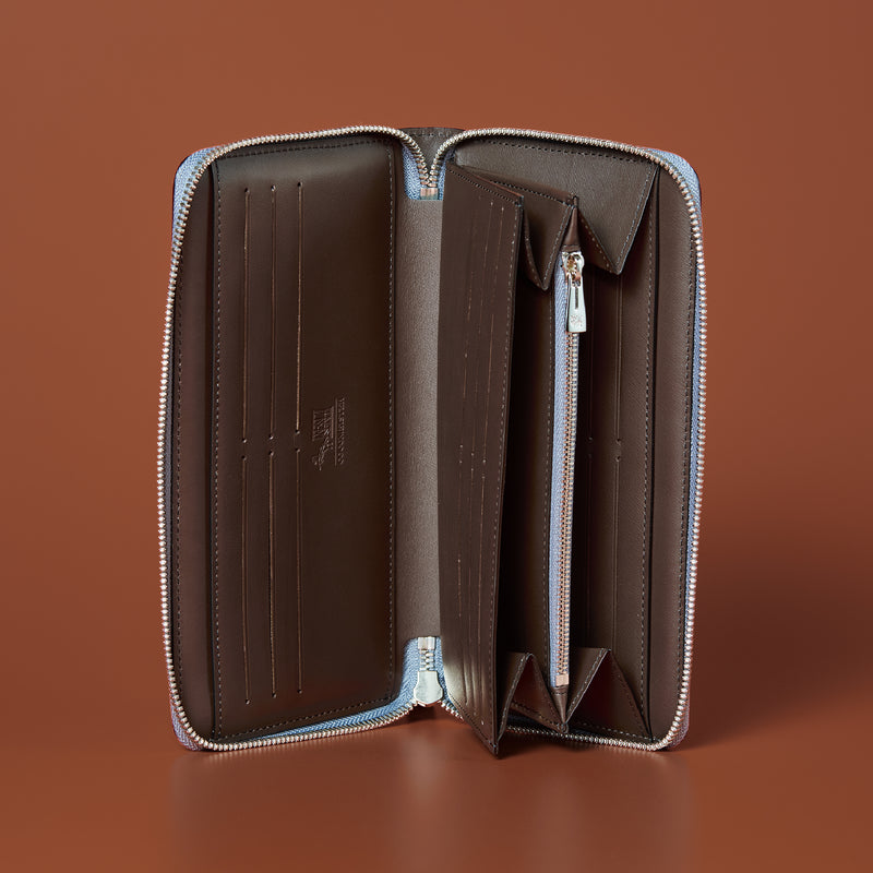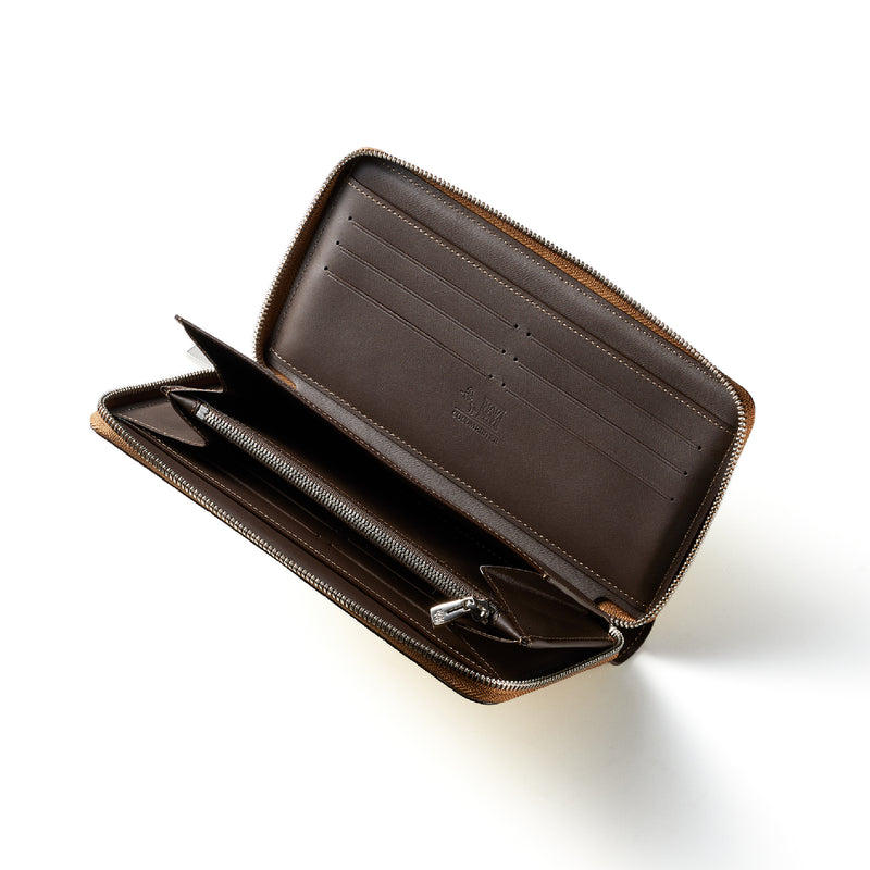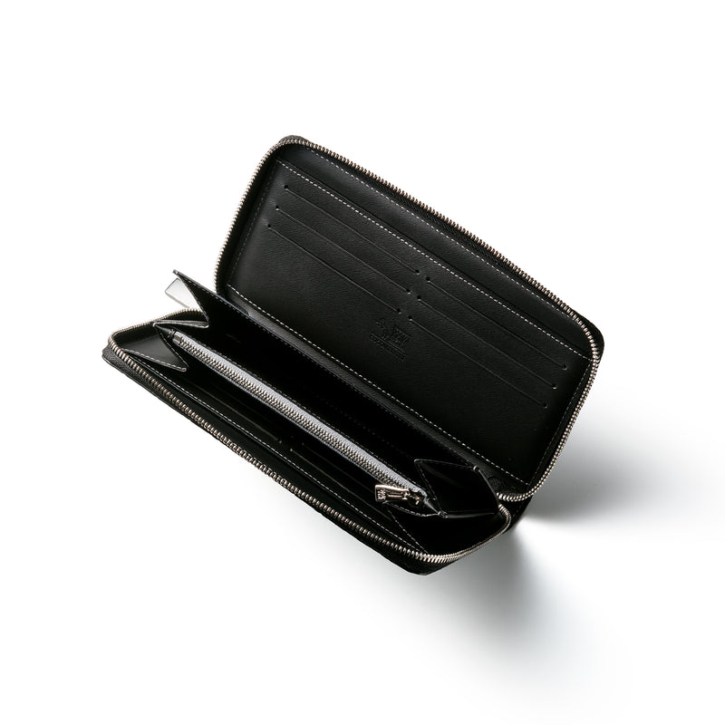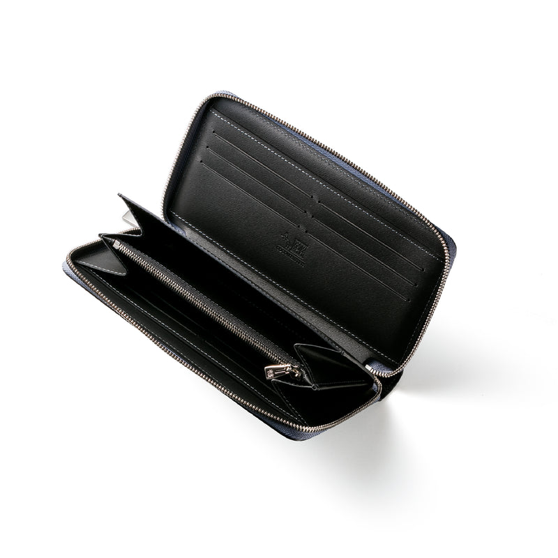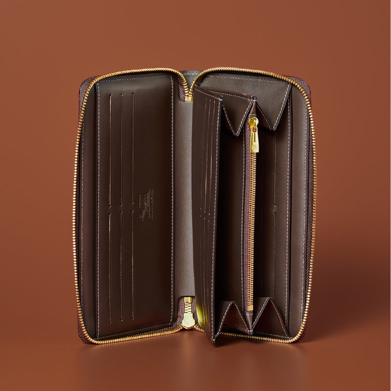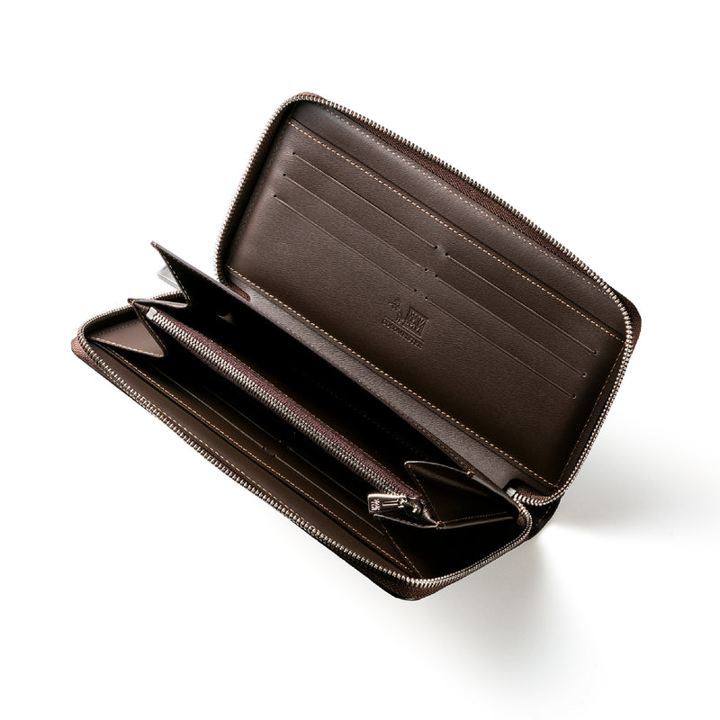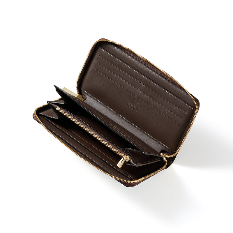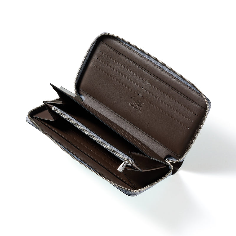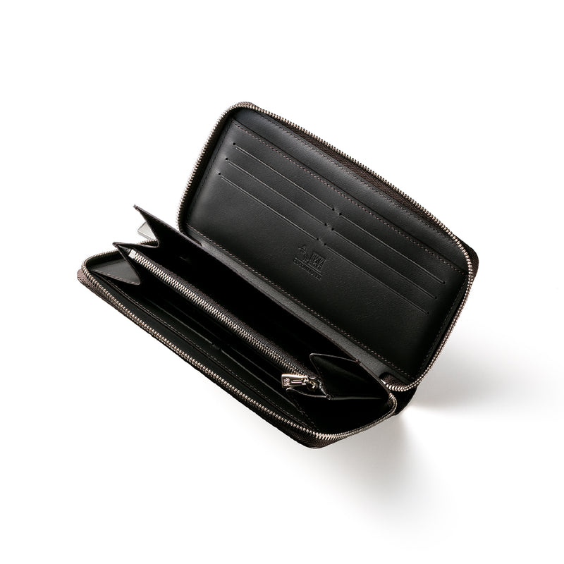 大型のラウンドジップ長財布です。大容量で、領収証やカード類を多く収納することができます。エグゼクティブの為の長財布。
