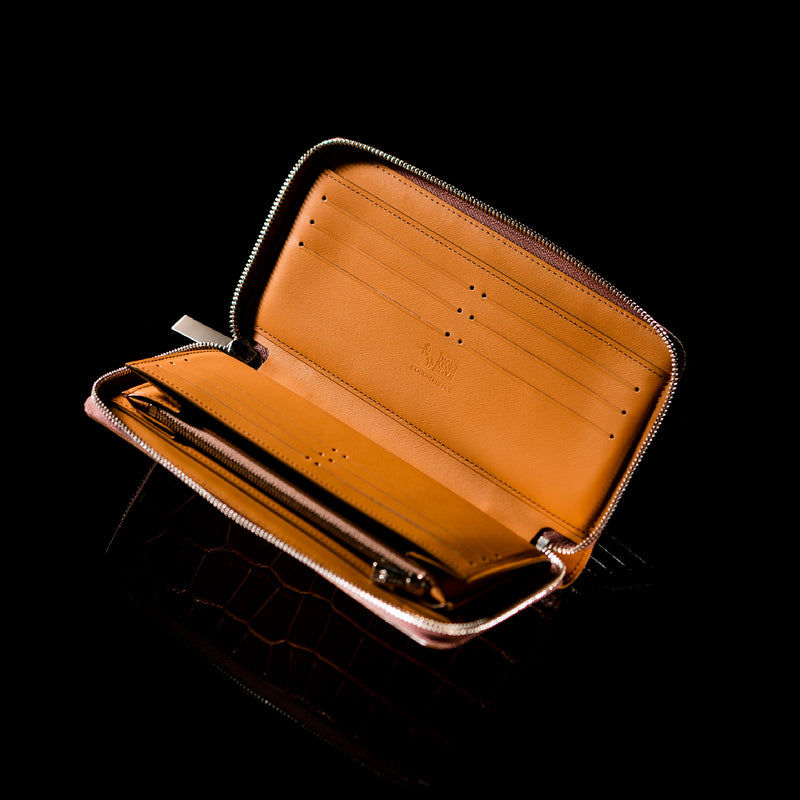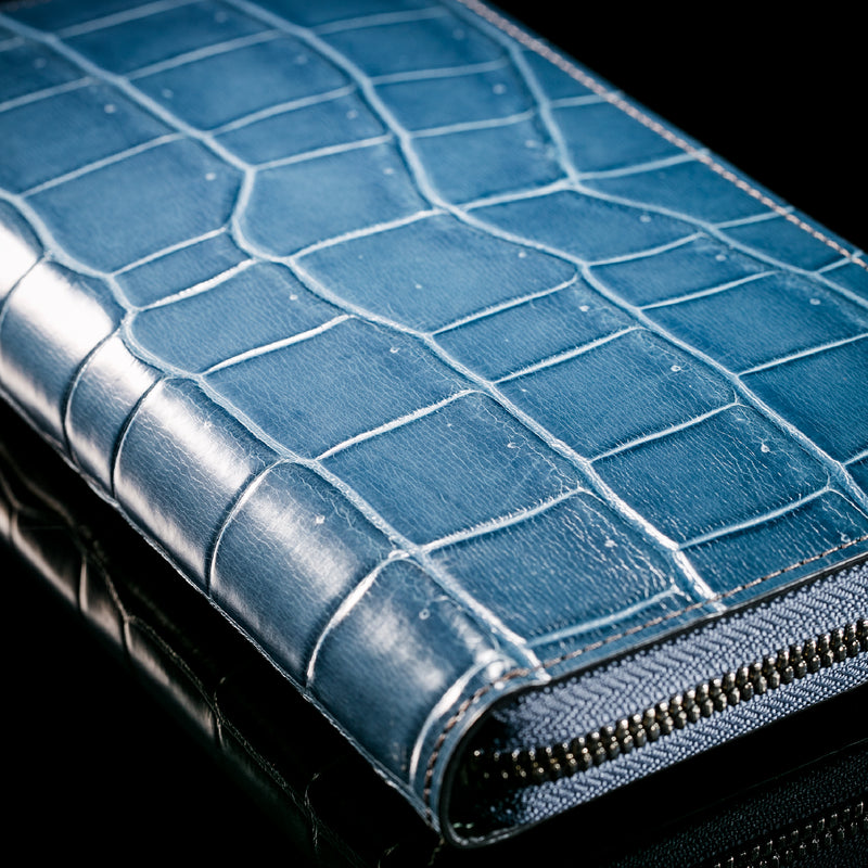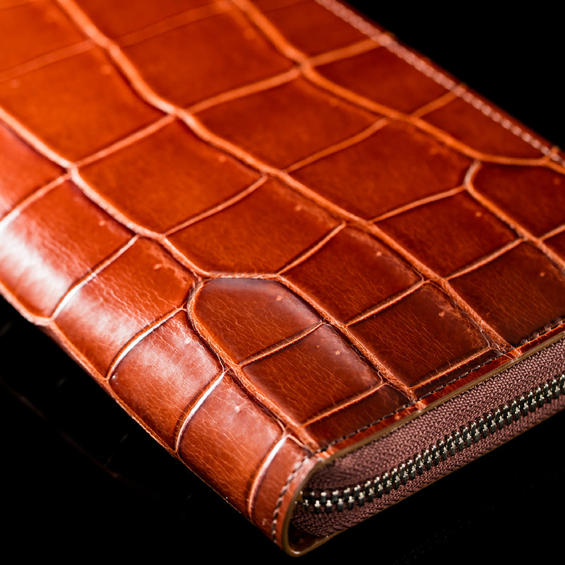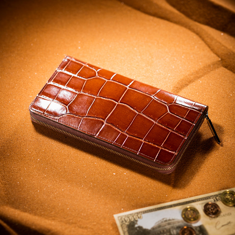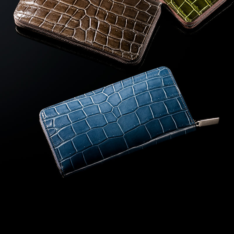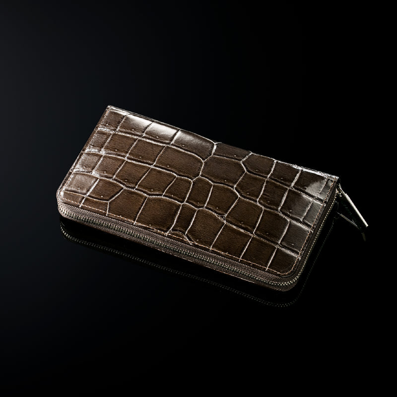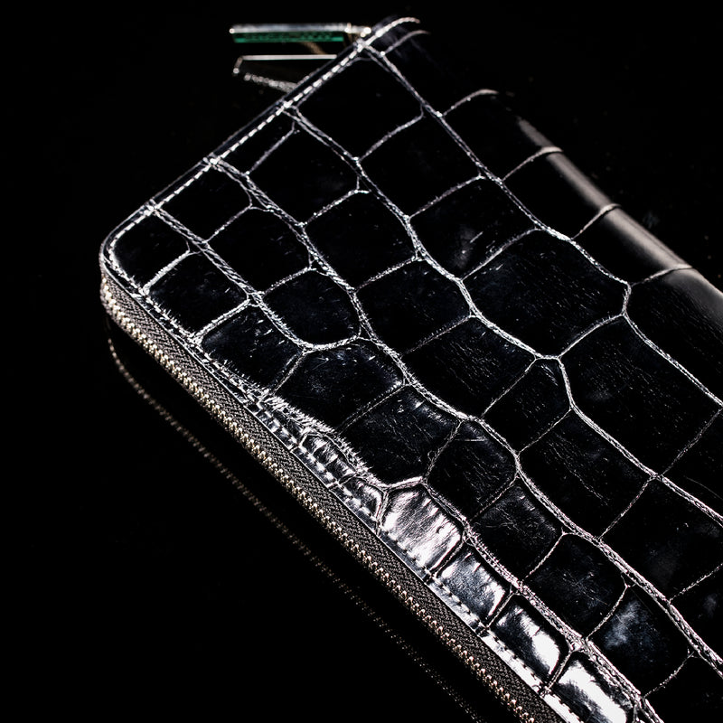 フランス産大判クロコダイルを厳選し、日本の熟練職人が部位を指定して仕立てています。