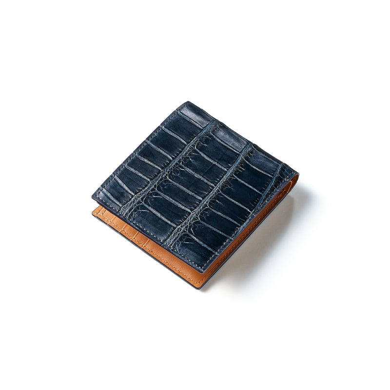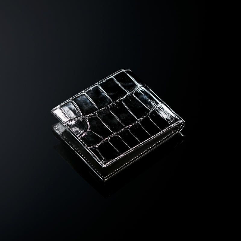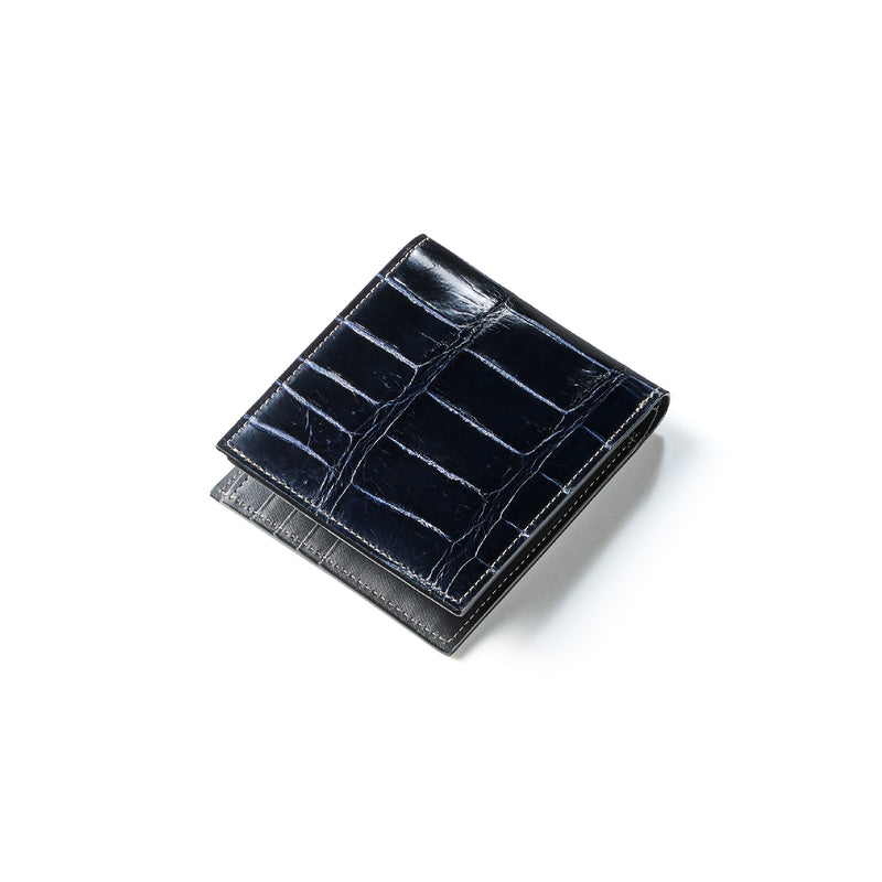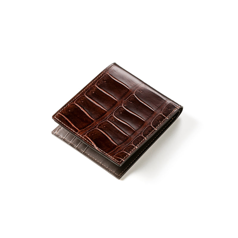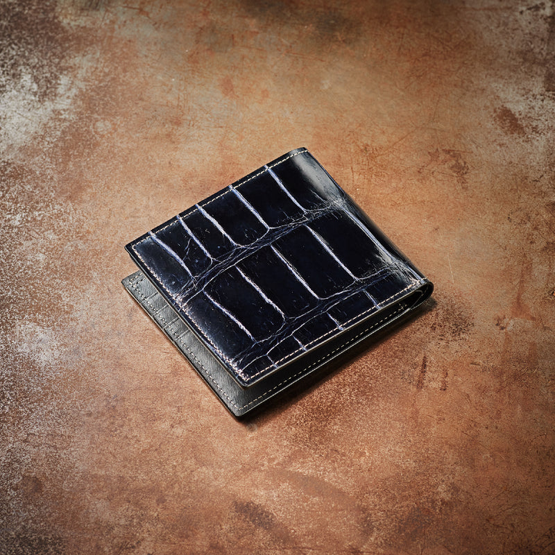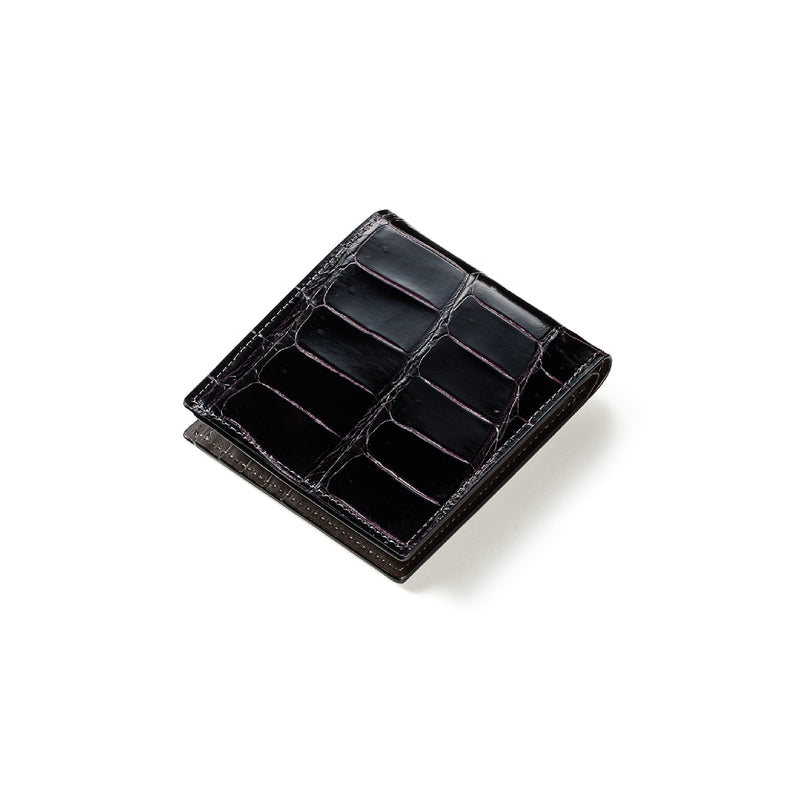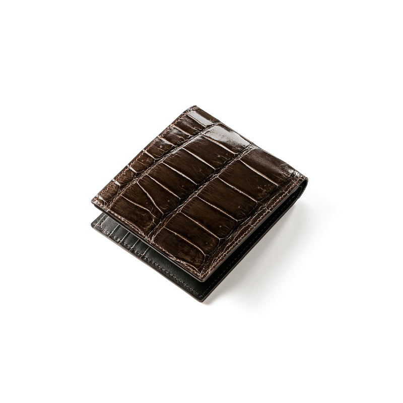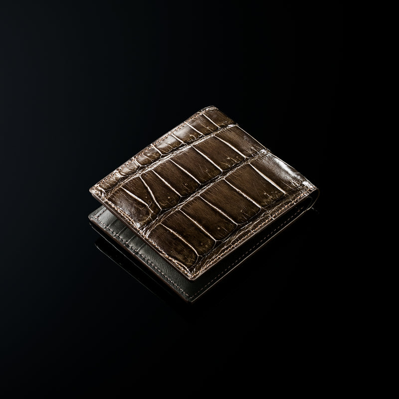 ダイナミックで芸術的な究極クロコダイルコレクション。独自の感性により生まれたフランス産の最高級クロコダイルレザー。現代のライフスタイルに合う様に、日本のクロコダイル熟練工が仕立てます。お札とカードを収納できるスマート財布です。クラシカルタイプの2つ折り財布、開くと両方にカード段が付いており、小銭入れが無い分スマートで薄型なのが魅力です。| 外寸 | 縦9.3cm×横10.8cm×厚み2.3cm |