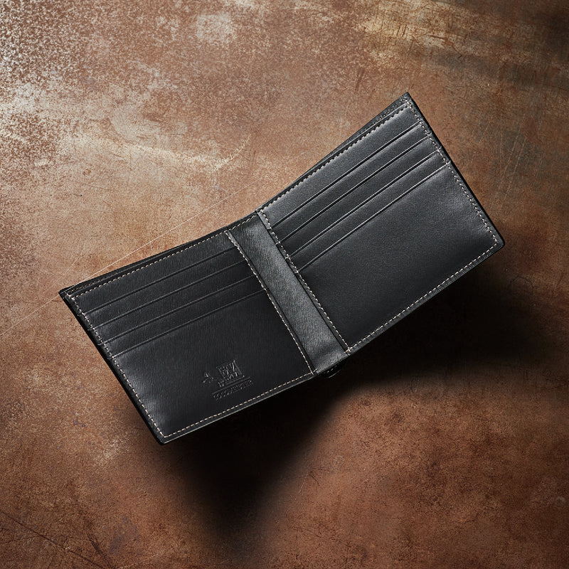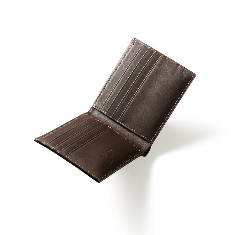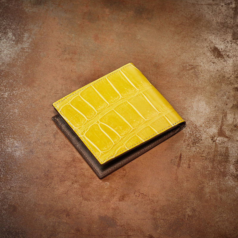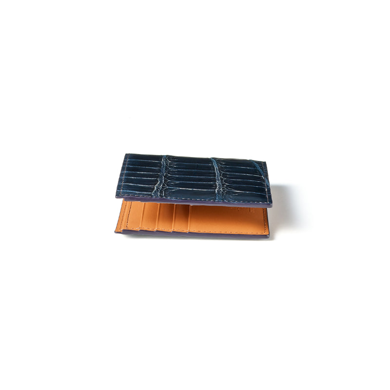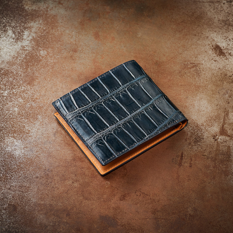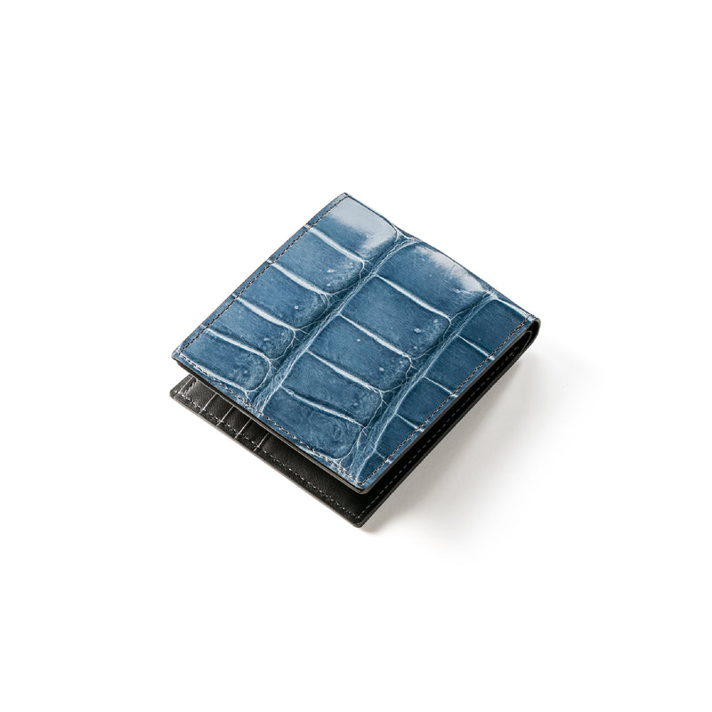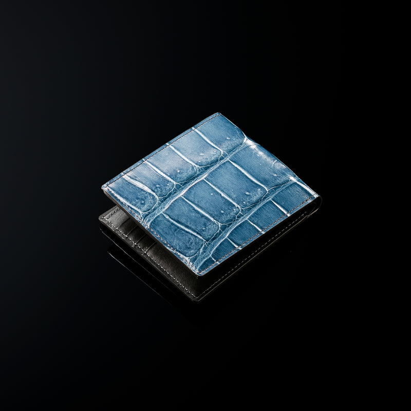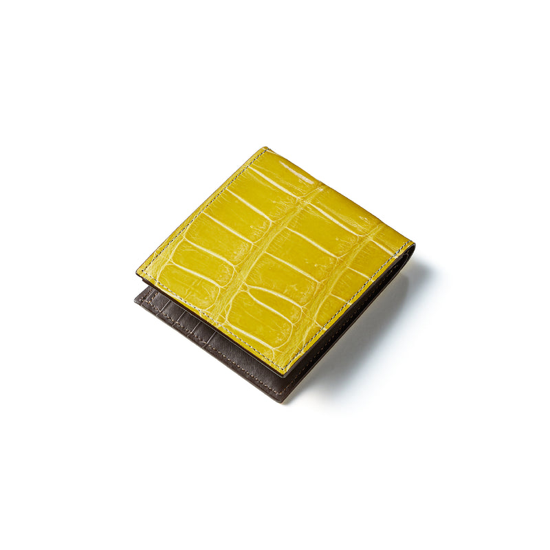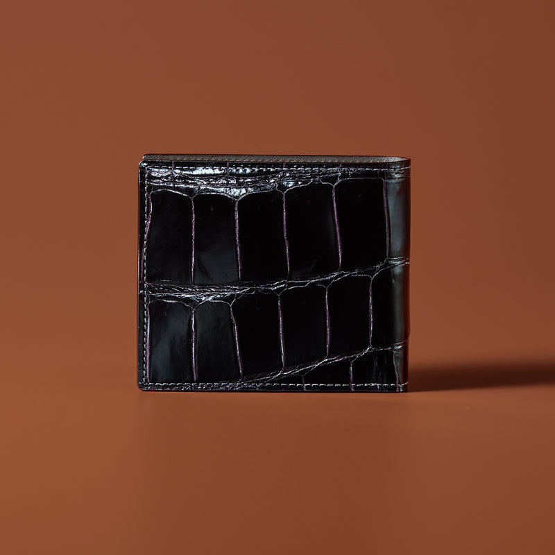 ダイナミックで芸術的な究極クロコダイルコレクション。独自の感性により生まれたフランス産の最高級クロコダイルレザー。現代のライフスタイルに合う様に、日本のクロコダイル熟練工が仕立てます。お札とカードを収納できるスマート財布です。クラシカルタイプの2つ折り財布、開くと両方にカード段が付いており、小銭入れが無い分スマートで薄型なのが魅力です。| 外寸 | 縦9.3cm×横10.8cm×厚み2.3cm |