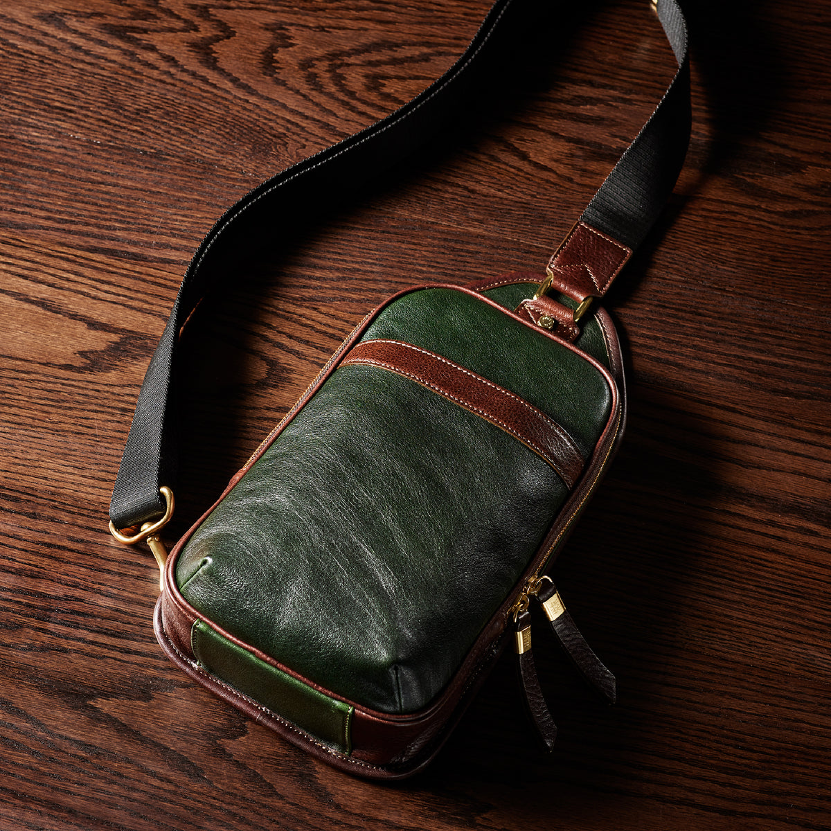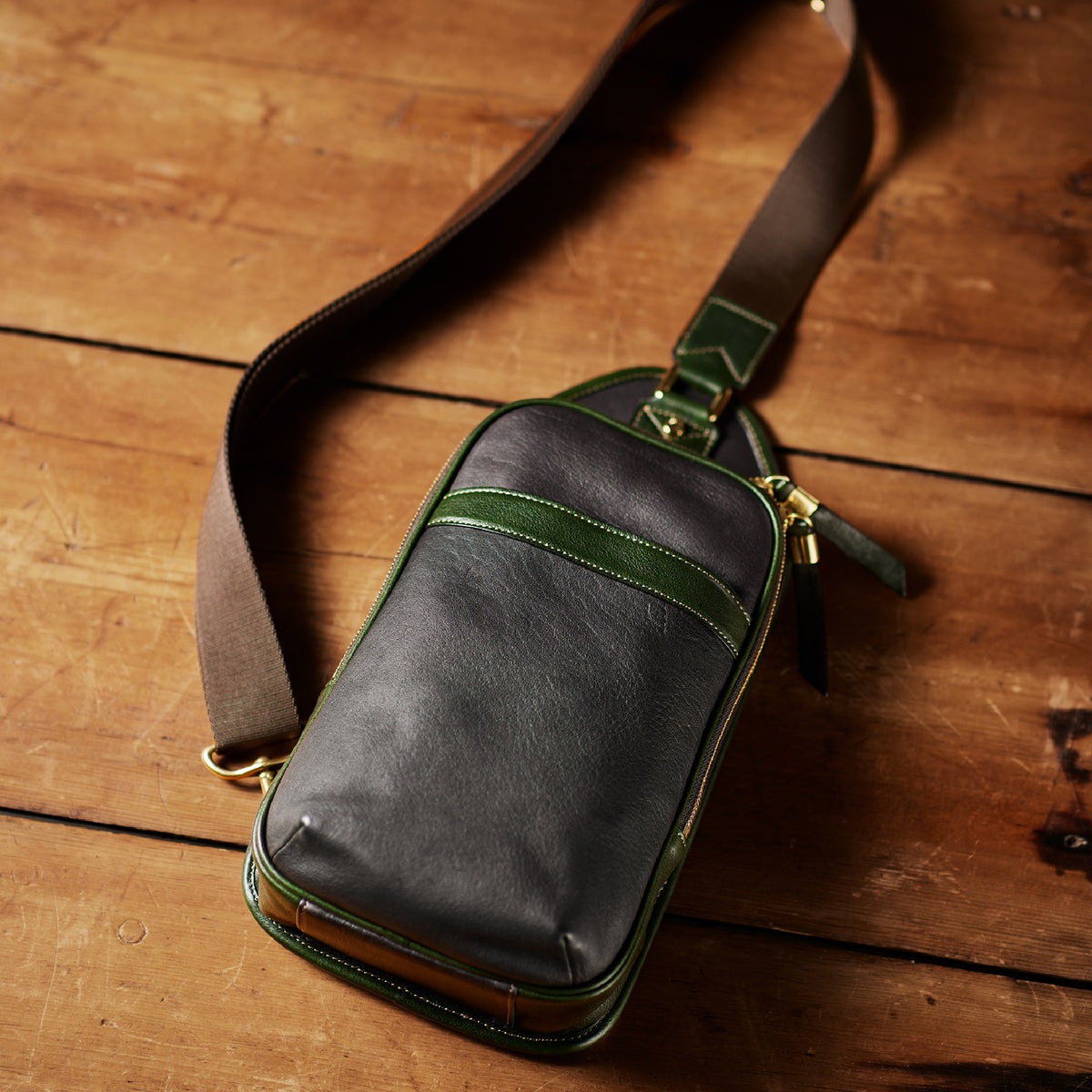 英国純正オイルレザーの自然な光沢が、クラシカルで重厚な表情を描き出します。