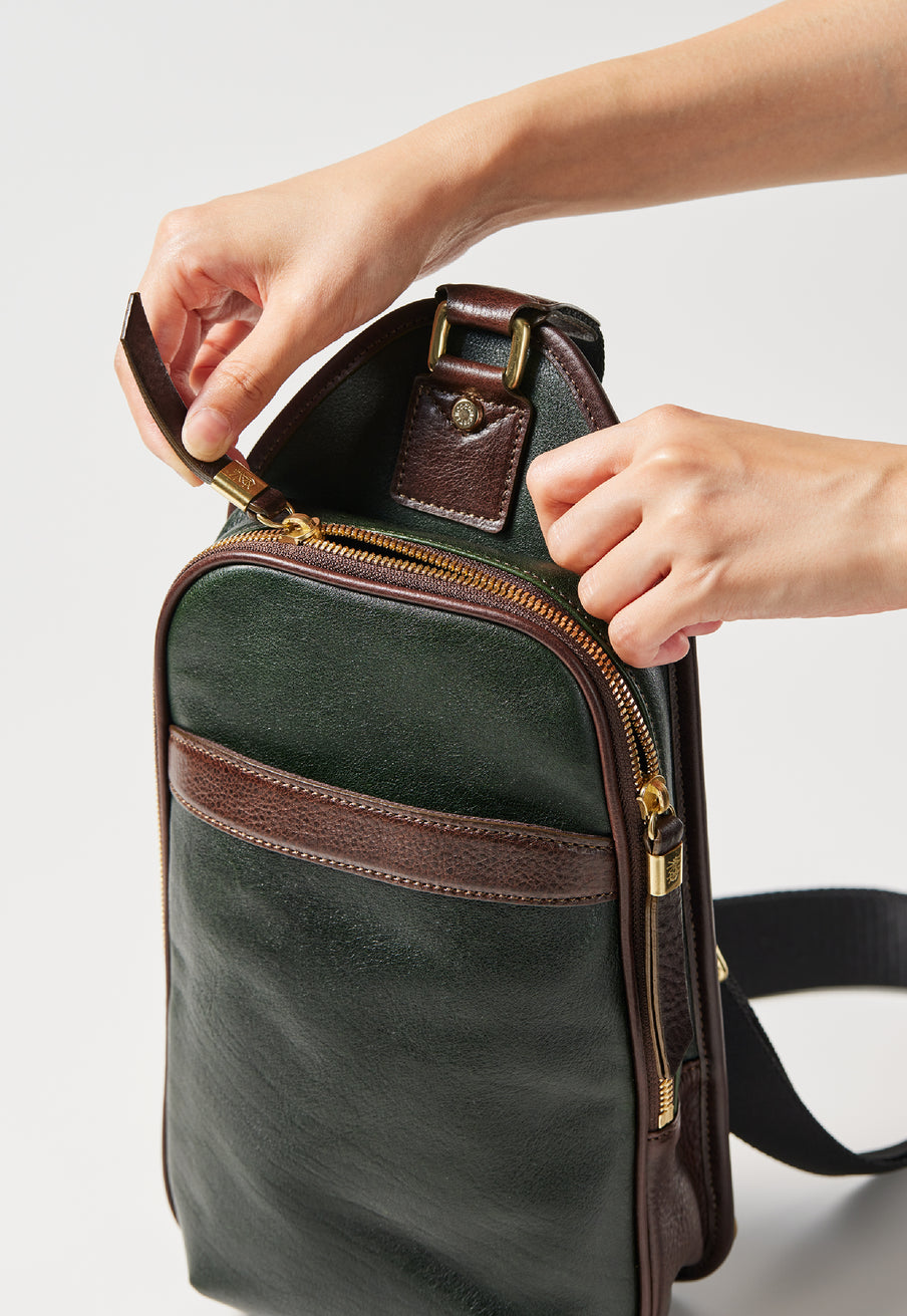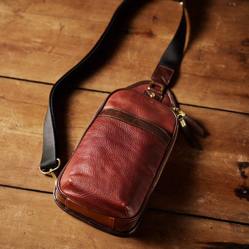 1825年のストックトン・アンド・ダーリントン鉄道の蒸気機関車からイメージしたコレクションです。英国純正革のオリジナルワックスレザーを使用した、ボディショルダーです。大人の渋さを実現したお洒落なボディショルダーです。必要な物を入れて、アクティブに休日から旅行まで使用するのに最適です。カジュアルさと重厚感が見事にマッチ。| 外寸 | 縦34cm×横18.3cm×底厚み7.5cm (フリーポケット)縦20.5cm×横16cm |