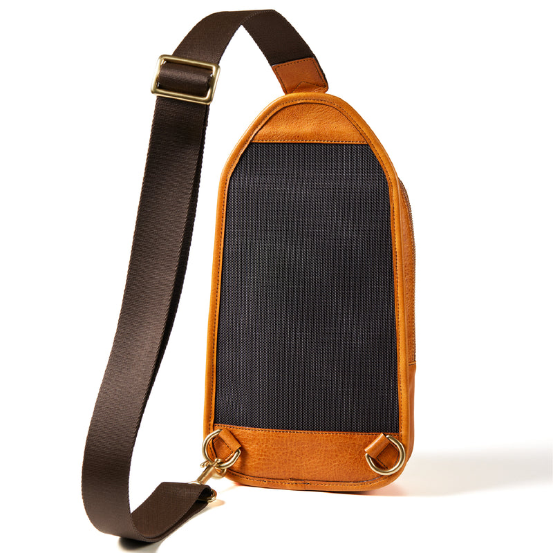 背面は米軍防弾ベスト用に開発されたバリスティックナイロン66を使用し、真鍮のDカンは、持ち主の好み通りに、左右どちらでも取り付け可能です。