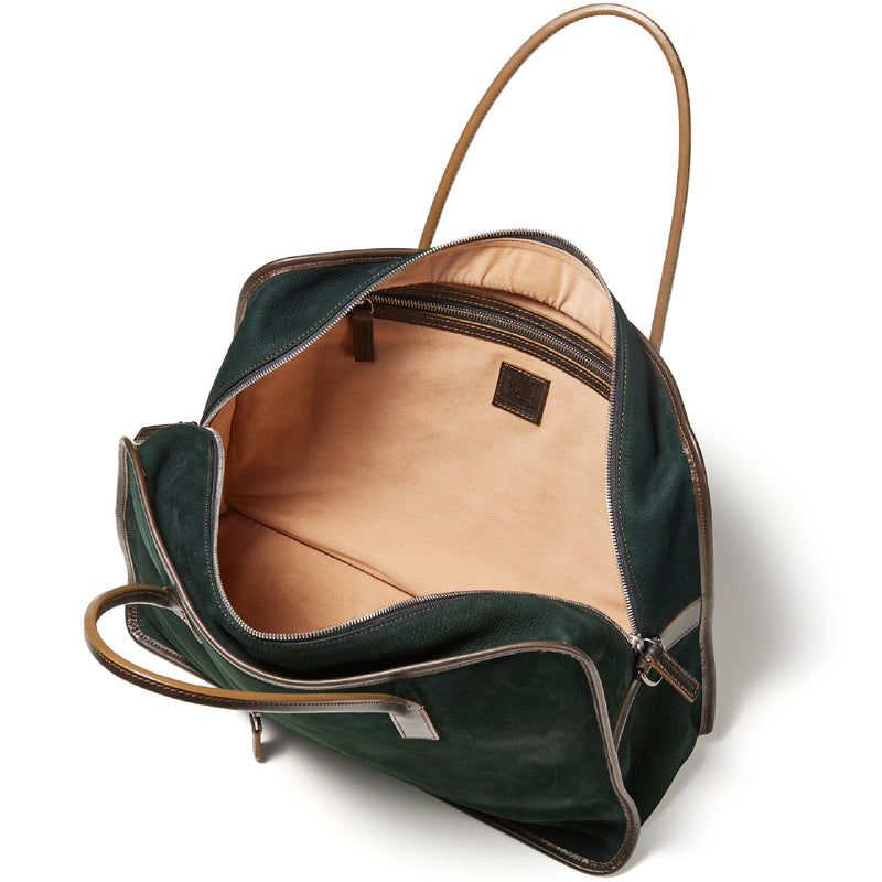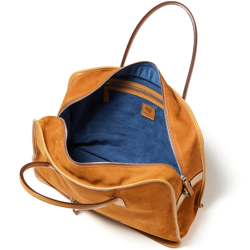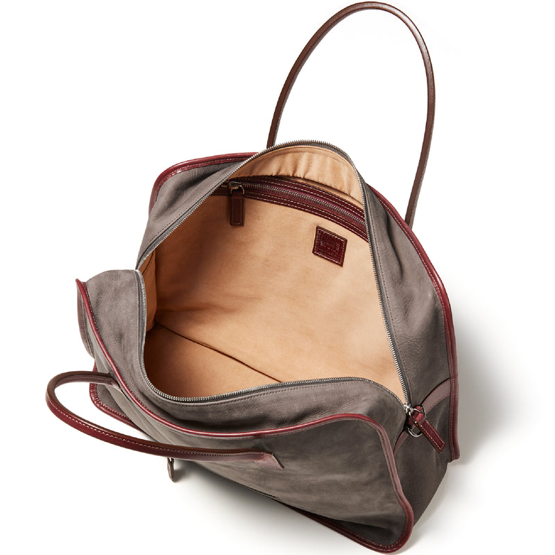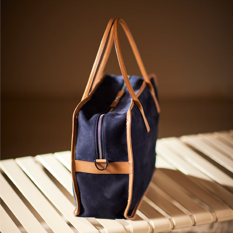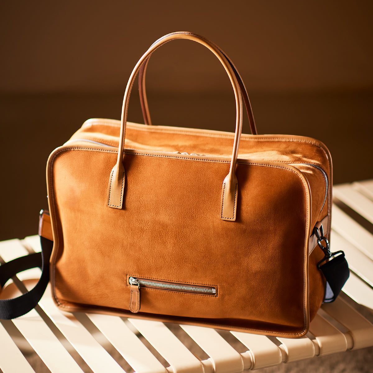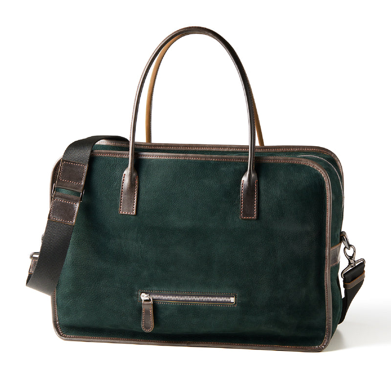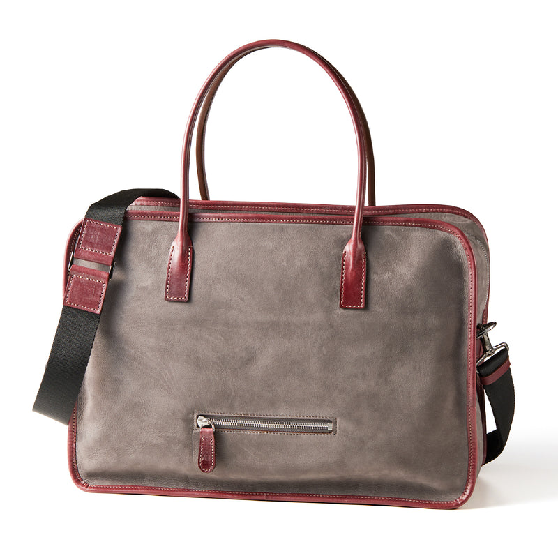 紀元前ルーツの英国産オークバークを持ち手と外枠に使用し、本体にはスペイン原皮のヌバックを採用しました。ラグジュアリーホテルのプールサイドにある、大判なタオルはいつも心地よく水気を吸収してくれます。そこからインスピレーションしたのが、このクラシカルボストンです。タオルの様に水気は吸収しませんが、質感の心地よさは別格です。| 外寸 | 縦29.5cm×横42.5cm×底厚み15cm (ファスナーポケット)縦8.5cm×横14cm |