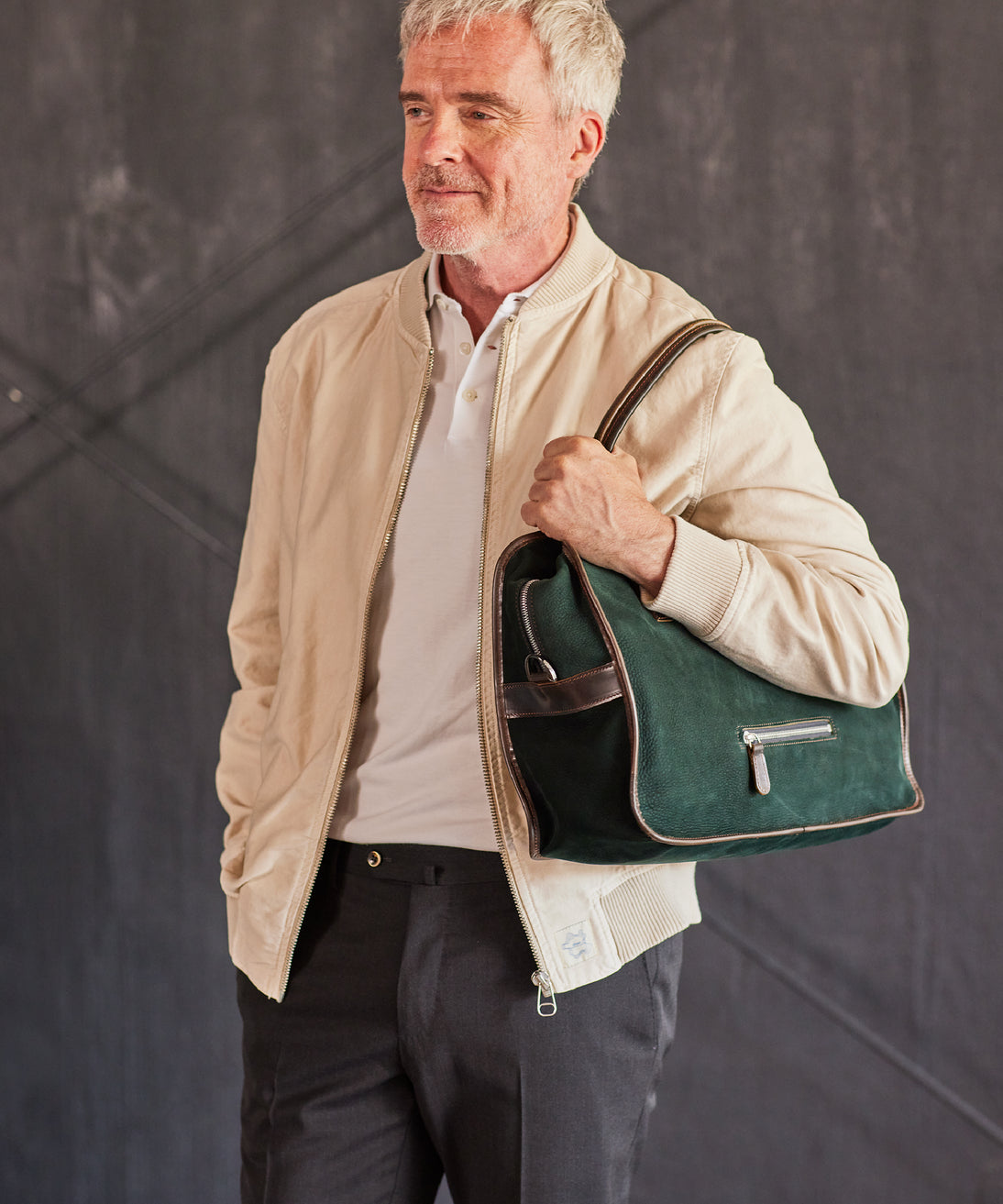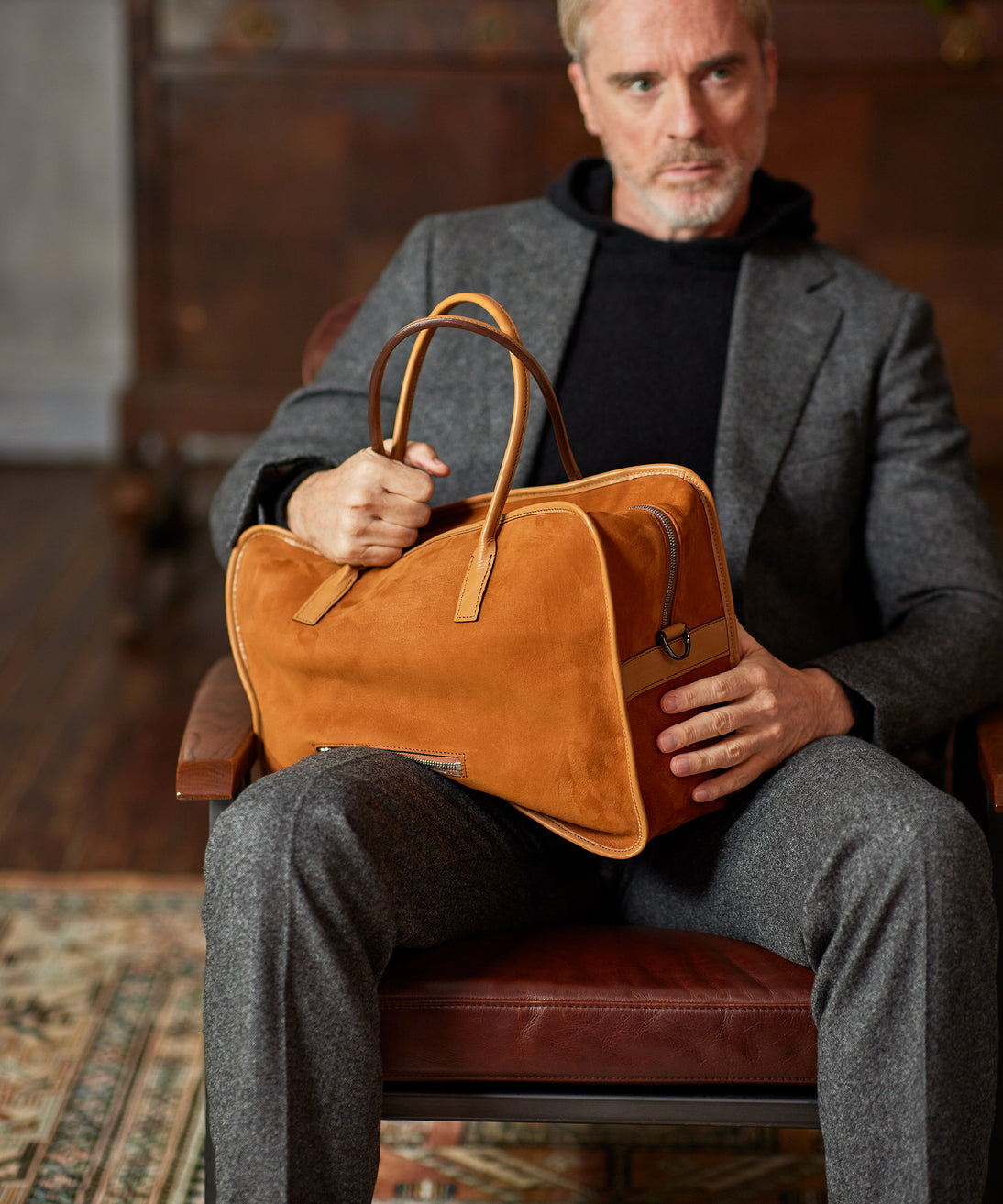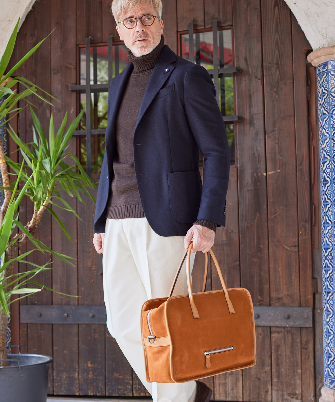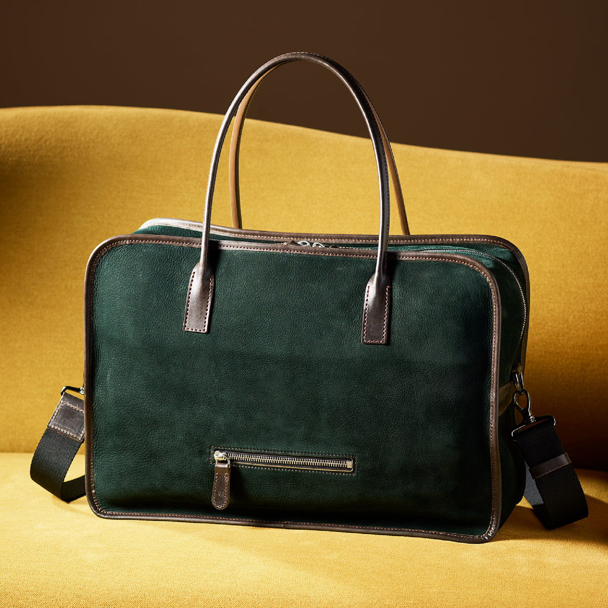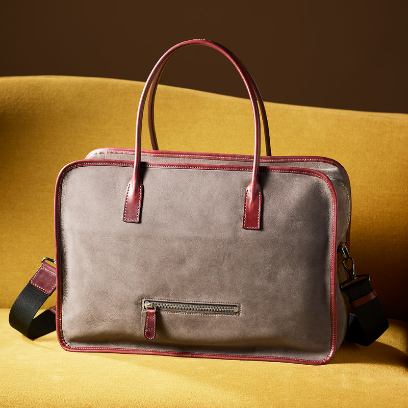 紀元前ルーツの英国産オークバークを持ち手と外枠に使用し、本体にはスペイン原皮のヌバックを採用しました。ラグジュアリーホテルのプールサイドにある、大判なタオルはいつも心地よく水気を吸収してくれます。そこからインスピレーションしたのが、このクラシカルボストンです。タオルの様に水気は吸収しませんが、質感の心地よさは別格です。| 外寸 | 縦29.5cm×横42.5cm×底厚み15cm (ファスナーポケット)縦8.5cm×横14cm |