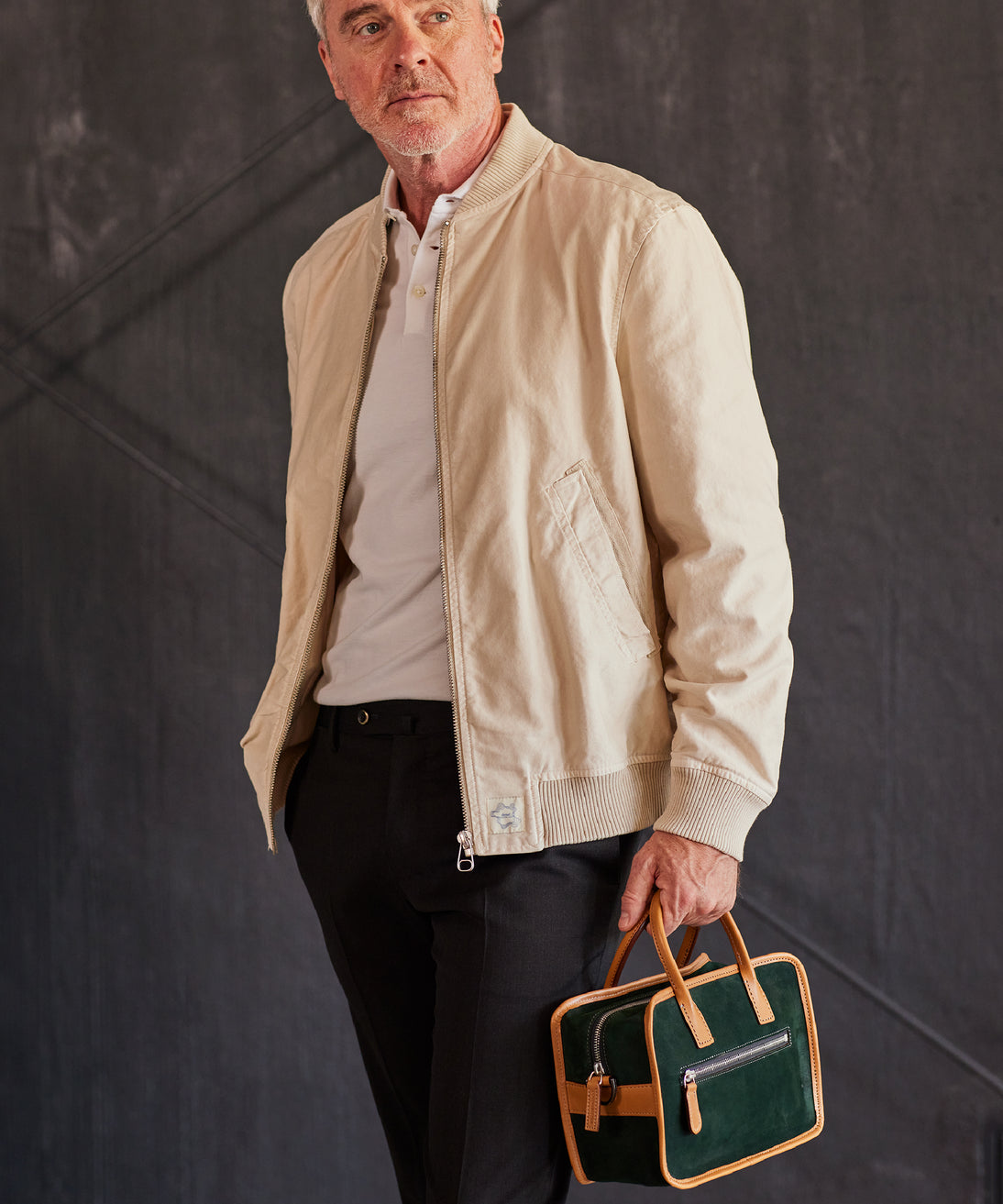 内装は上質なイタリア産コットン素材を使用しています。オールシーズン使える素材で、触り心地が良く上質。内装にはファスナーポケットを装備しており、大事な物を収納するのに便利です。