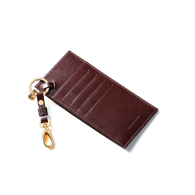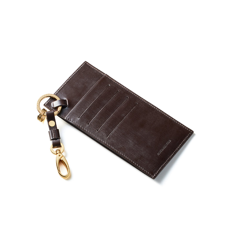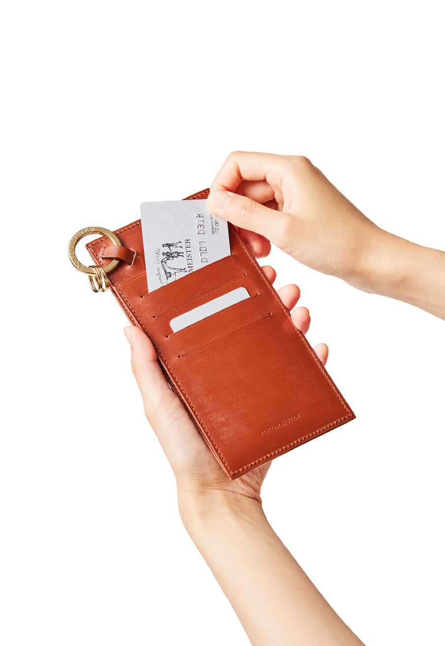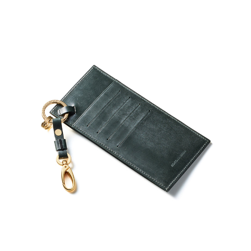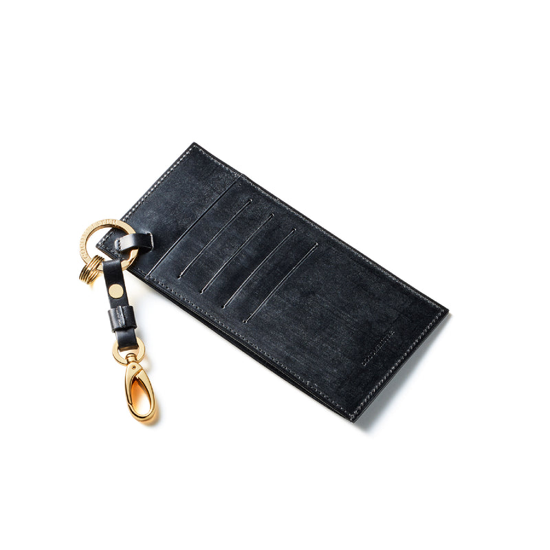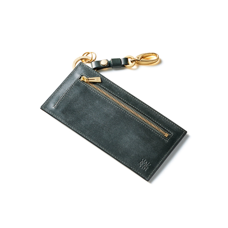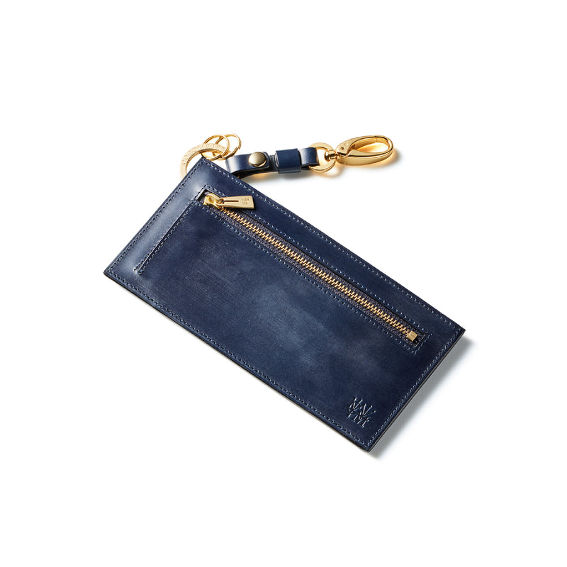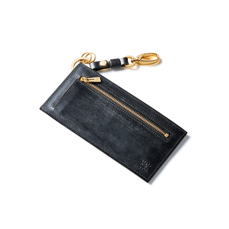 薄型のコインカードホルダーに、キーリングの要素と日本札を収納できるスペースをご用意。ナスカン付きミニベルトで鞄にも装着が可能、また、ミニベルトを本体からも取り外し可。