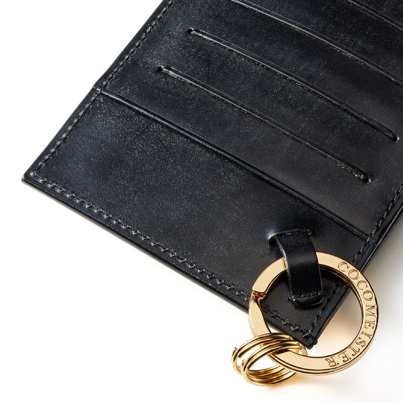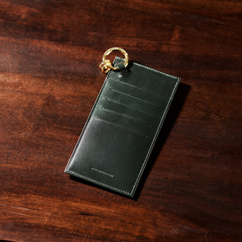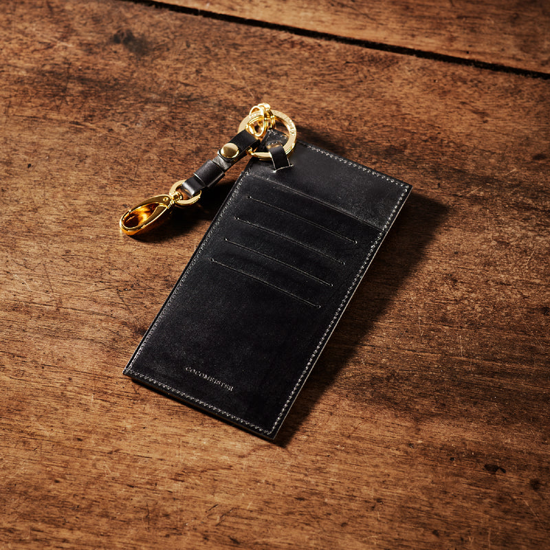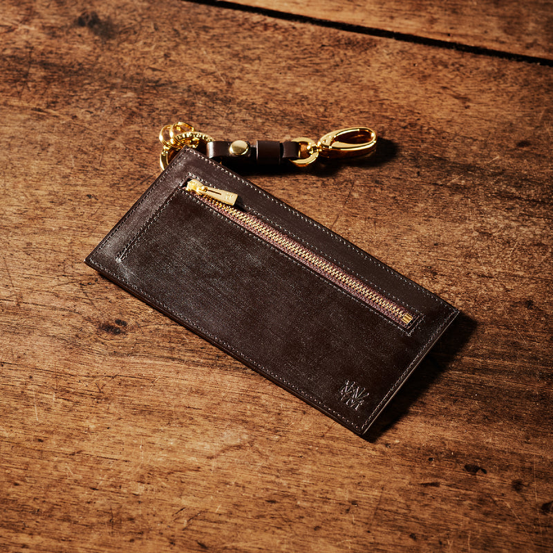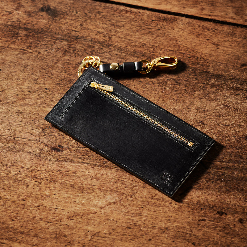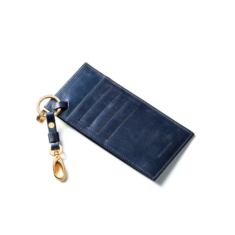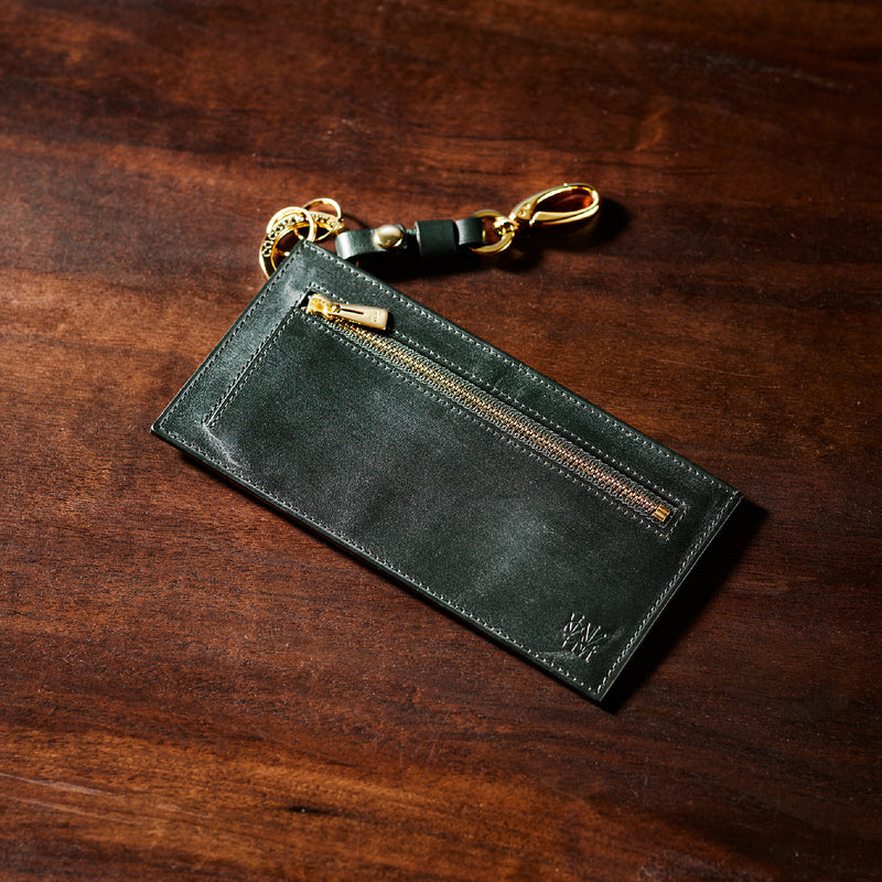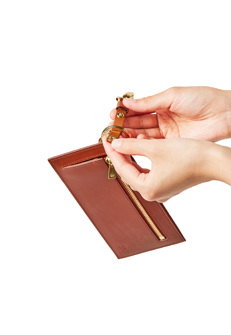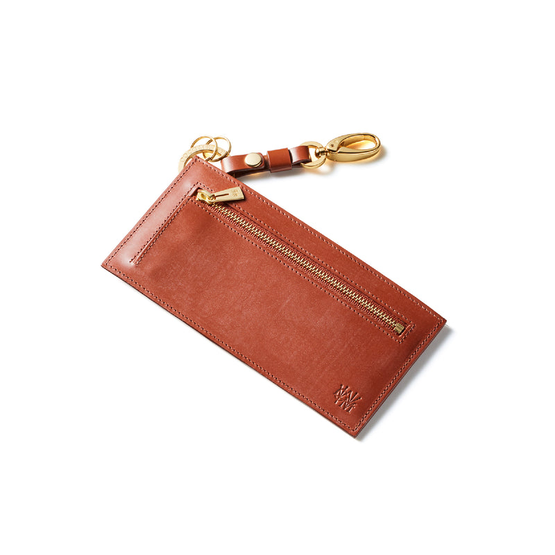 薄型のコインカードホルダーに、キーリングの要素と日本札を収納できるスペースをご用意。ナスカン付きミニベルトで鞄にも装着が可能、また、ミニベルトを本体からも取り外し可。