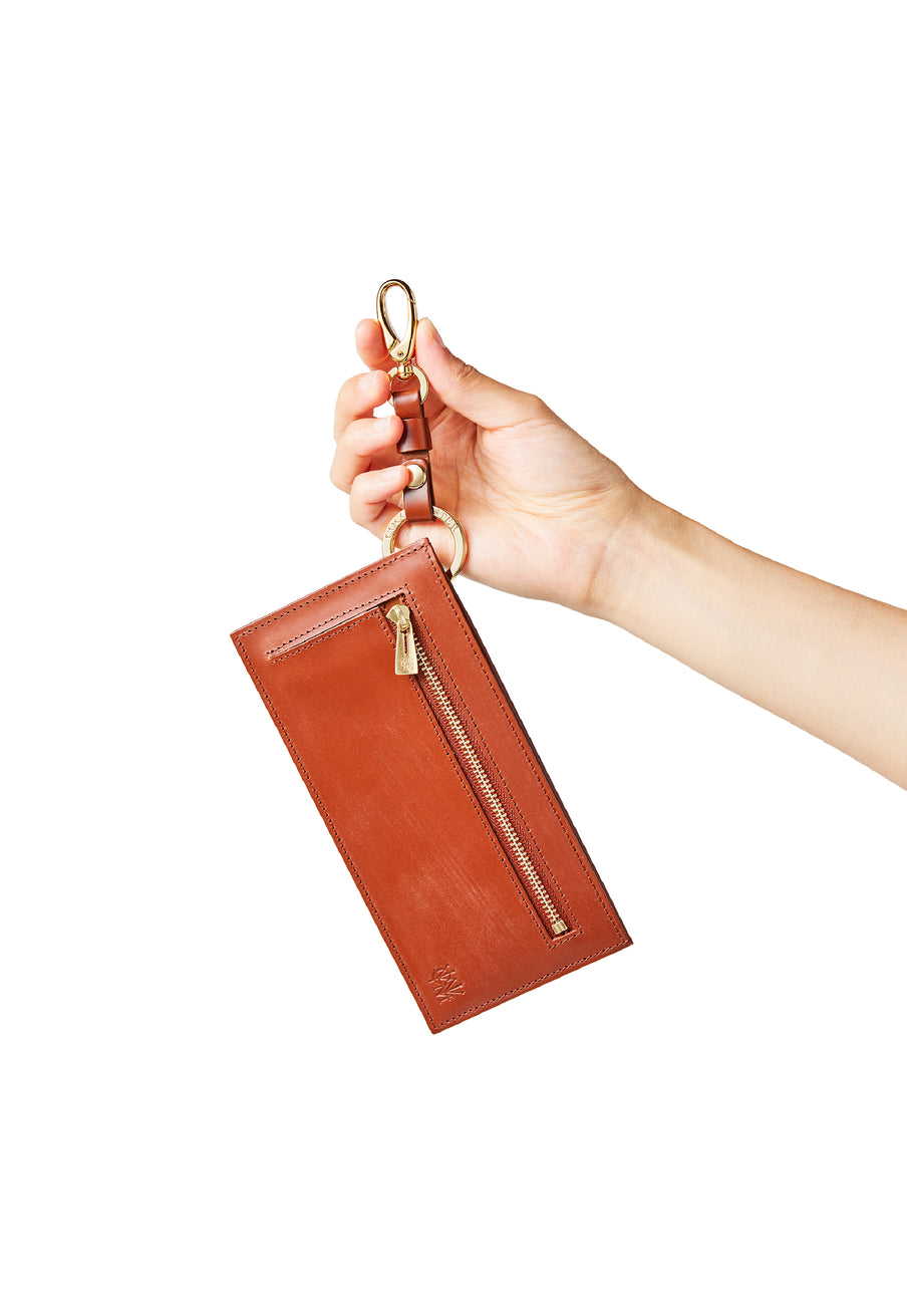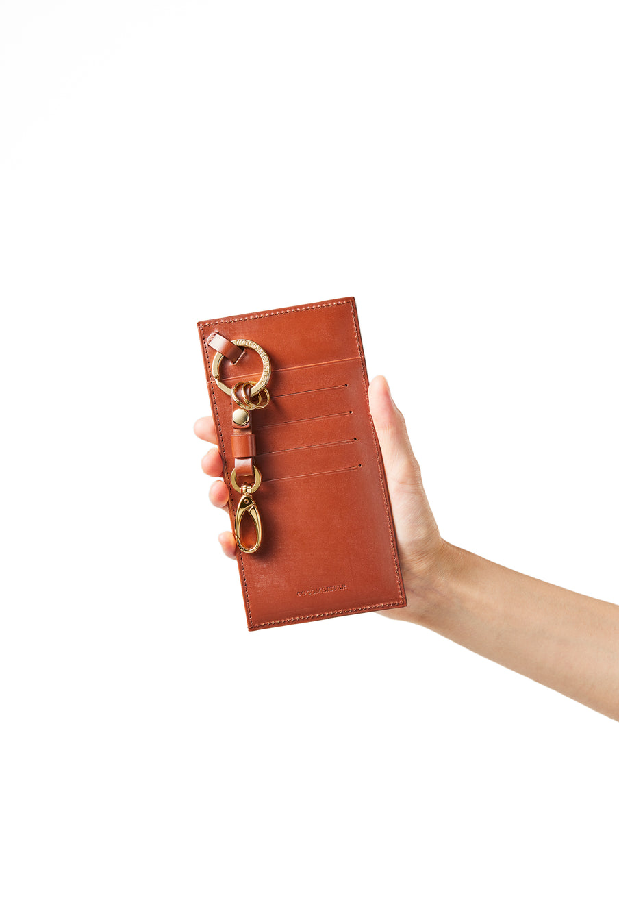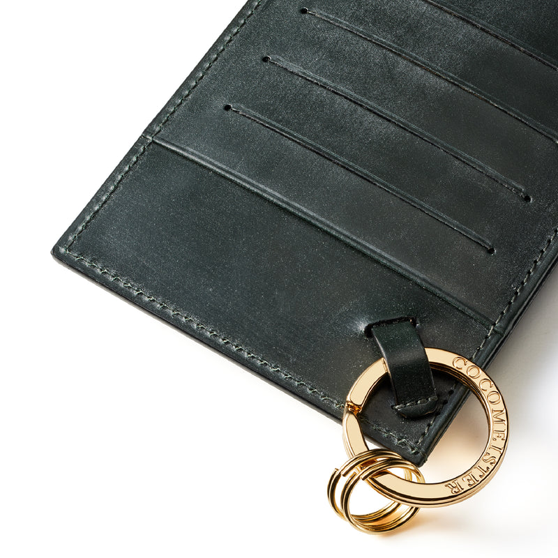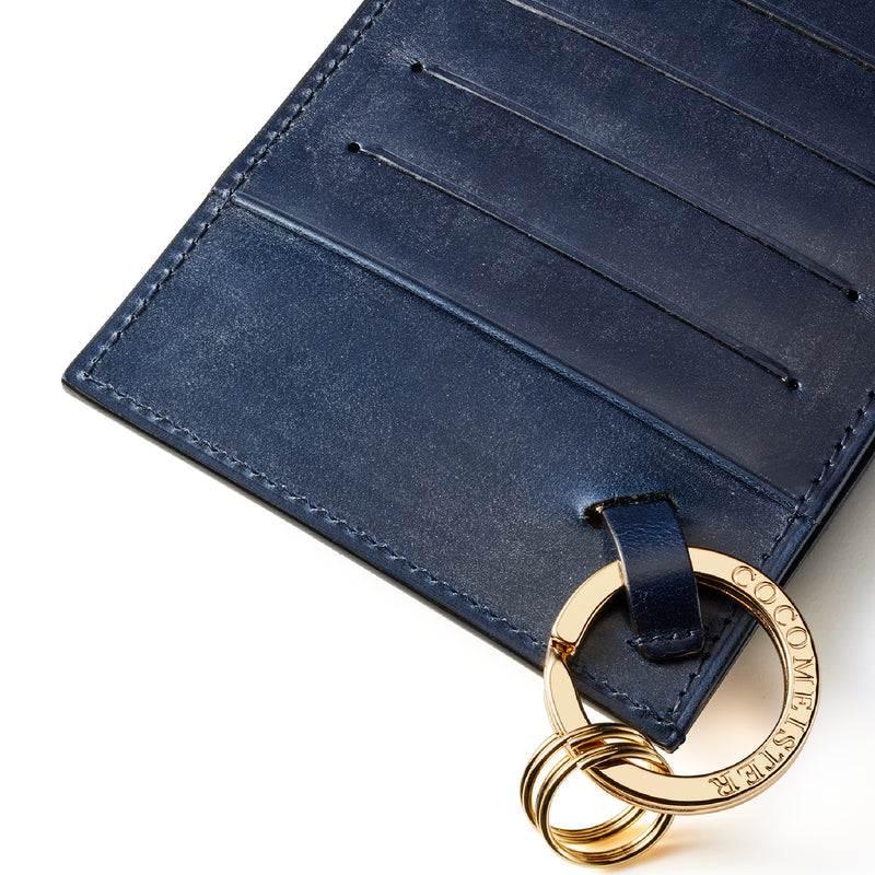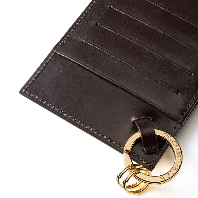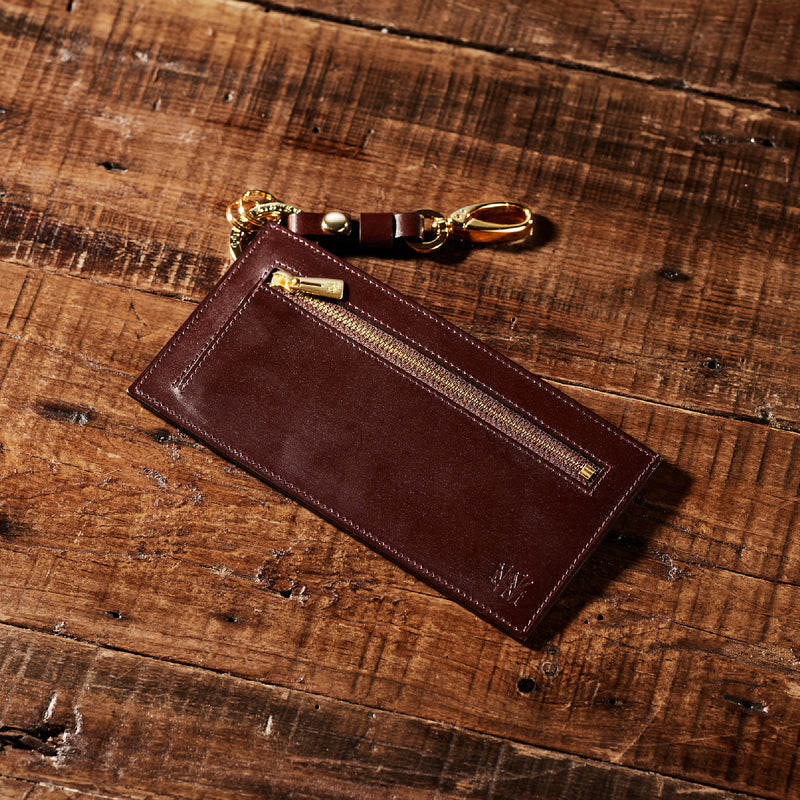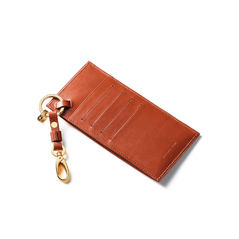 薄型のコインカードホルダーに、キーリングの要素と日本札を収納できるスペースをご用意。ナスカン付きミニベルトで鞄にも装着が可能、また、ミニベルトを本体からも取り外し可。