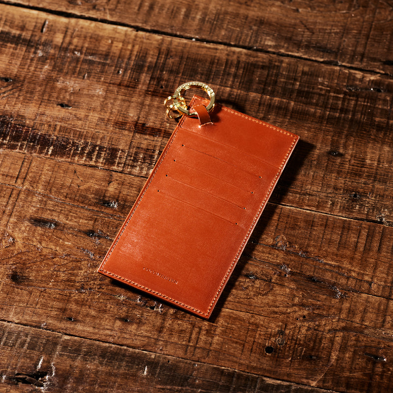 英国文化の真髄を追求したシリーズ、ジョージブライドル。イギリス産の最高級馬具革を全面に使用、高い技術力を誇る日本の熟練職人の技により、トラディショナルで芸術的な作品を作り上げます。表裏ブライドルレザーが美しく洗練されています。コインカードホルダーを基本とし、日本札を収納できるホルダーです。鞄などに装着出来るようナスカン付きミニベルトを付属、シンプルながらしっかり感が魅力です。| 外寸 | 縦9.0×横17.5×厚さ0.7cm 本体リング径3.2cm ナスカン付きミニベルト全長9.3cm |
