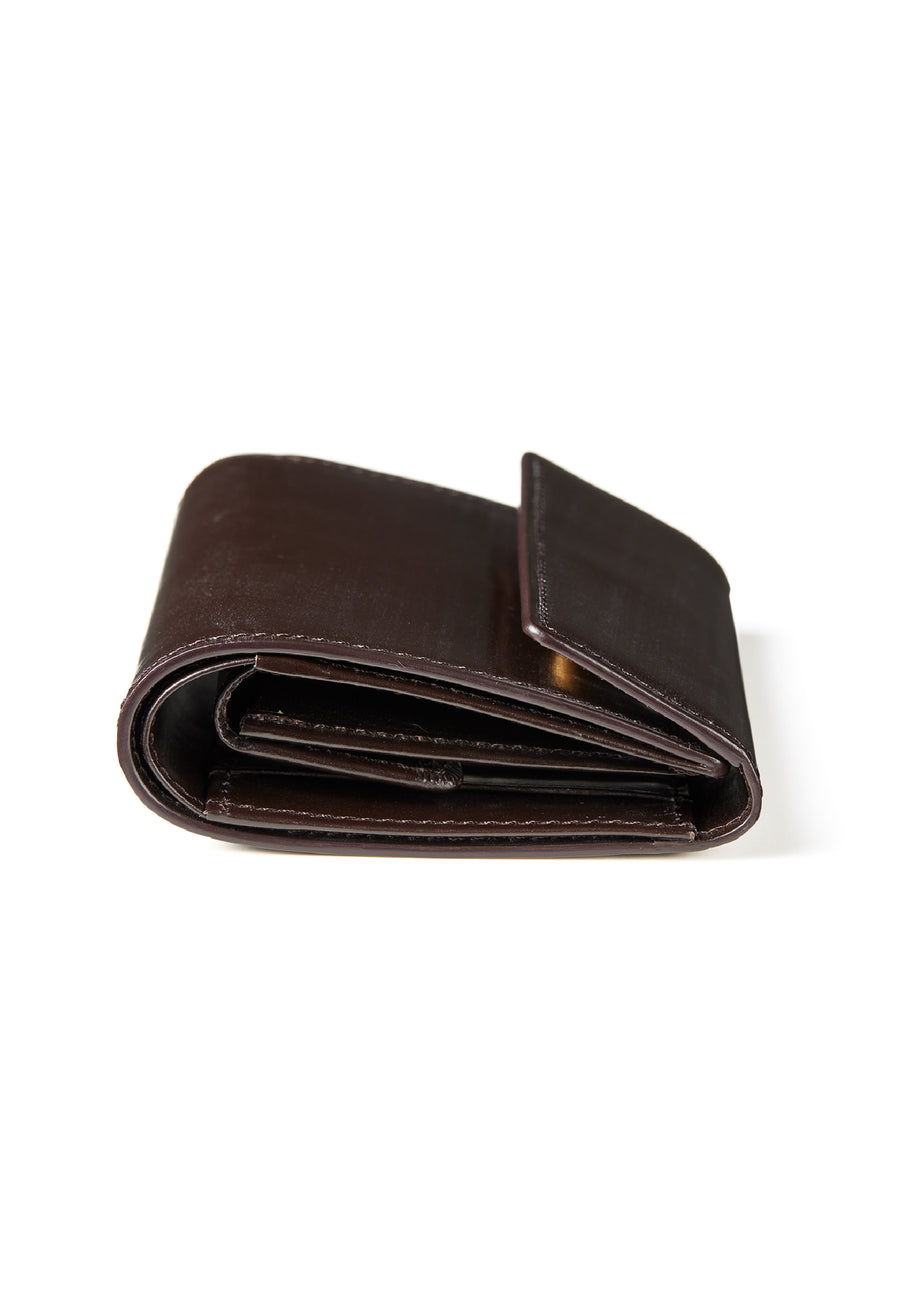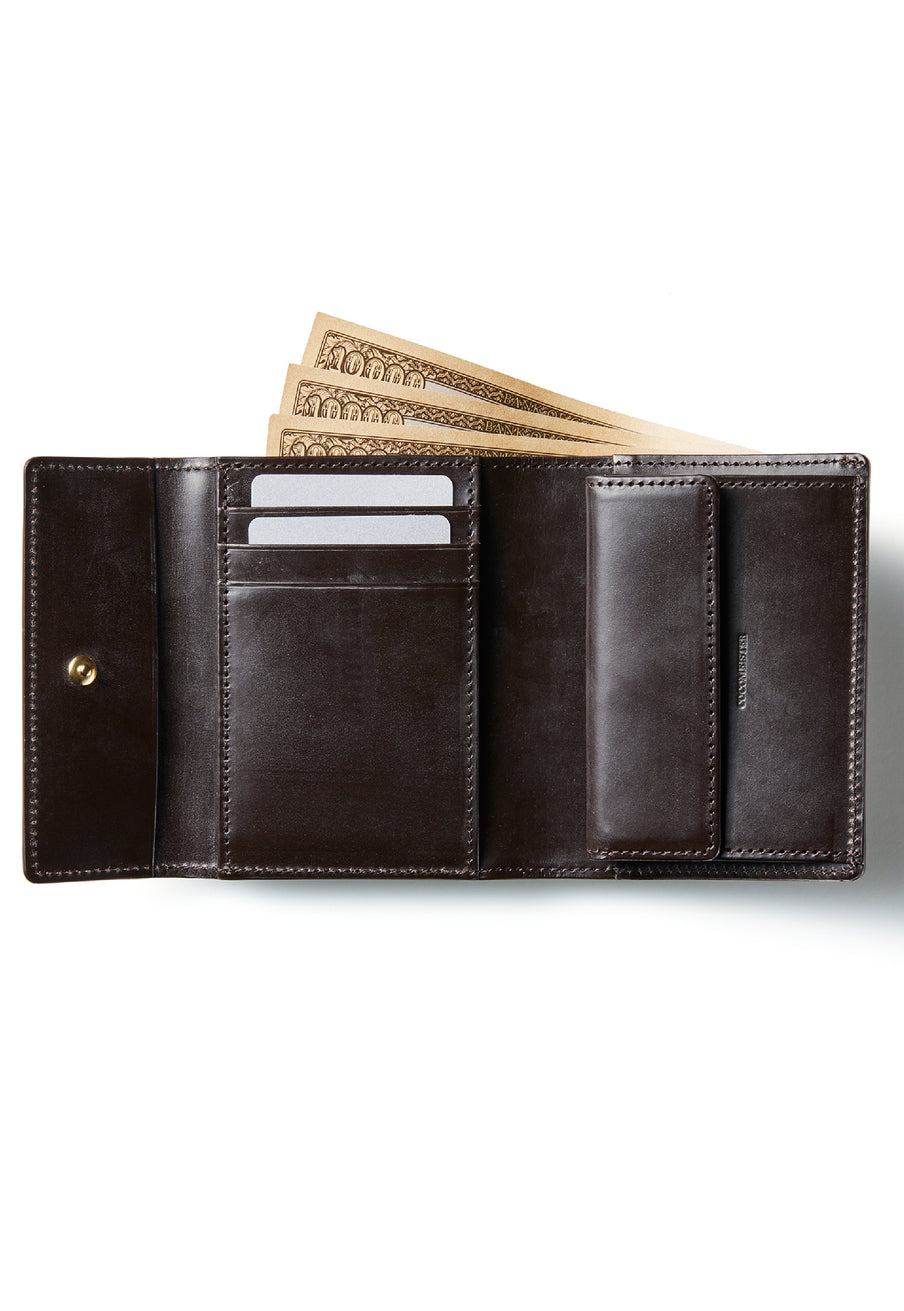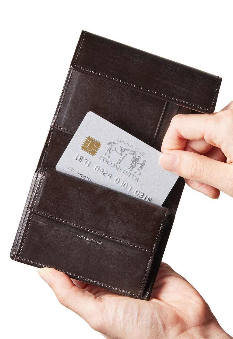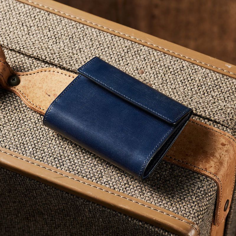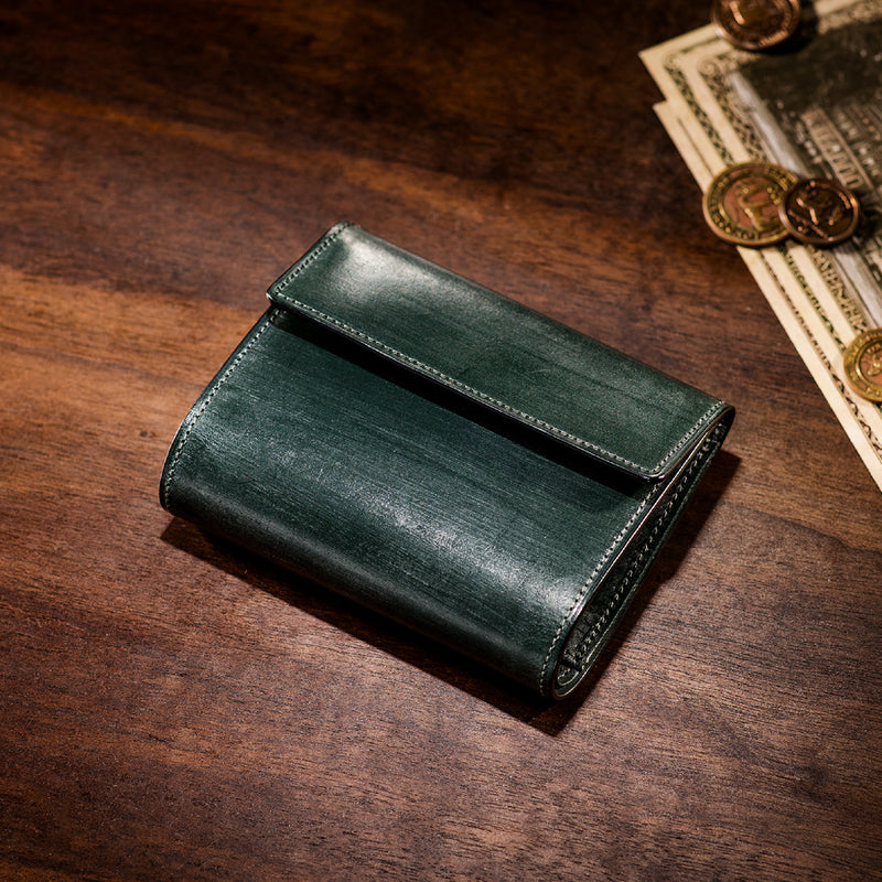 英国文化の真髄を追求したシリーズ、ジョージブライドル。イギリス産の最高級馬具革を全面に使用、高い技術力を誇る日本の熟練職人の技により、トラディショナルで芸術的な作品を作り上げます。表裏ブライドルレザーが美しく洗練されています。折りたたみタイプの3つ折り財布、手帳の様なお洒落なフォルムが魅力。手に収まるデザインで、置いても絵になる格好良さがあります。| 外寸 | 縦9.4×横11.4×厚さ3cm |