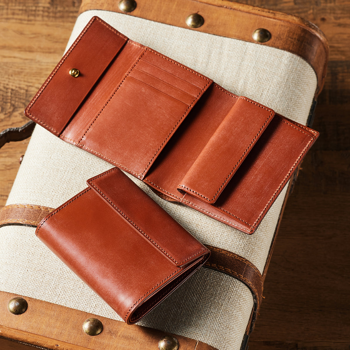 正方形に近いコンパクトなサイズが魅力です。ズボンの後ろポケットにも入るサイズ感、使い勝手が良く、ビジネスから旅行まで幅広く使えます。