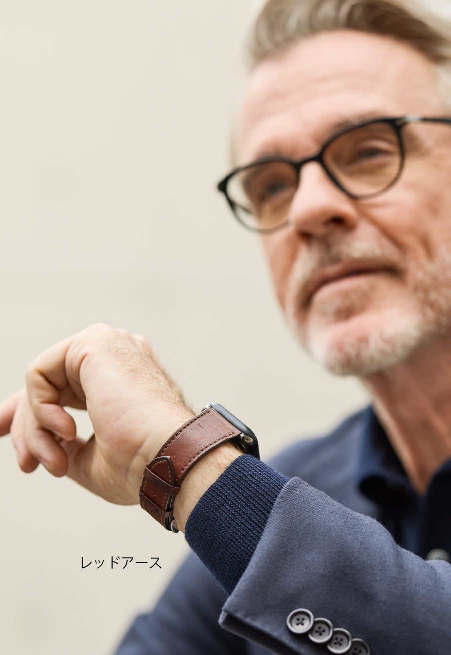 Apple Watch 用レザーバンド。手首に自然に馴染み、快適な装着感でお使いいただけます。