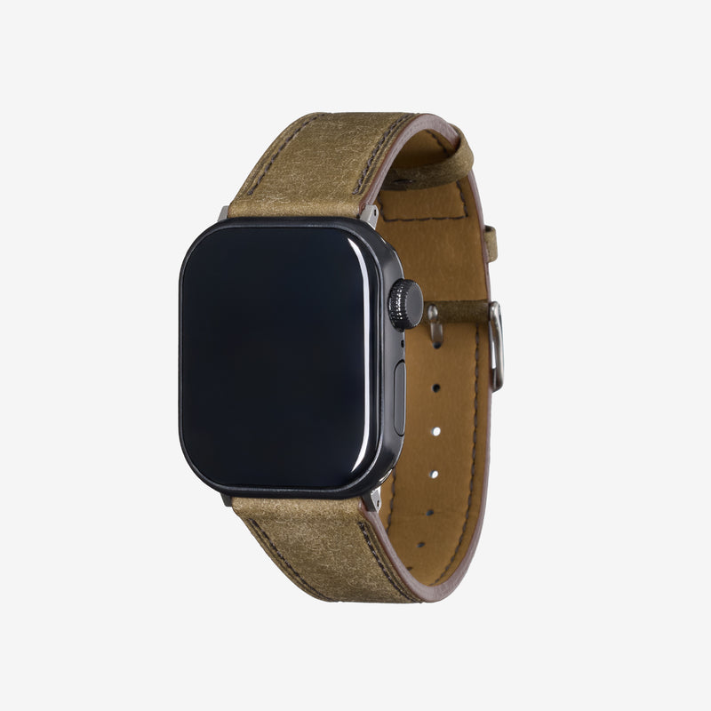 金の採掘をコンセプトにしたゴールドマイニングシリーズ。表面の起毛加工が特徴の最高級プエブロレザーを使用し、砂金が眠る大地をイメージしました。日本で古くから腕時計のバンドを仕立ててきた職人がApple Watch専用レザーバンドを仕立てることで、上品さと重厚感を兼ね備えた腕元を演出します。| ケースサイズ | L:44 / 45 / 46 / 49 mm M:38 / 40 / 41 / 42 / 44 / 45 / 46 / 49 mm |