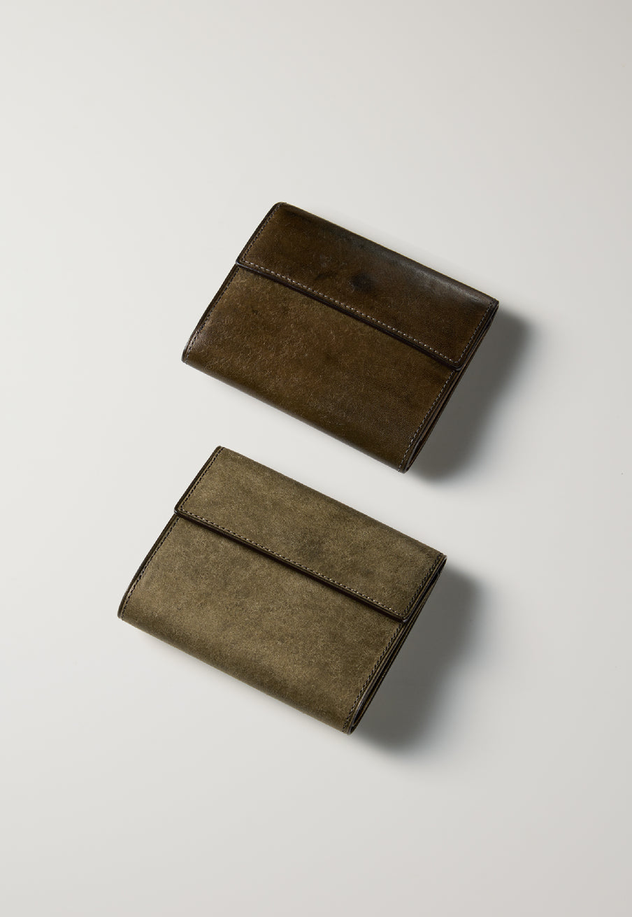 プエブロレザー特有の起毛が、砂金を含む土のようなマットな表情を描き出します。