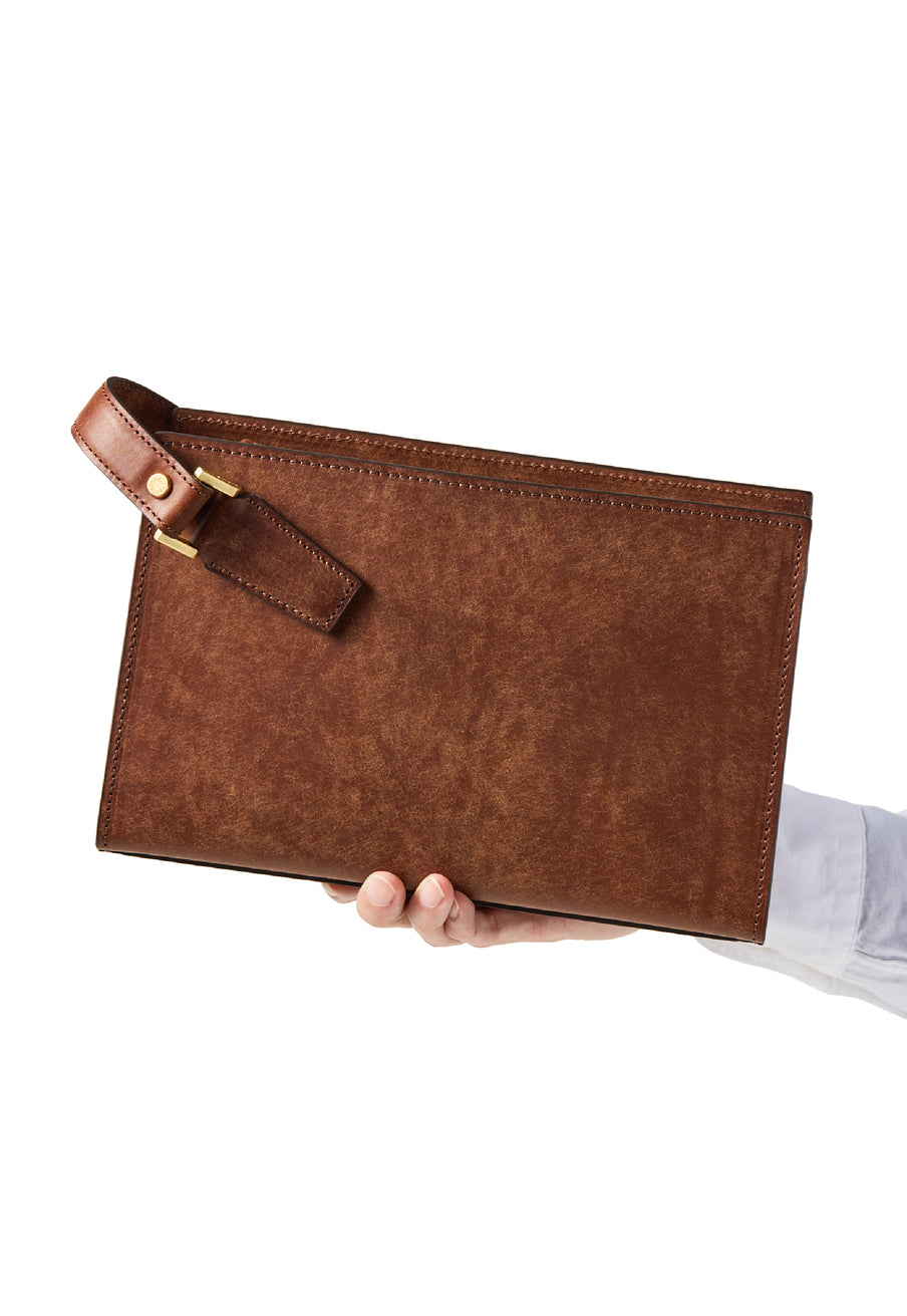イタリア最高級のプエブロレザーを贅沢に使用したクラシカルなセカンドバッグ。古き良きオーソドックスなデザインをプエブロレザーで仕立てました。プエブロレザーで仕立てながらも、堅牢かつ上品な風合いにデザイン。作り手にはブライドルレザー等のダレスバッグを仕立てる熟練職人が携わり、特別な存在感をお楽しみいただけます。