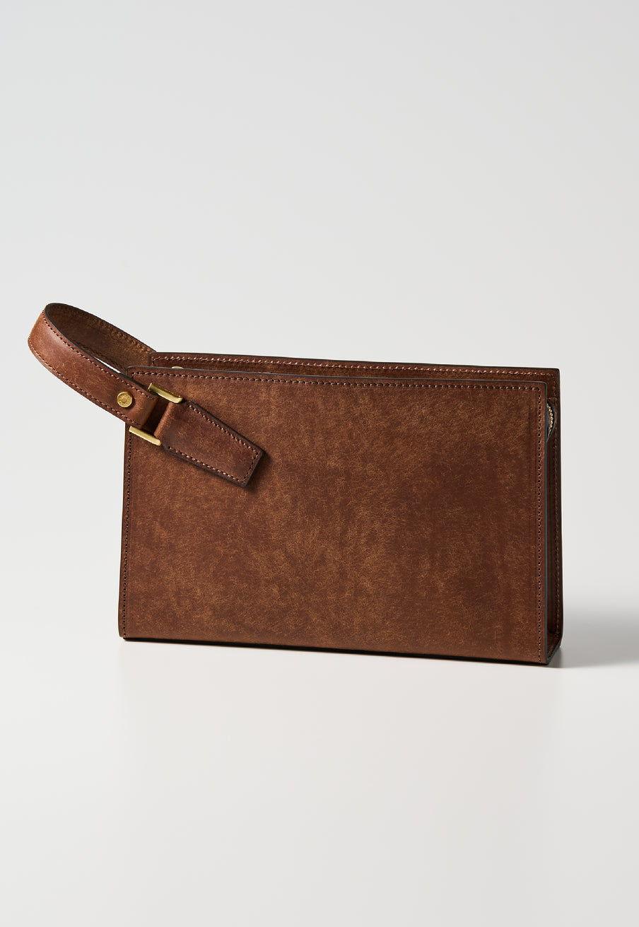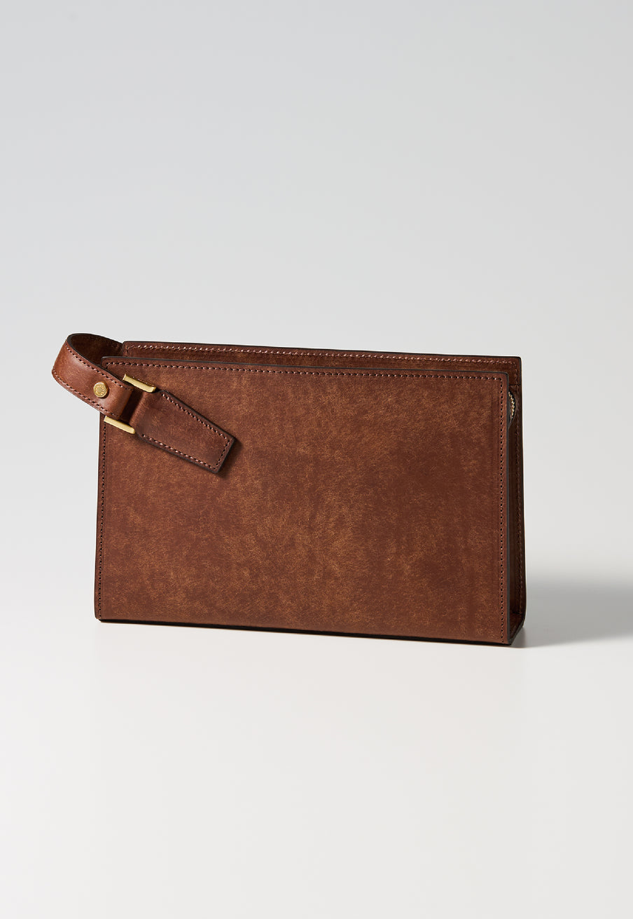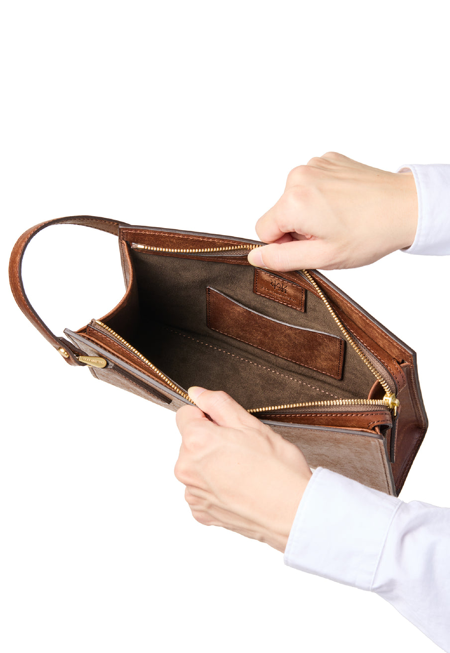 クラシカルな佇まいのセカンドバッグ。 表面にはプエブロレザー特有の起毛が広がり、使い込むほどに艶へと変化していきます。