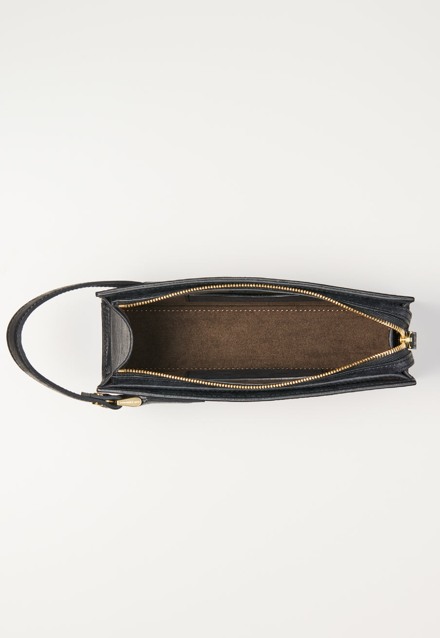 手首を通せるハンドストラップは、持ち運びの安定感を補助する役割。 移動の中でも、自然に手に馴染むバランスに仕上げています。