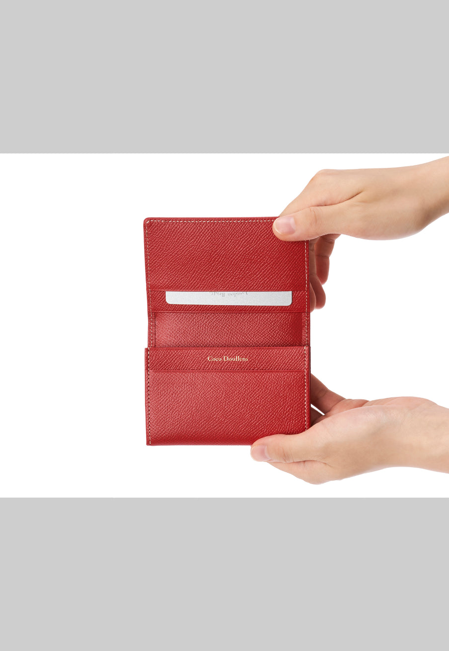 イリーナシリーズは、ドイツの老舗タンナーが手掛けるノブレッサカーフを使用した上質なコレクションです。なめらかでしっとりとした質感は触れた瞬間に心地よく、落ち着いた艶が女性らしい品を添えてくれます。表裏に同じ革を贅沢に使用しているため統一感があり、クラシカルなフォルムが美しく映える名刺入れです。名刺をたっぷり収納でき、中身が見やすいのも特徴。日常のビジネスシーンで品よく活躍してくれる上質なアイテムです。| 外寸 | 縦7.5cm × 横11cm × 厚さ2.3cm |