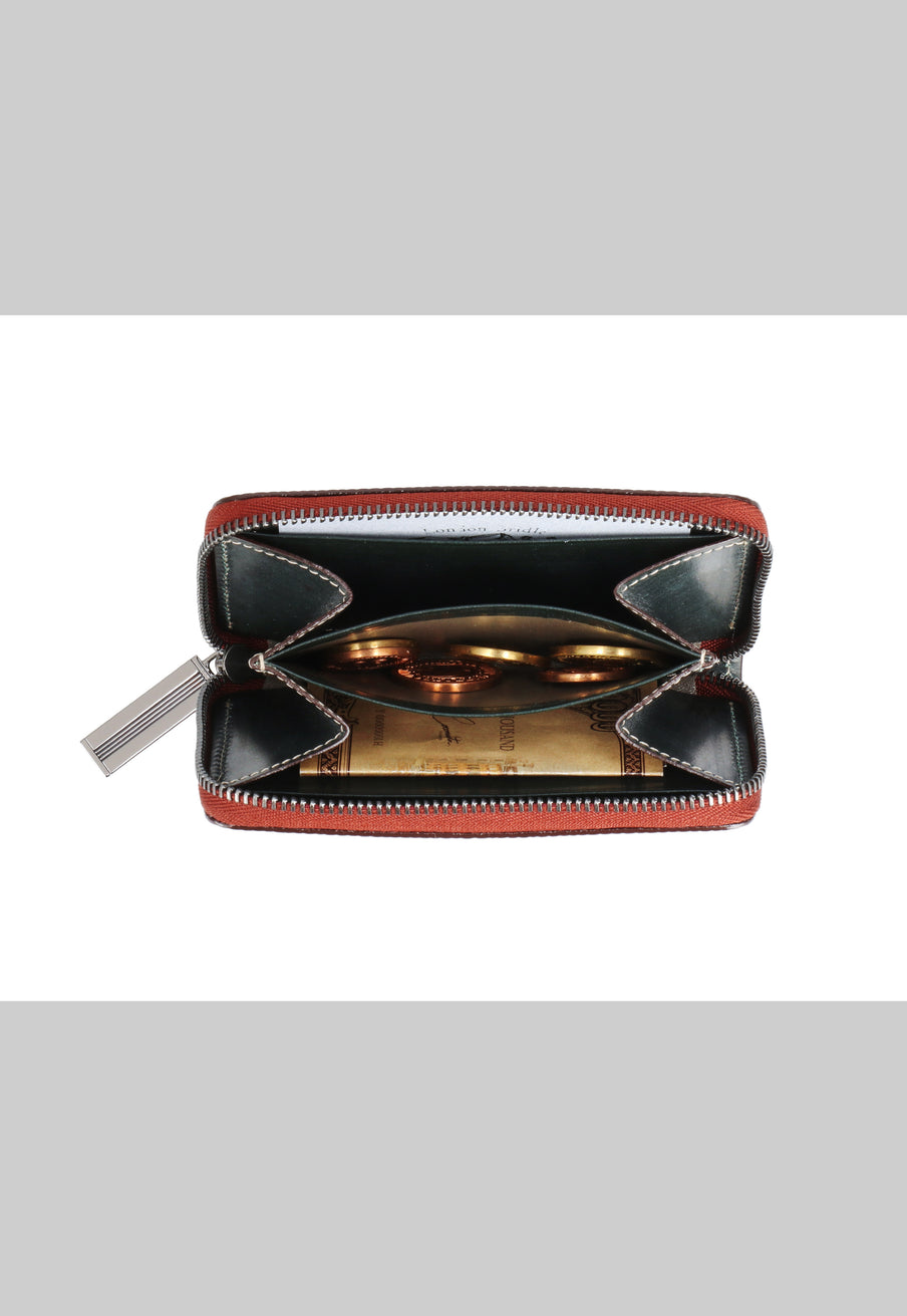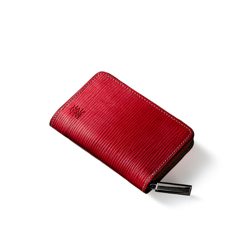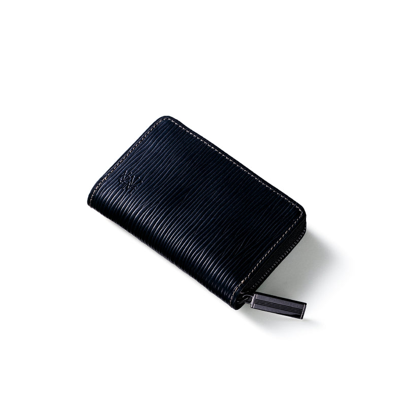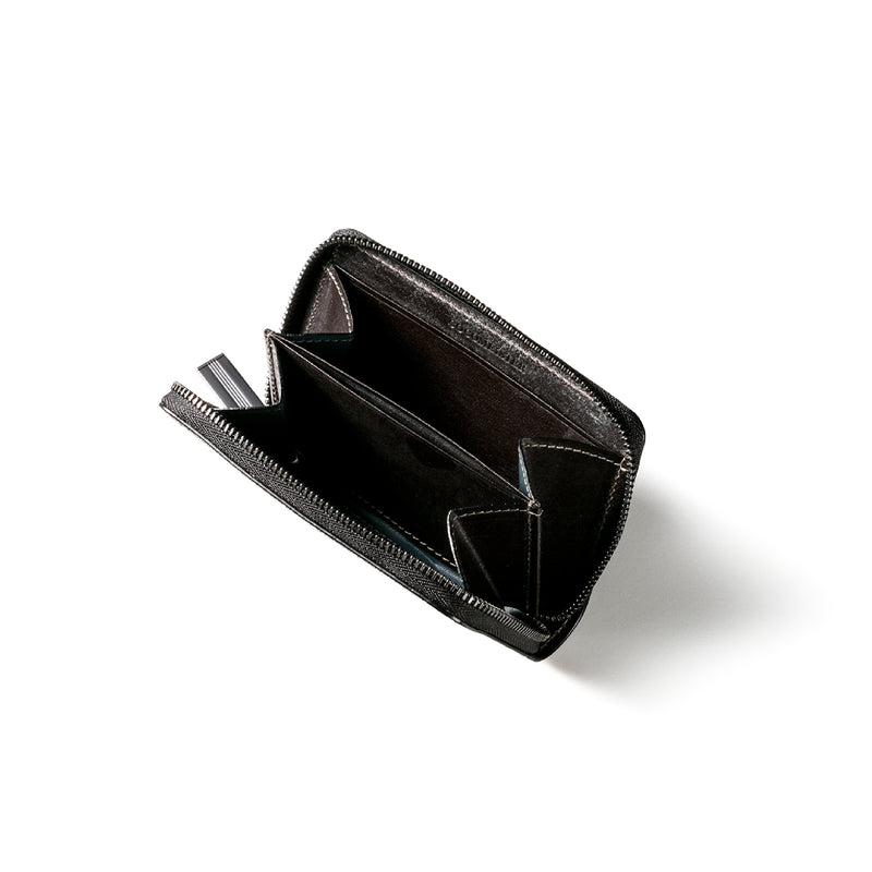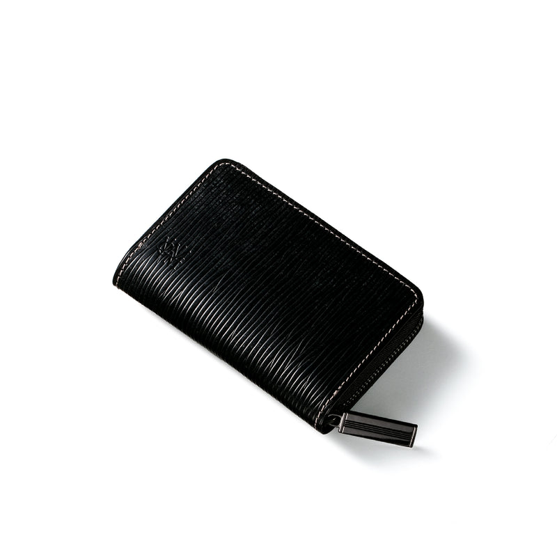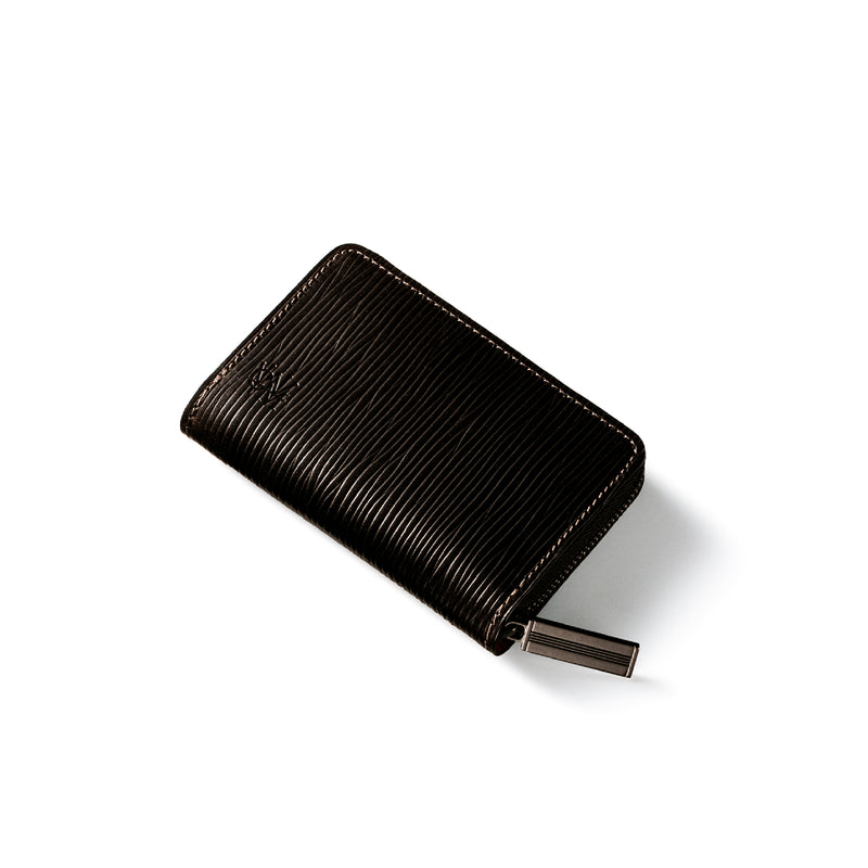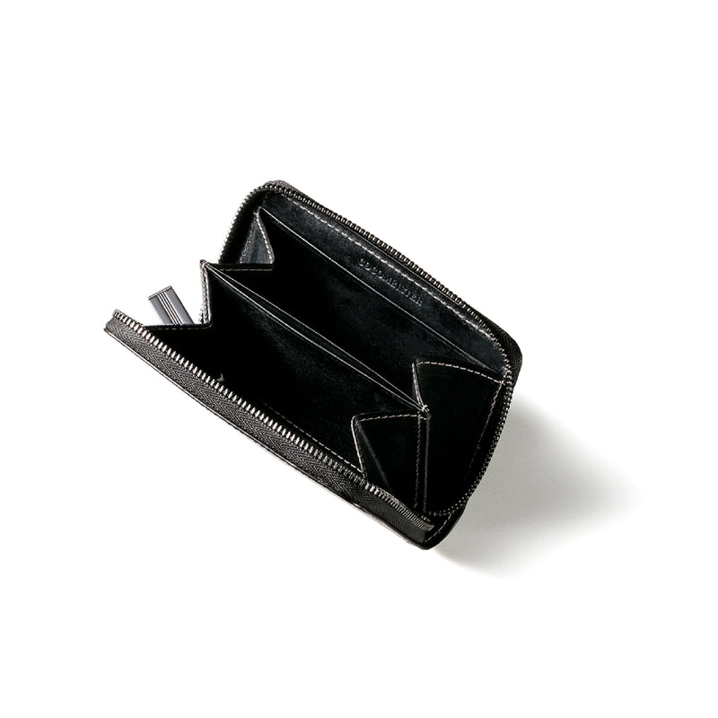 海賊からインスピレーションしたジョリーロジャーコレクション。海賊の人生観をイメージ、英国馬具革に圧倒的な圧力と熱量でプレスオンした皮革が、情熱と重厚さを醸し出しています。ラウンドジップ長財布を小さくしたコインパースです。ラウンドジップと同じ製法で作る、小さいながらも手の込んだ作りが魅力です。車移動にも最適な財布です。| 外寸 | 縦7.6×横11.4×厚さ1.8cm |