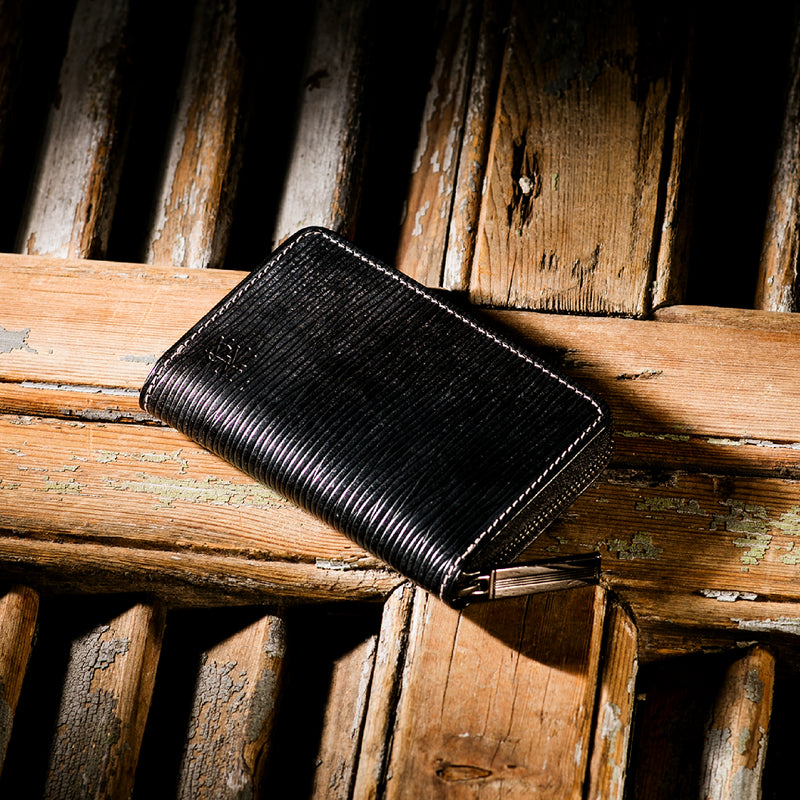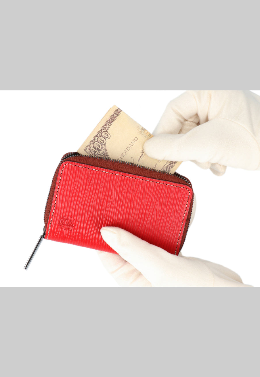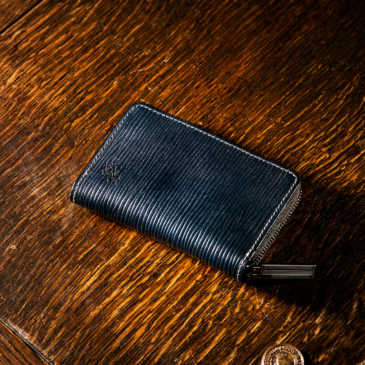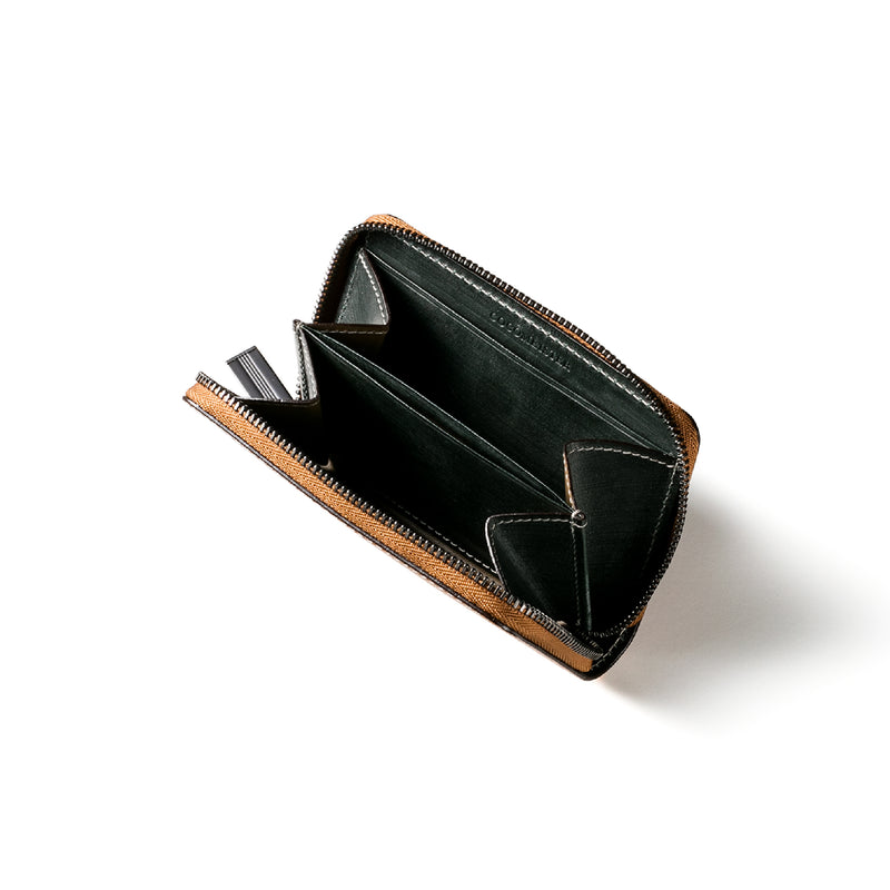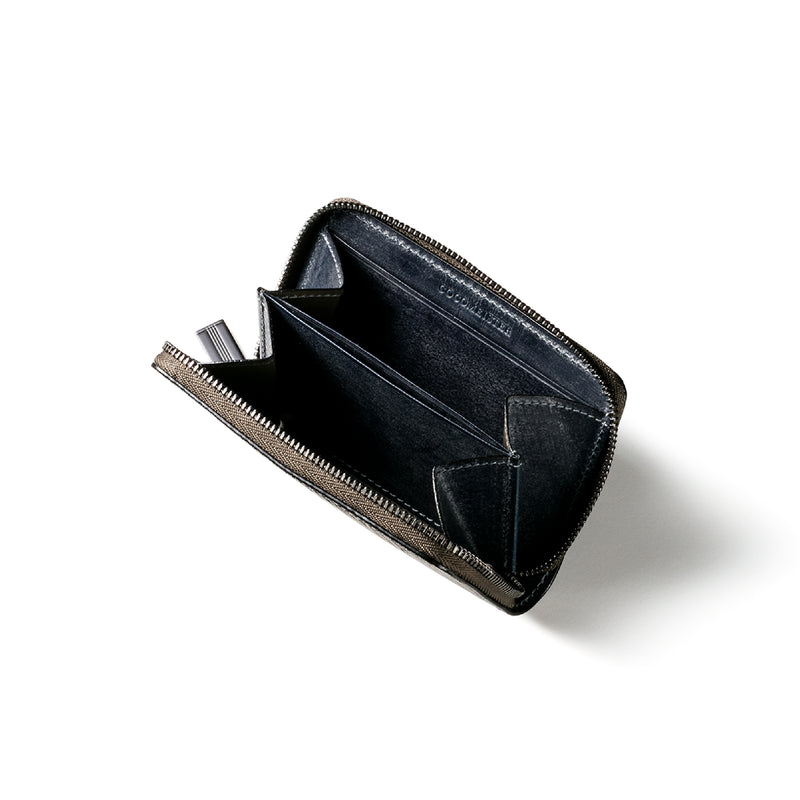 海賊からインスピレーションしたジョリーロジャーコレクション。海賊の人生観をイメージ、英国馬具革に圧倒的な圧力と熱量でプレスオンした皮革が、情熱と重厚さを醸し出しています。ラウンドジップ長財布を小さくしたコインパースです。ラウンドジップと同じ製法で作る、小さいながらも手の込んだ作りが魅力です。車移動にも最適な財布です。| 外寸 | 縦7.6×横11.4×厚さ1.8cm |