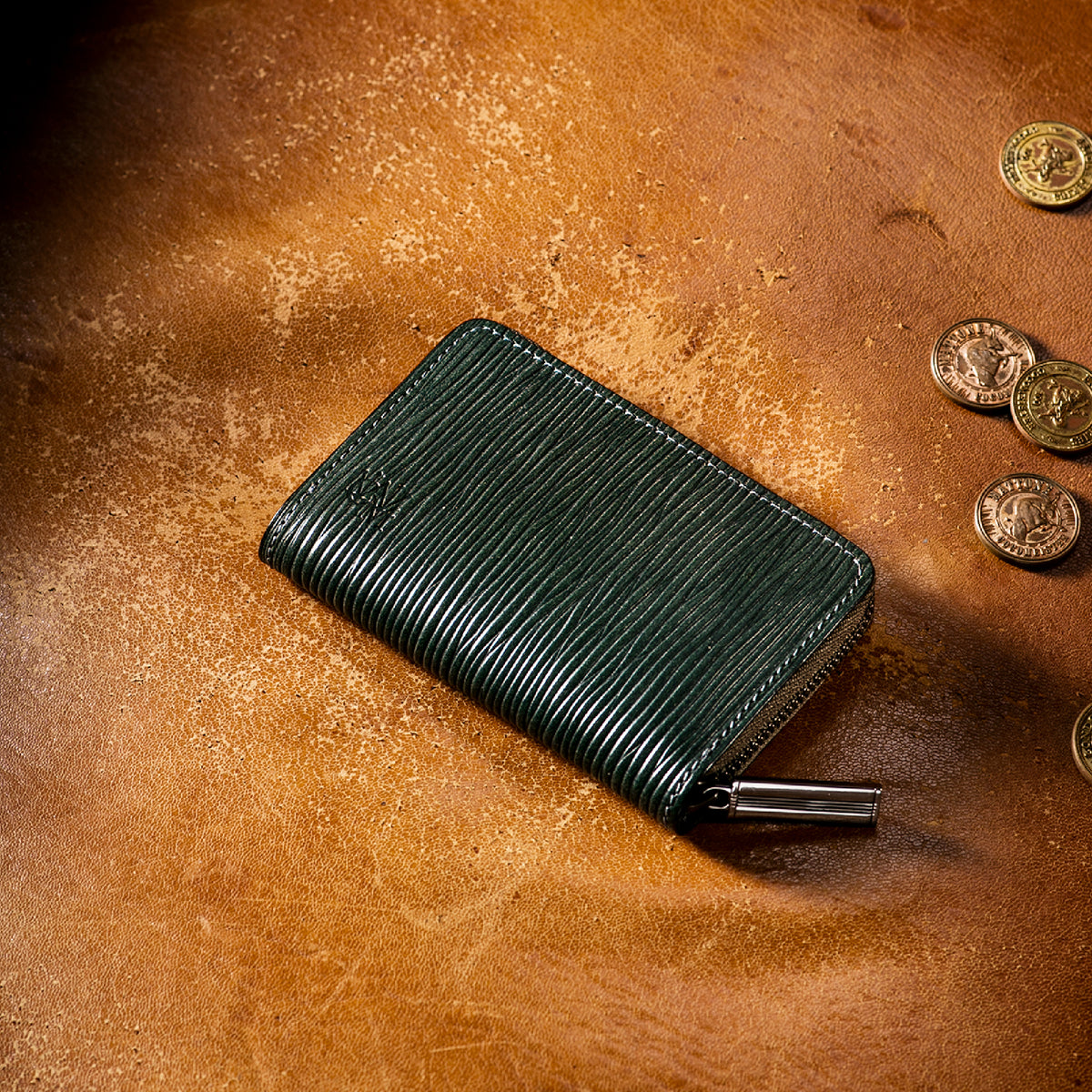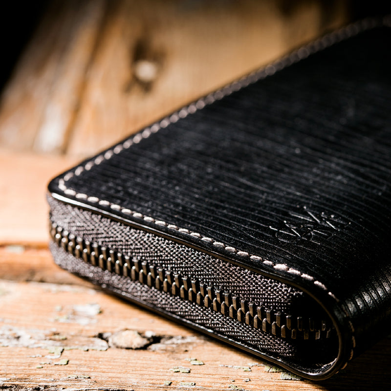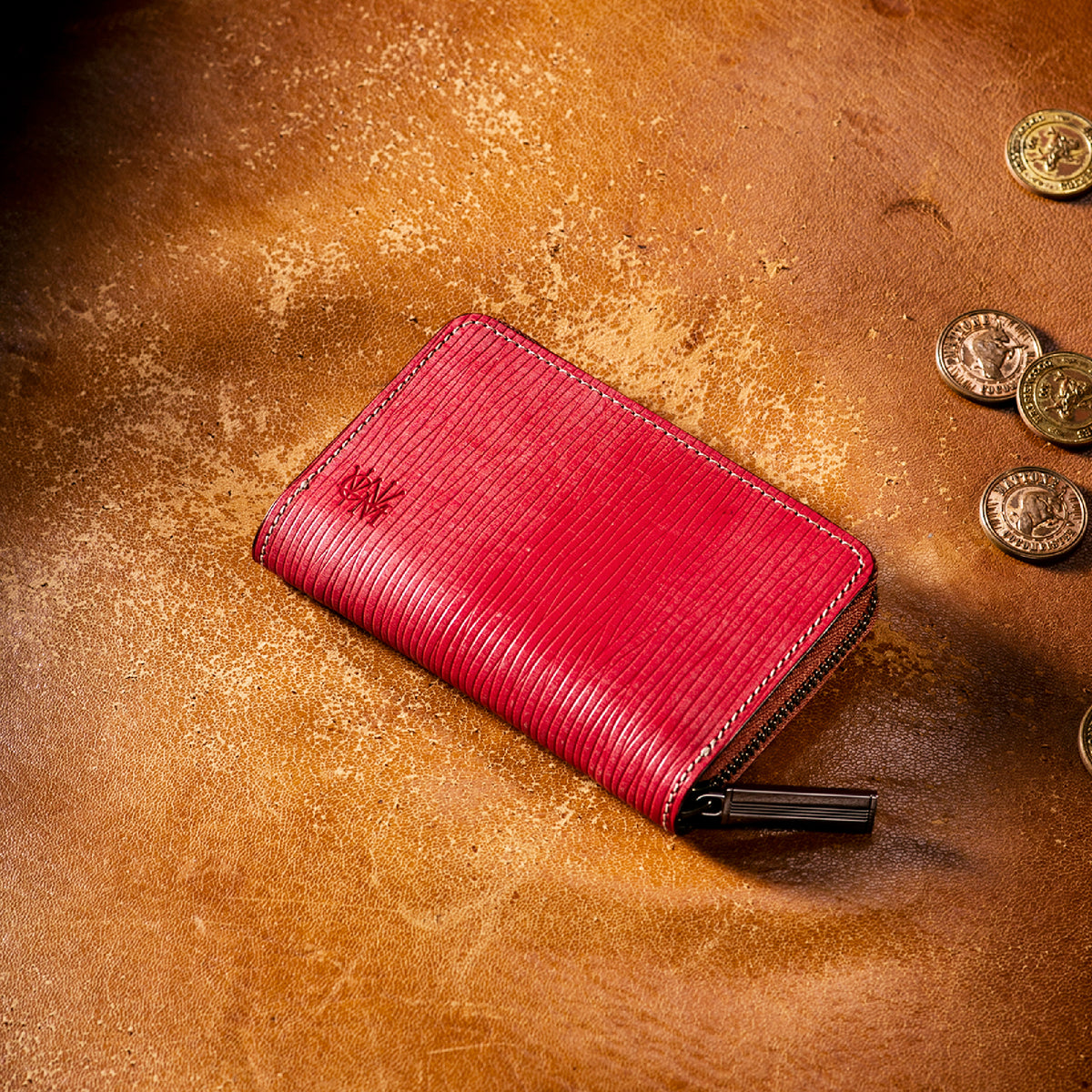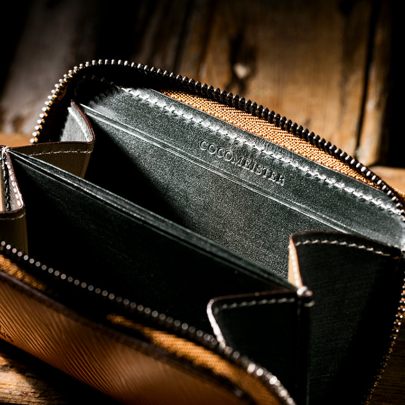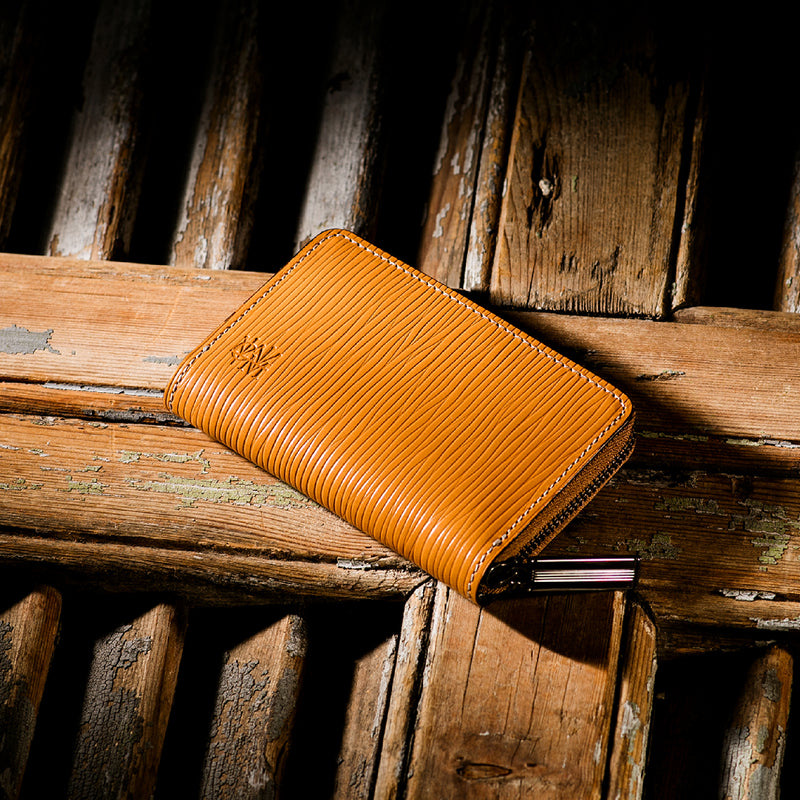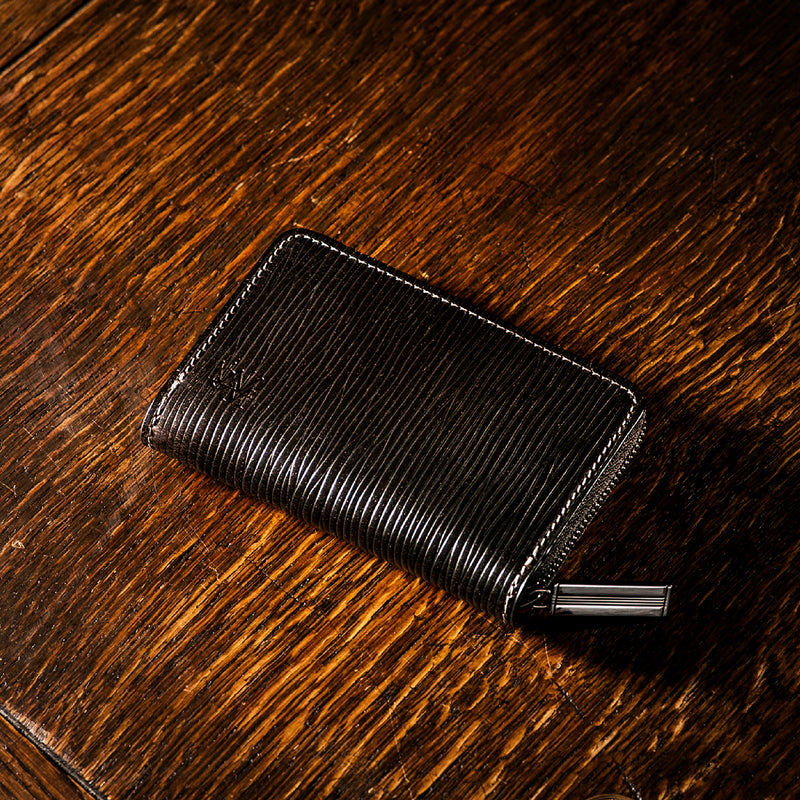 海賊からインスピレーションしたジョリーロジャーコレクション。海賊の人生観をイメージ、英国馬具革に圧倒的な圧力と熱量でプレスオンした皮革が、情熱と重厚さを醸し出しています。ラウンドジップ長財布を小さくしたコインパースです。ラウンドジップと同じ製法で作る、小さいながらも手の込んだ作りが魅力です。車移動にも最適な財布です。| 外寸 | 縦7.6×横11.4×厚さ1.8cm |
