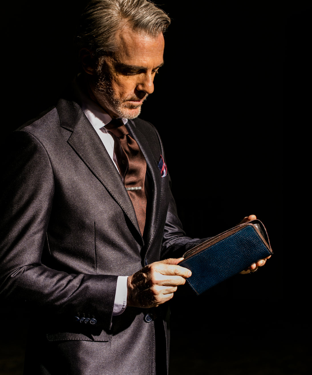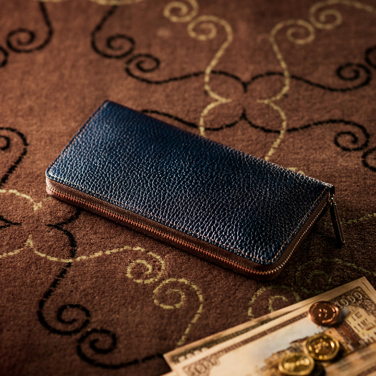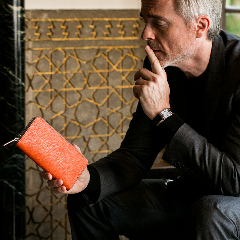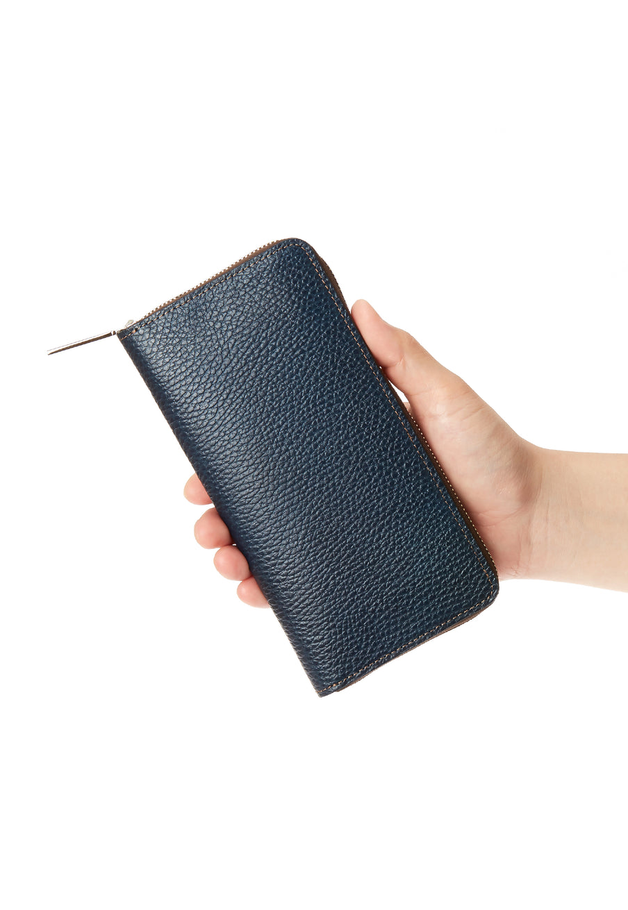 手に持っても様になる重厚なフォルムがこのラウンドジップ長財布の人気の秘訣です。手に持って歩いてもお洒落、鞄に入れても格好よく手に馴染む革の質感もお洒落です。