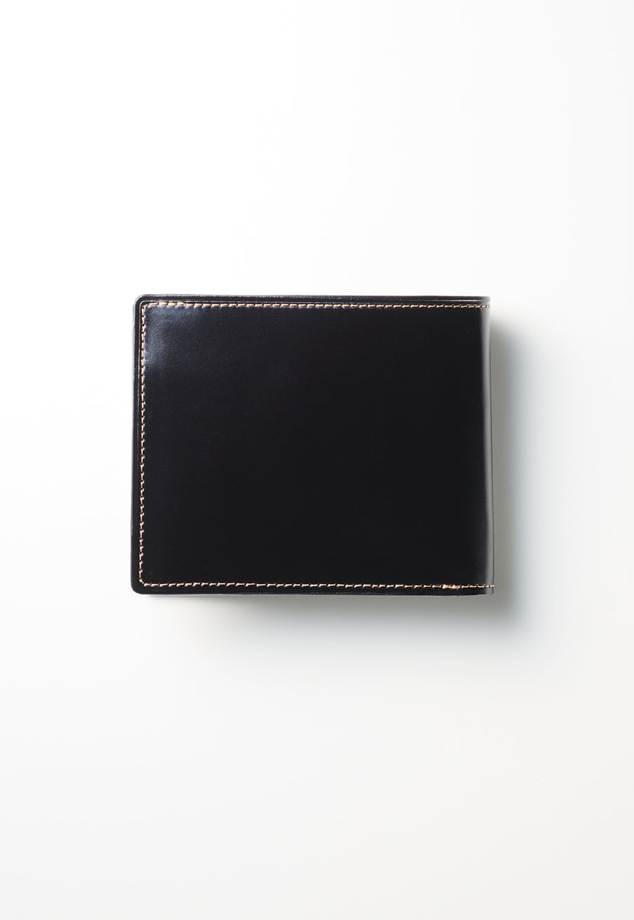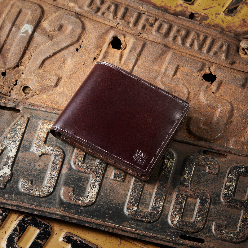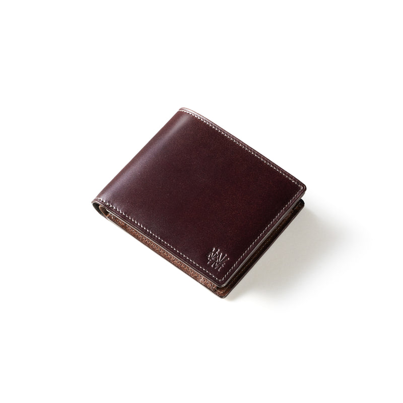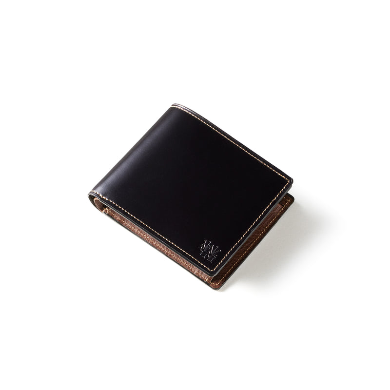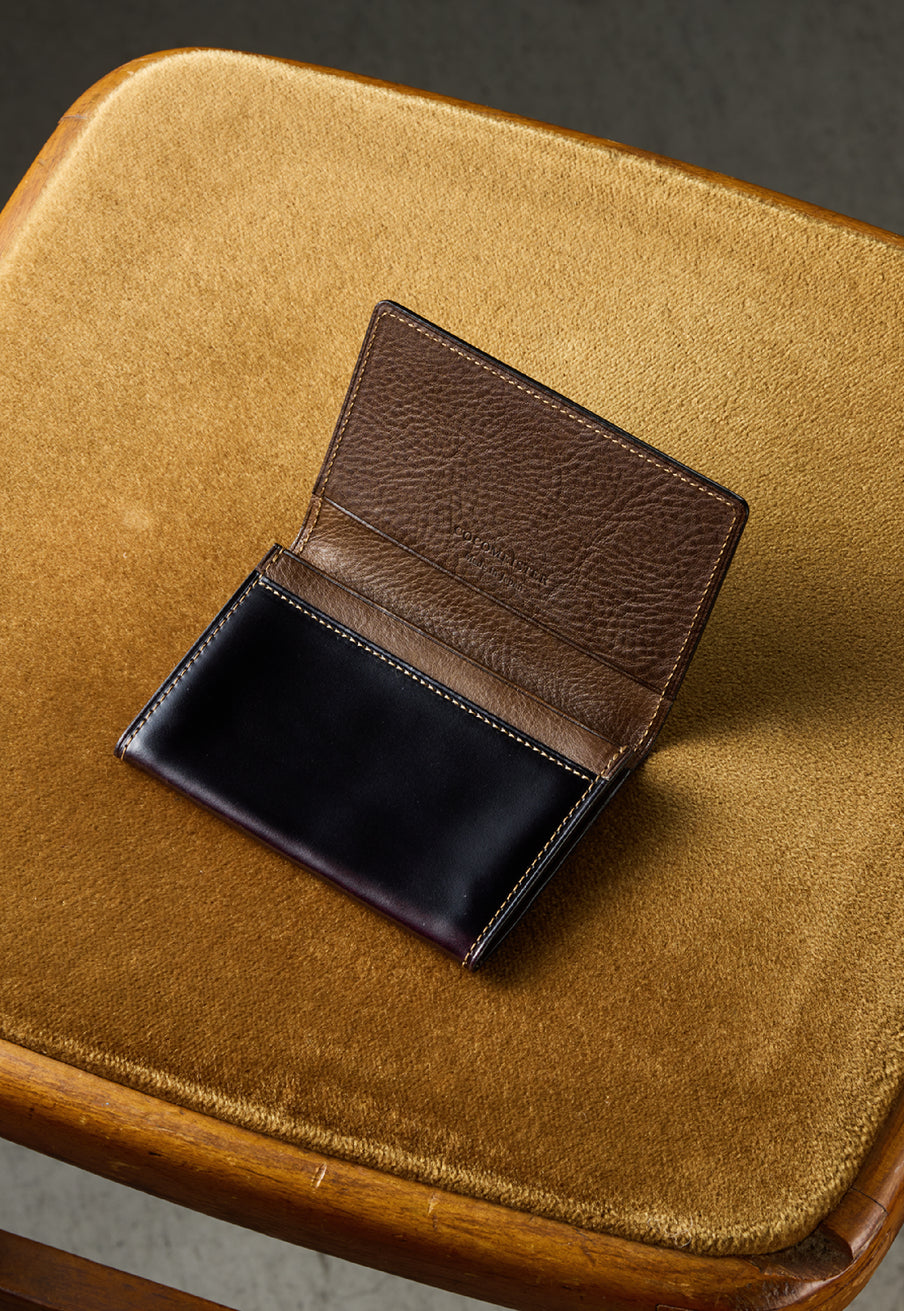 柔らかい革素材で、カードの出し入れがし易いのが魅力です。オールレザーで作られており、コードバンも外装には使用していますが、使い易いのもこの2つ折り財布の特徴です。