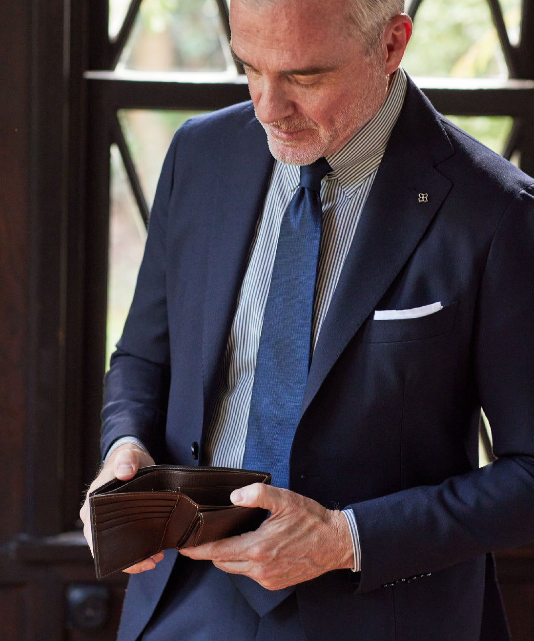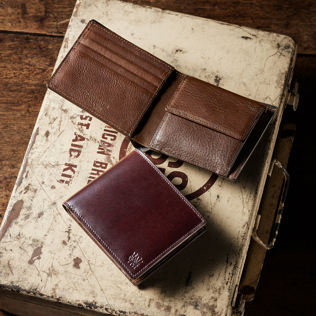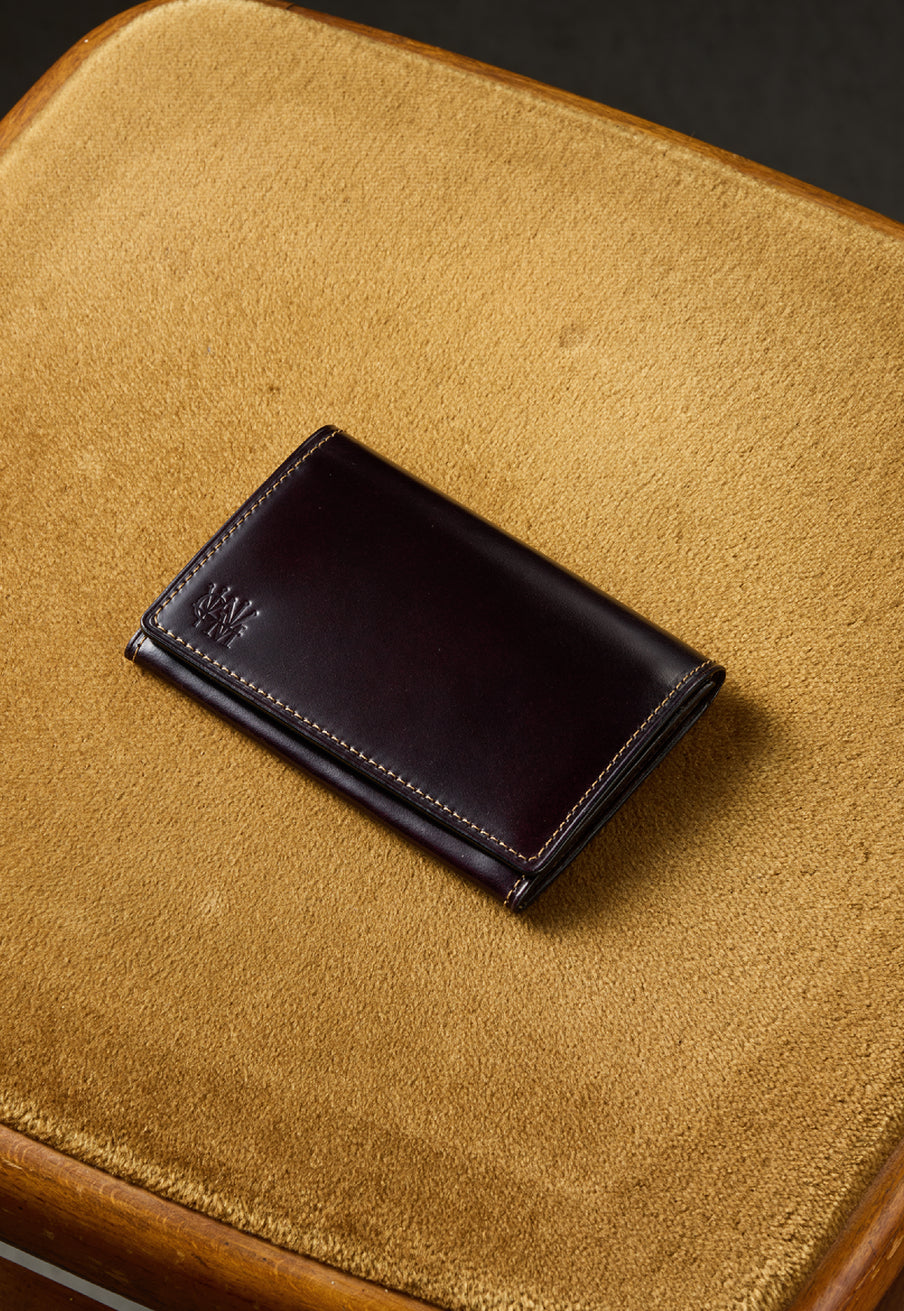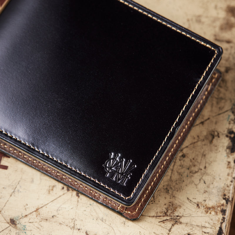 外装に日本製水染めコードバン、内装にミネルバボックスを組み合わせた構造。
