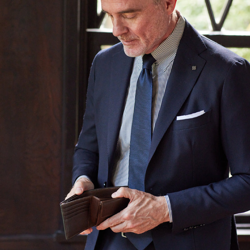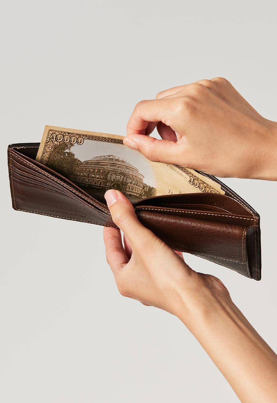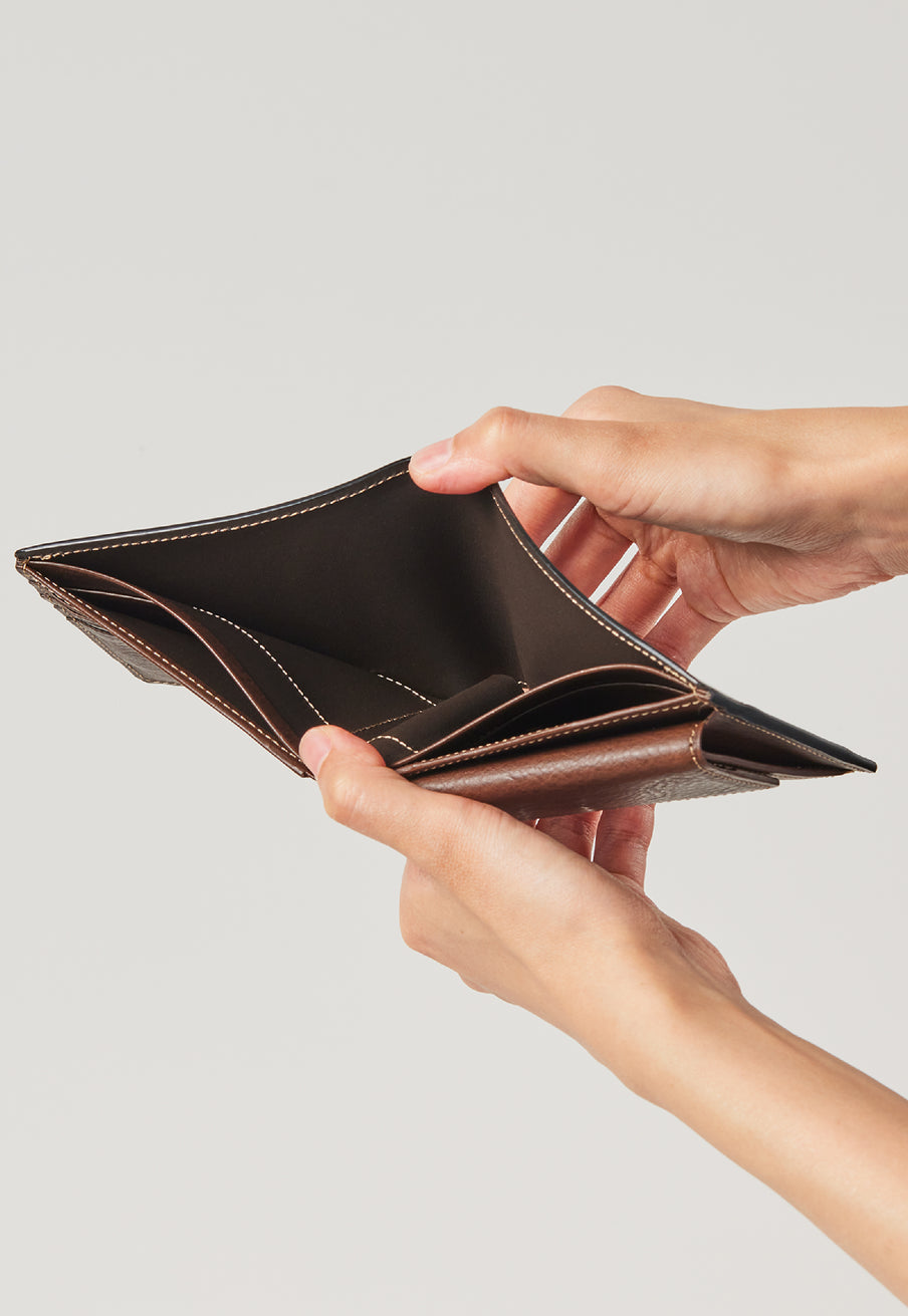 米海兵隊に導入されているデジタル迷彩パターン“MARPATマーパット”からイメージしたマーパットコレクションです。最高級のコードバンとイタリア産の最高級オイルレザーであるミネルバボックスを使用し、日本の伝統的な財布職人が製作する完成度の高さが魅力です。従来から紳士のメイン財布として人気な2つ折り財布は、革の漉きと職人技により、洗練されたフォルムを実現しています。| 外寸 | 縦9.2×横10.9×厚さ×3.1㎝ |