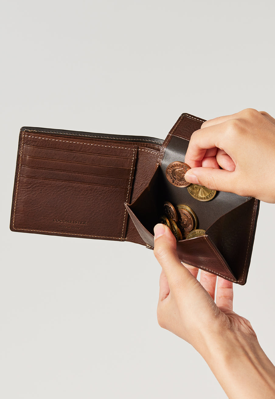 小銭は大きく開き見やすい設計になっています。オールレザーで製作していますので、耐久性もあるのがポイントです。