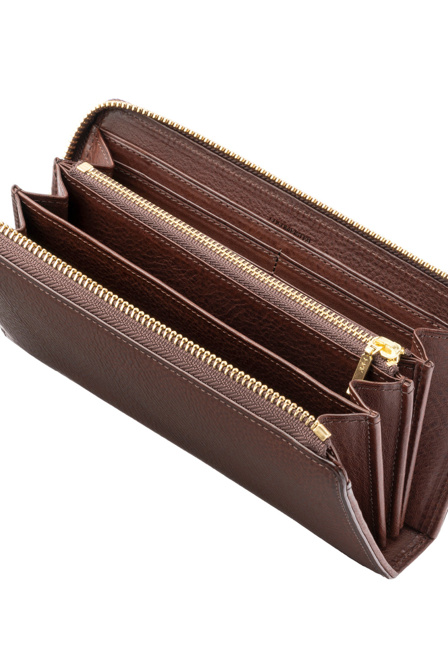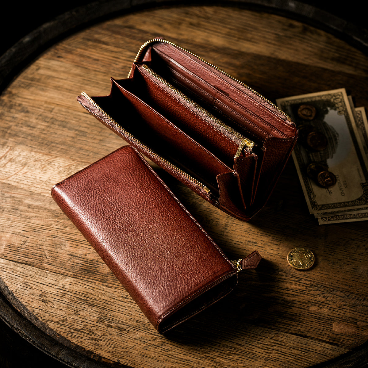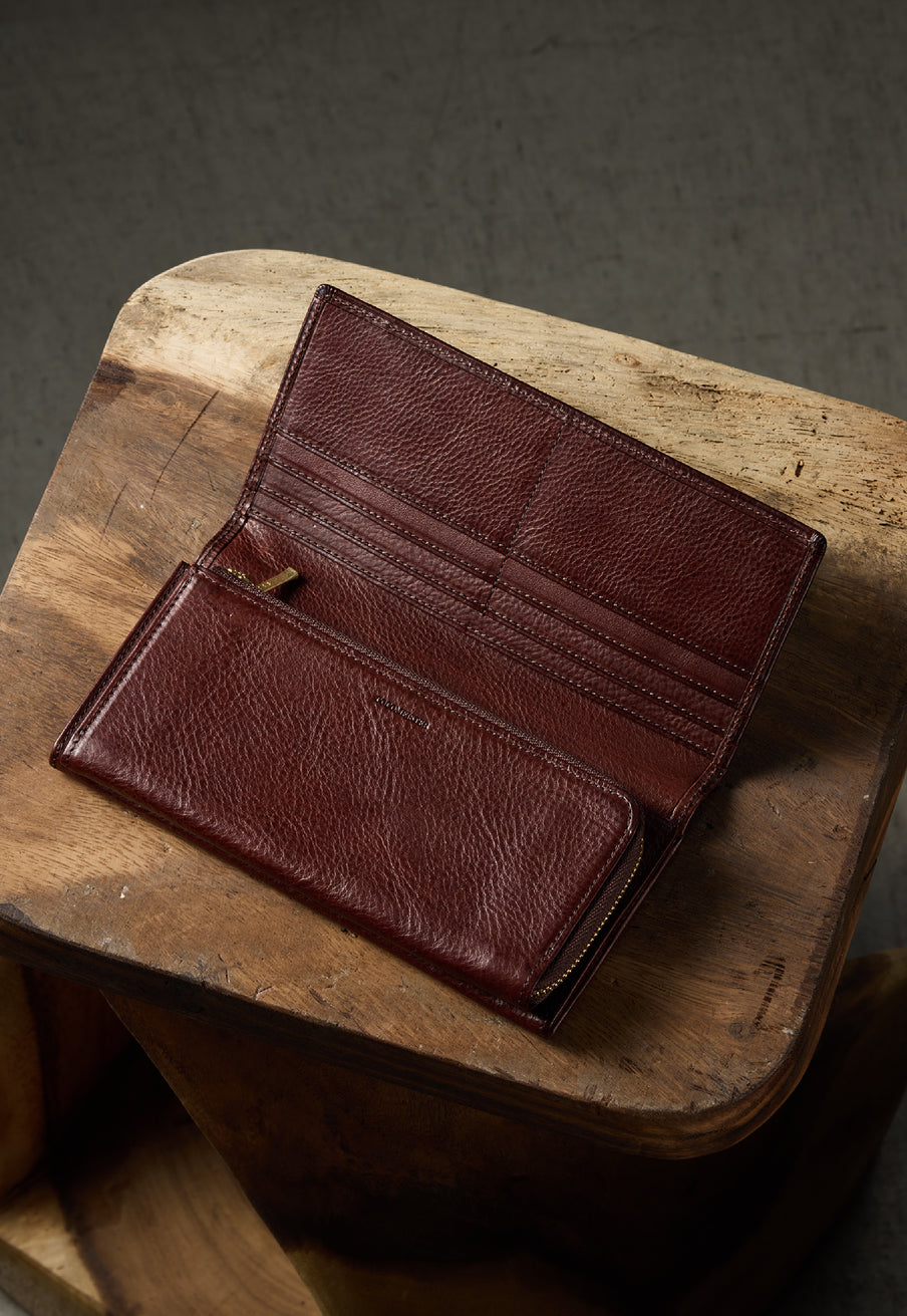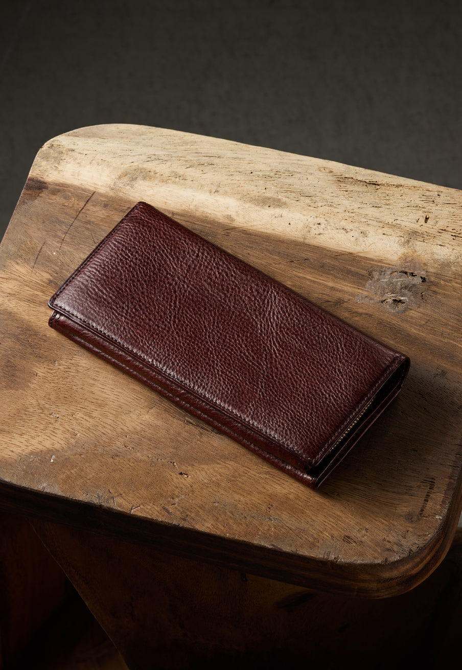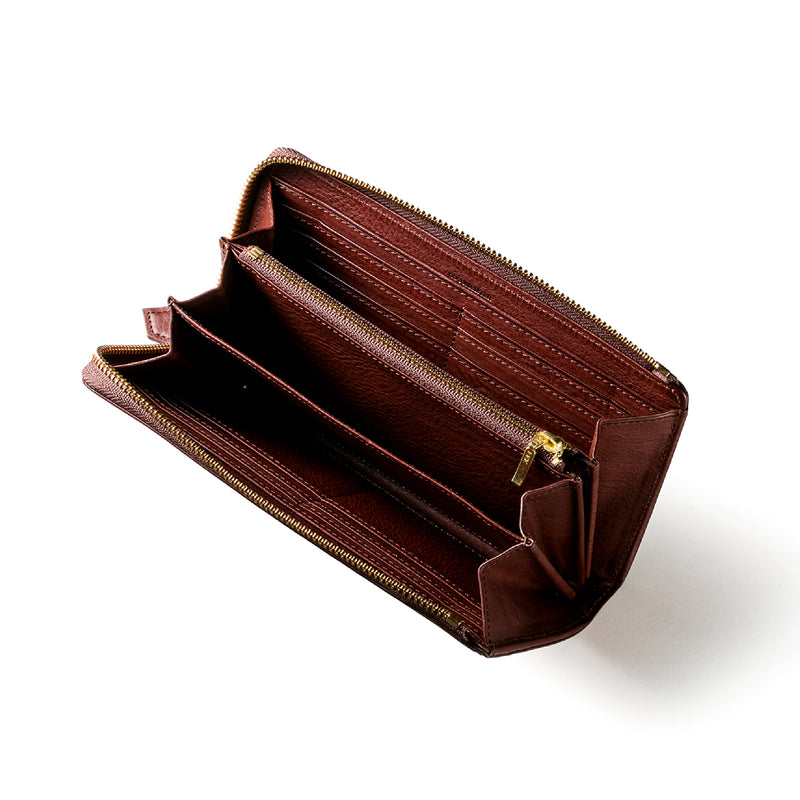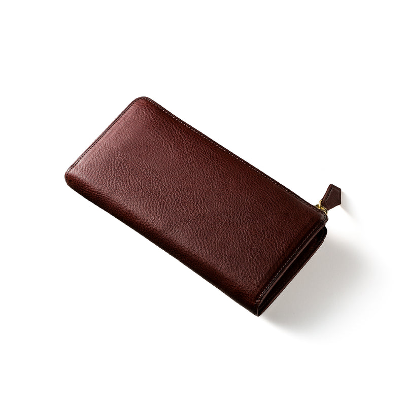 スマートなスタイルで、ラウンドジップの中ではスタイリッシュです。革を薄く漉くなどの職人技を駆使し、スマートだけどしっかりとした長財布です。