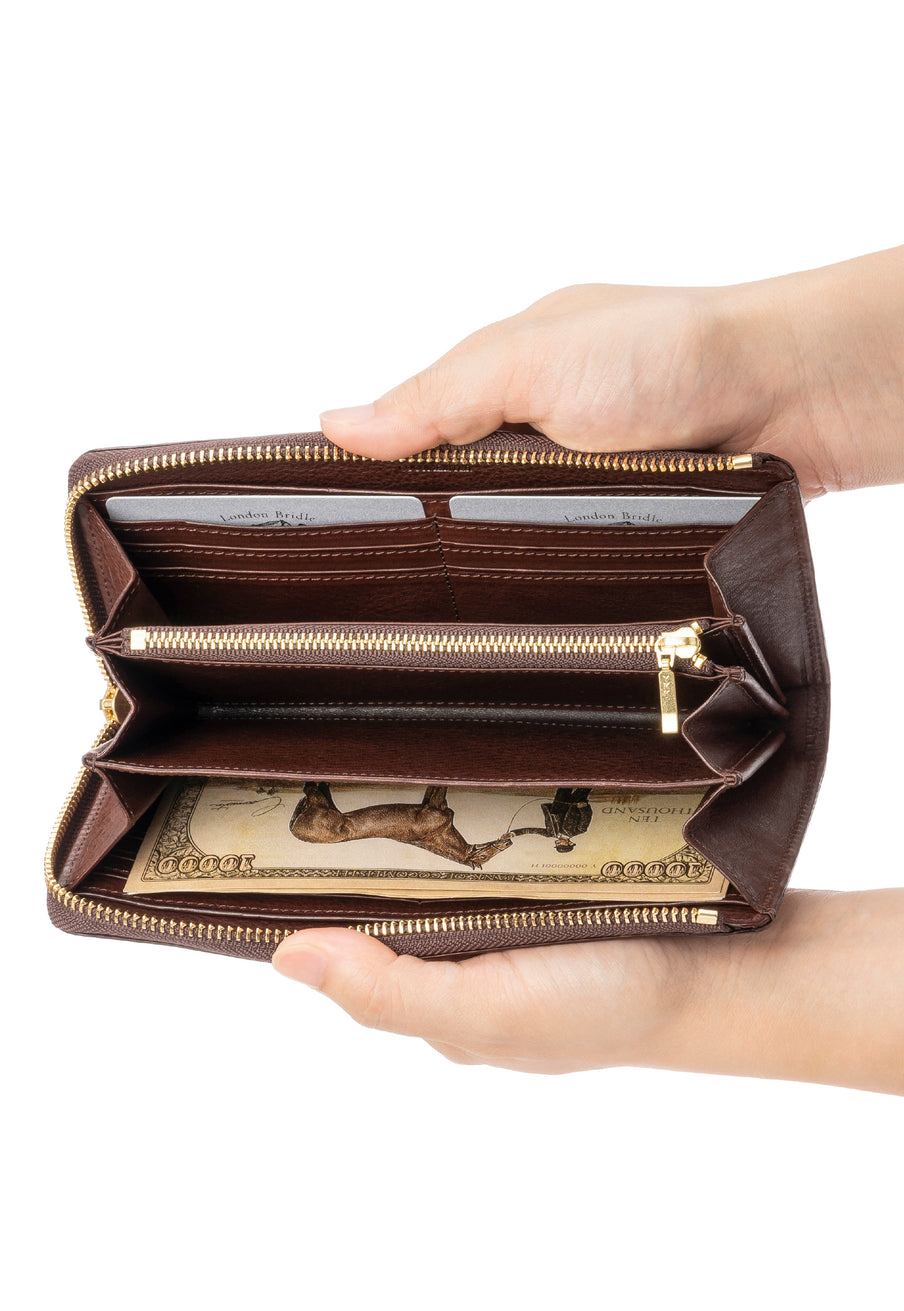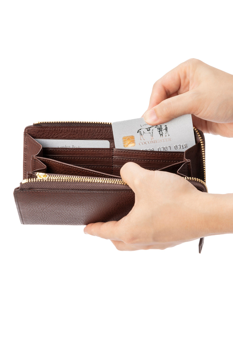 カードを取り出すときに、通常のラウンド長財布よりファスナー部分があまり干渉せず、カードの出し入れがし易い。