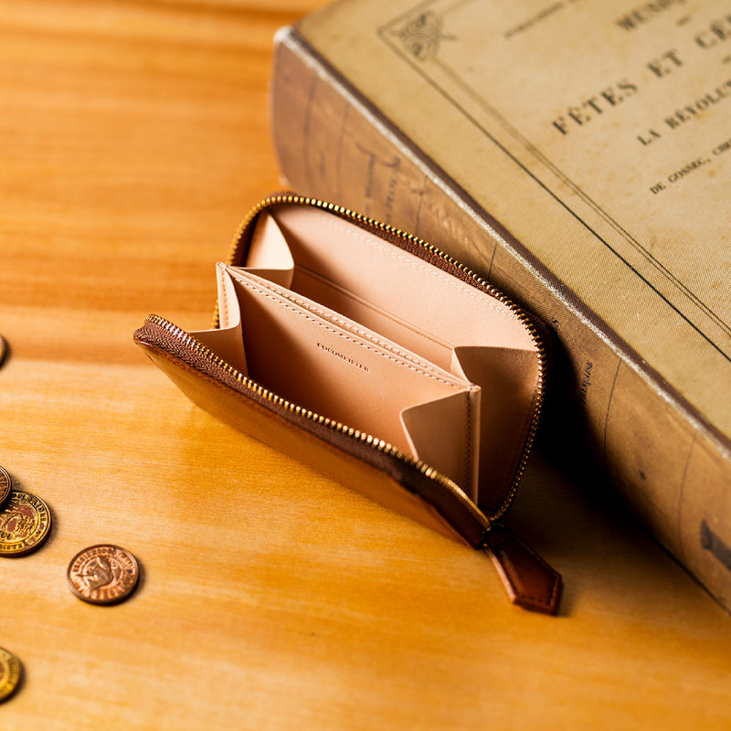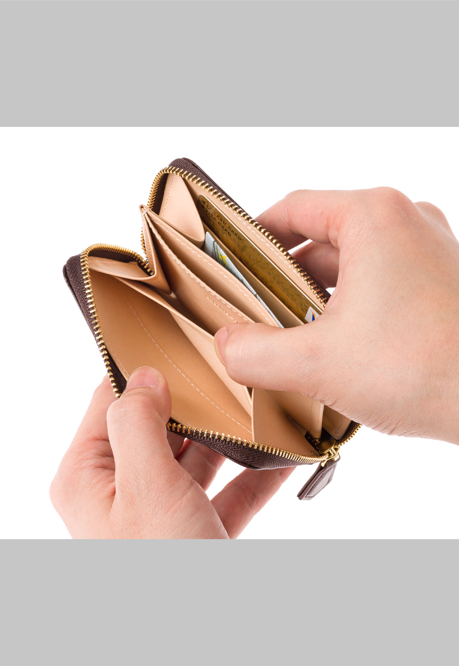 ミニサイズの財布は使う場所を選びません。料金所でも近くのお買い物でも、気軽に革製品を楽しむことができます。