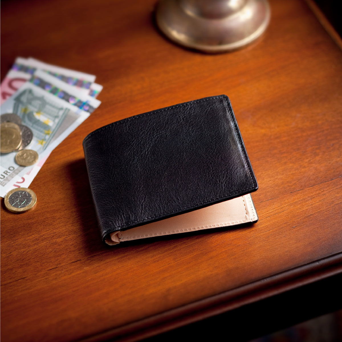 お札入れは2箇所に分かれており、1万円札や千円札で場所を分けたり、領収書専用の場所として区分けしてご利用いただくのも便利です。お札入れの中にカード入れも装備。