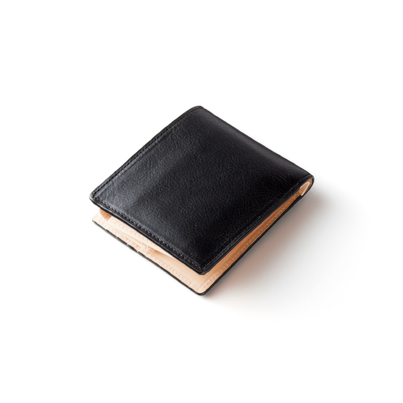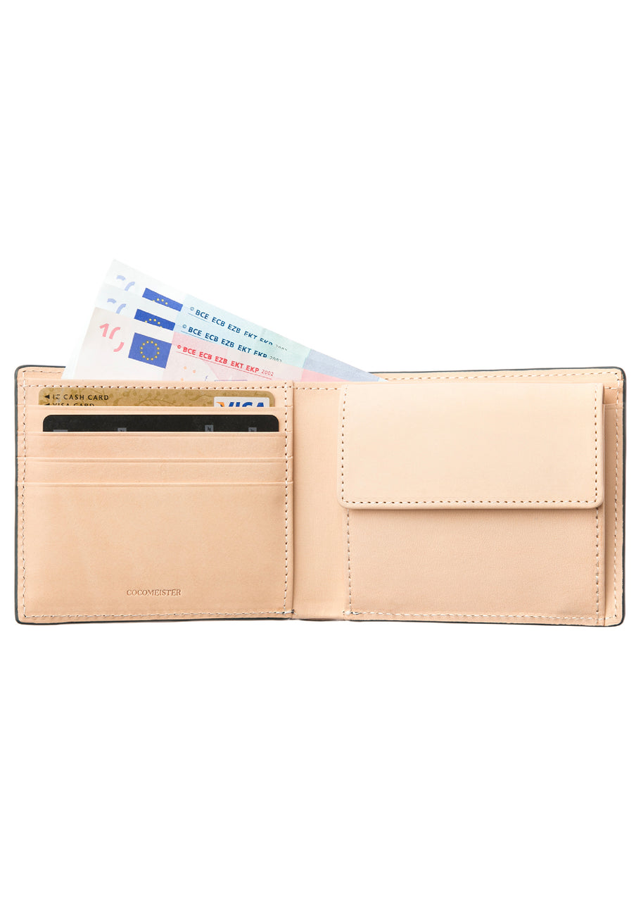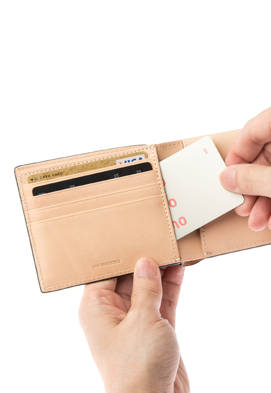 左サイドにはカード類を収納し、右サイドには小銭入れを収納します。内部にはお札を収納できるコンパクトな機能が魅力です。シンプルで使いやすく、アクティブです。