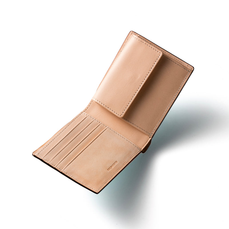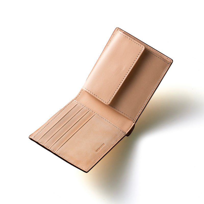 小銭入れはマチ付きになっており、小銭がとても見やすい設計になっています。この部分も全て革で作られていいますので、使うことでどんどん馴染んでいきます。